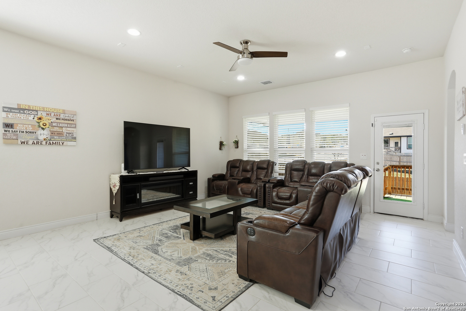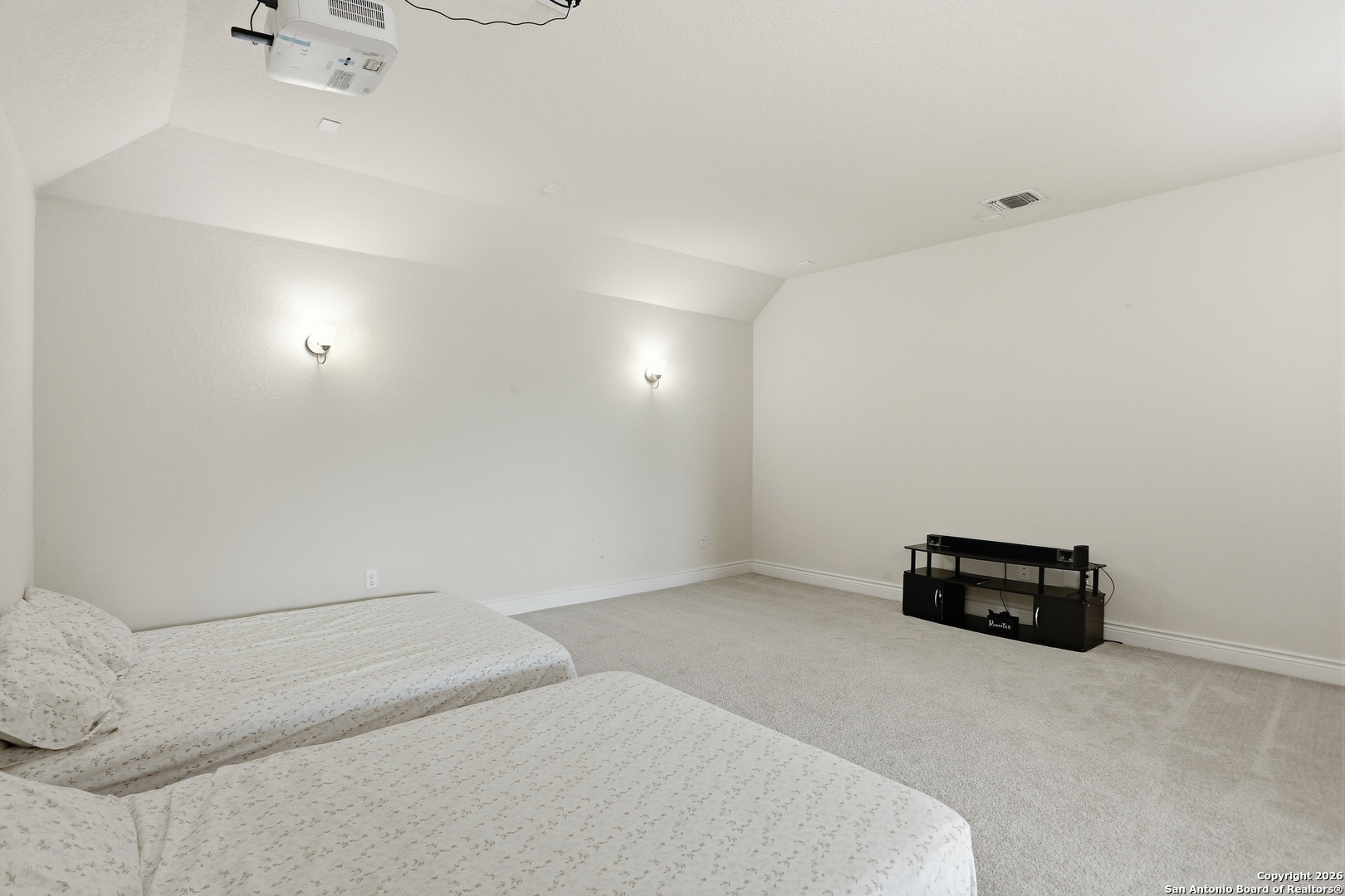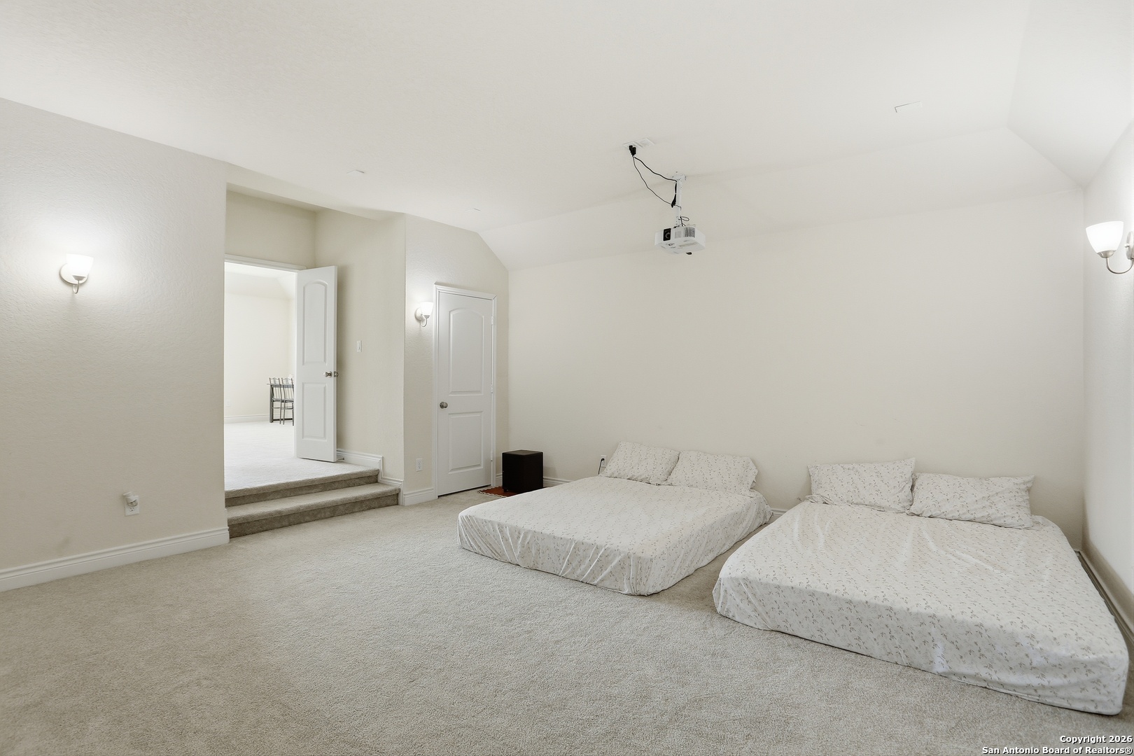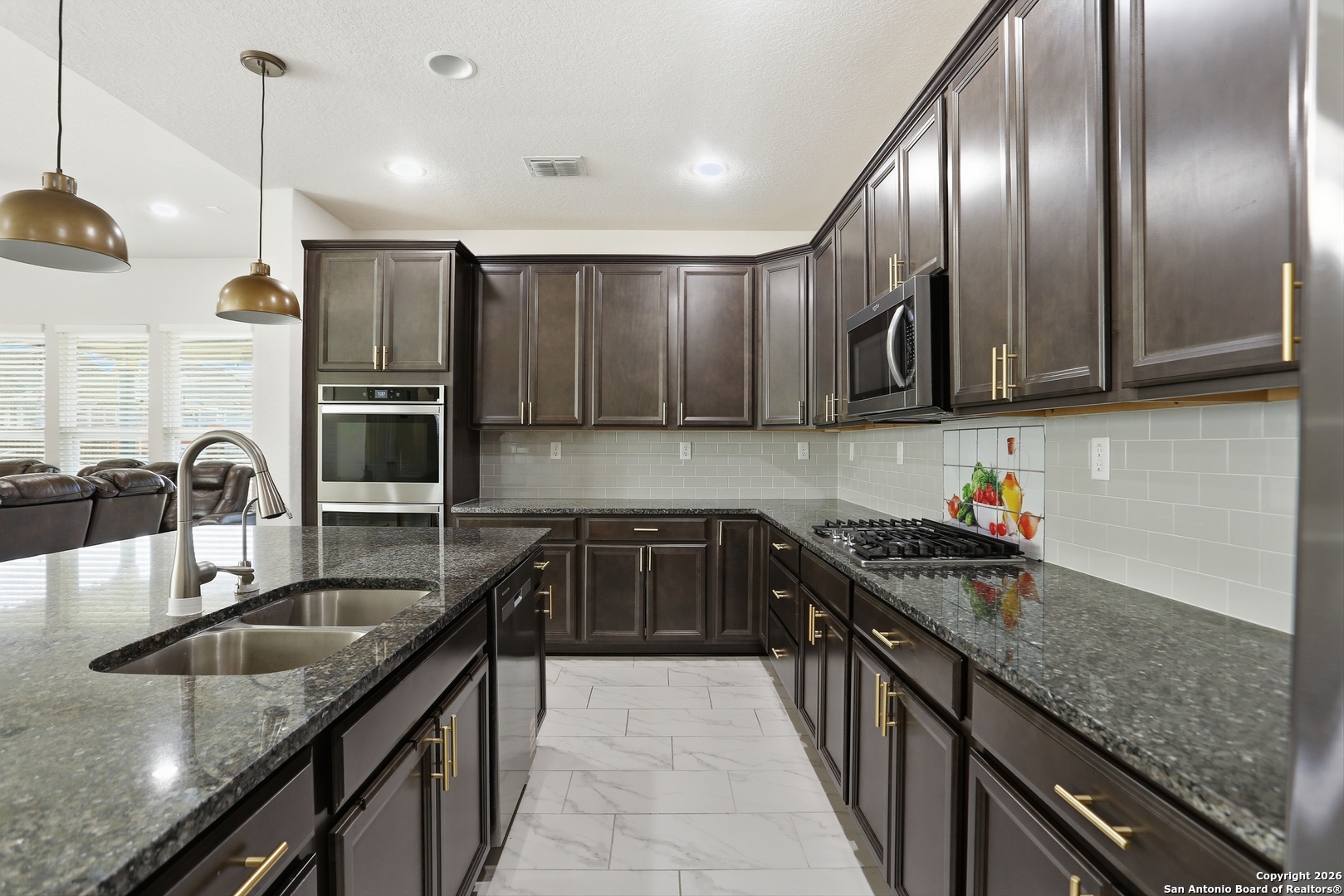 Designed for elevated family living, this stunning home offers 4 bedrooms and 3.5 bathrooms with a highly functional and inviting floor plan. The private primary suite is conveniently located on the main level, providing a peaceful retreat from the rest of the home. Upstairs, families will enjoy a spacious gameroom that connects to an adjoining media room, already prewired for a 7.1 surround sound system-perfect for movie nights and game days. The upgraded kitchen serves as the heart of the home, featuring stainless steel appliances and granite countertops, with granite finishes extended throughout for a polished, cohesive look. Tucked away on a quiet cul-de-sac, the home sits on a large front yard and backs to a scenic greenbelt, offering both space to play and a sense of privacy rarely found.