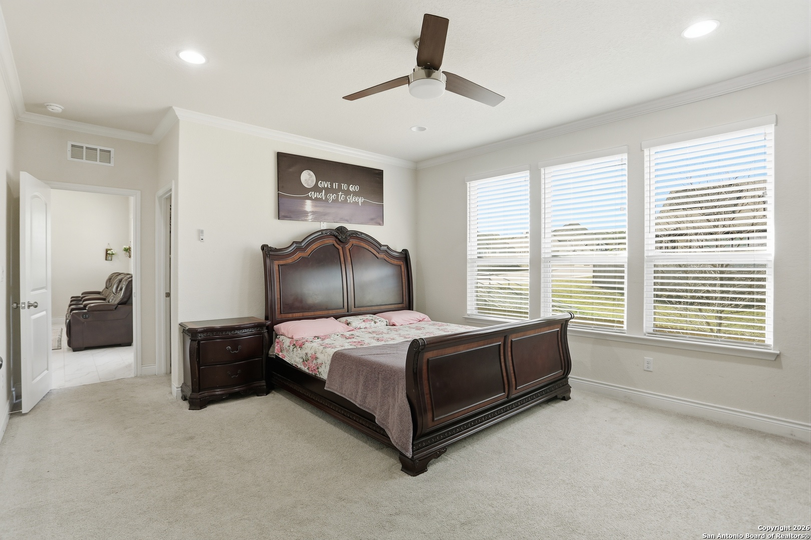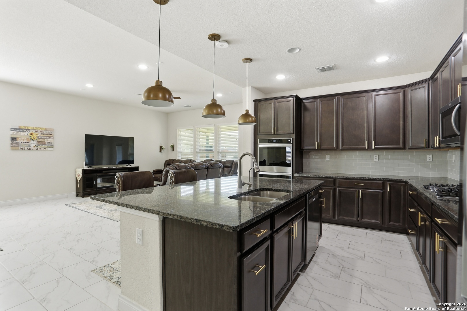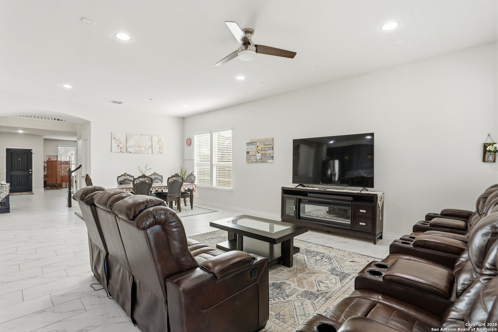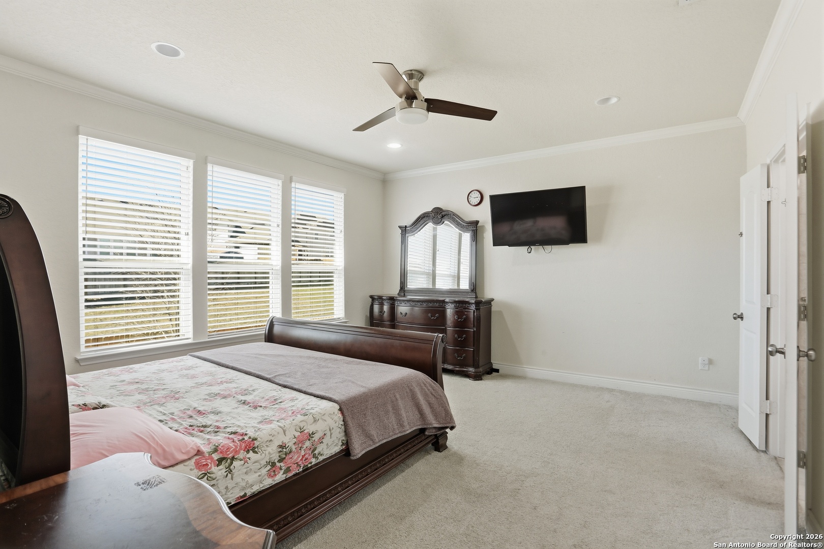 Designed for elevated family living, this stunning home offers 4 bedrooms and 3.5 bathrooms with a highly functional and inviting floor plan. The private primary suite is conveniently located on the main level, providing a peaceful retreat from the rest of the home. Upstairs, families will enjoy a spacious gameroom that connects to an adjoining media room, already prewired for a 7.1 surround sound system-perfect for movie nights and game days. The upgraded kitchen serves as the heart of the home, featuring stainless steel appliances and granite countertops, with granite finishes extended throughout for a polished, cohesive look. Tucked away on a quiet cul-de-sac, the home sits on a large front yard and backs to a scenic greenbelt, offering both space to play and a sense of privacy rarely found.