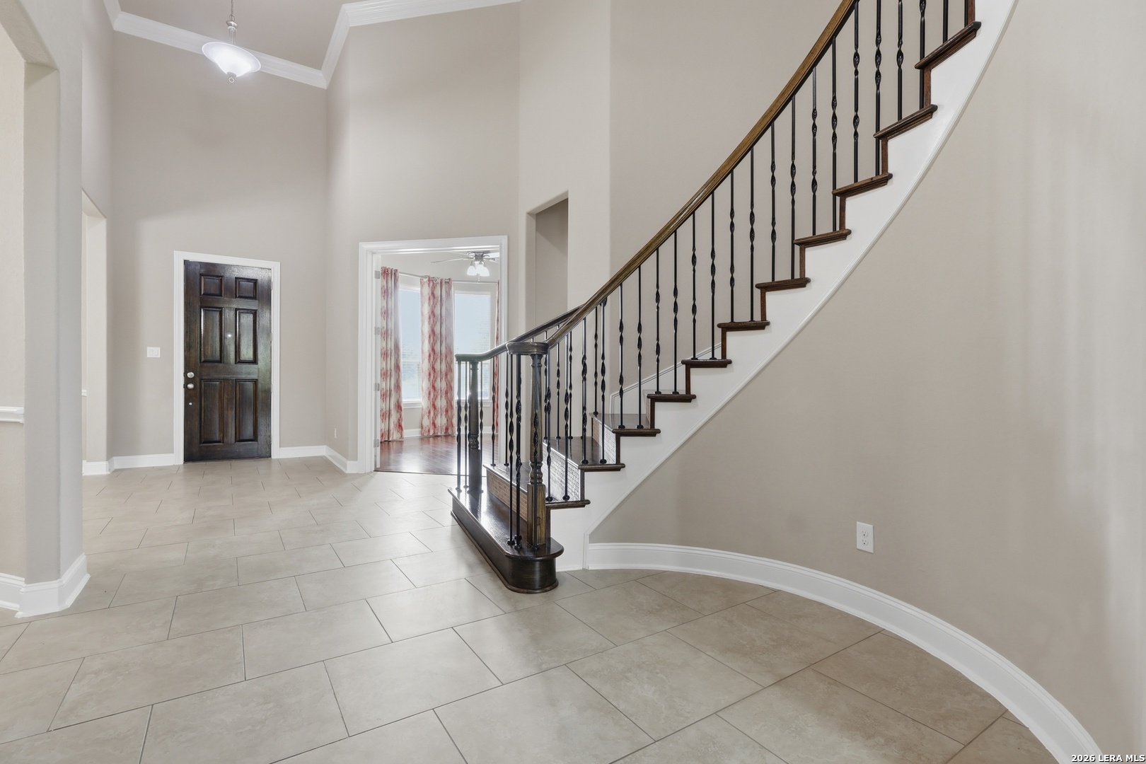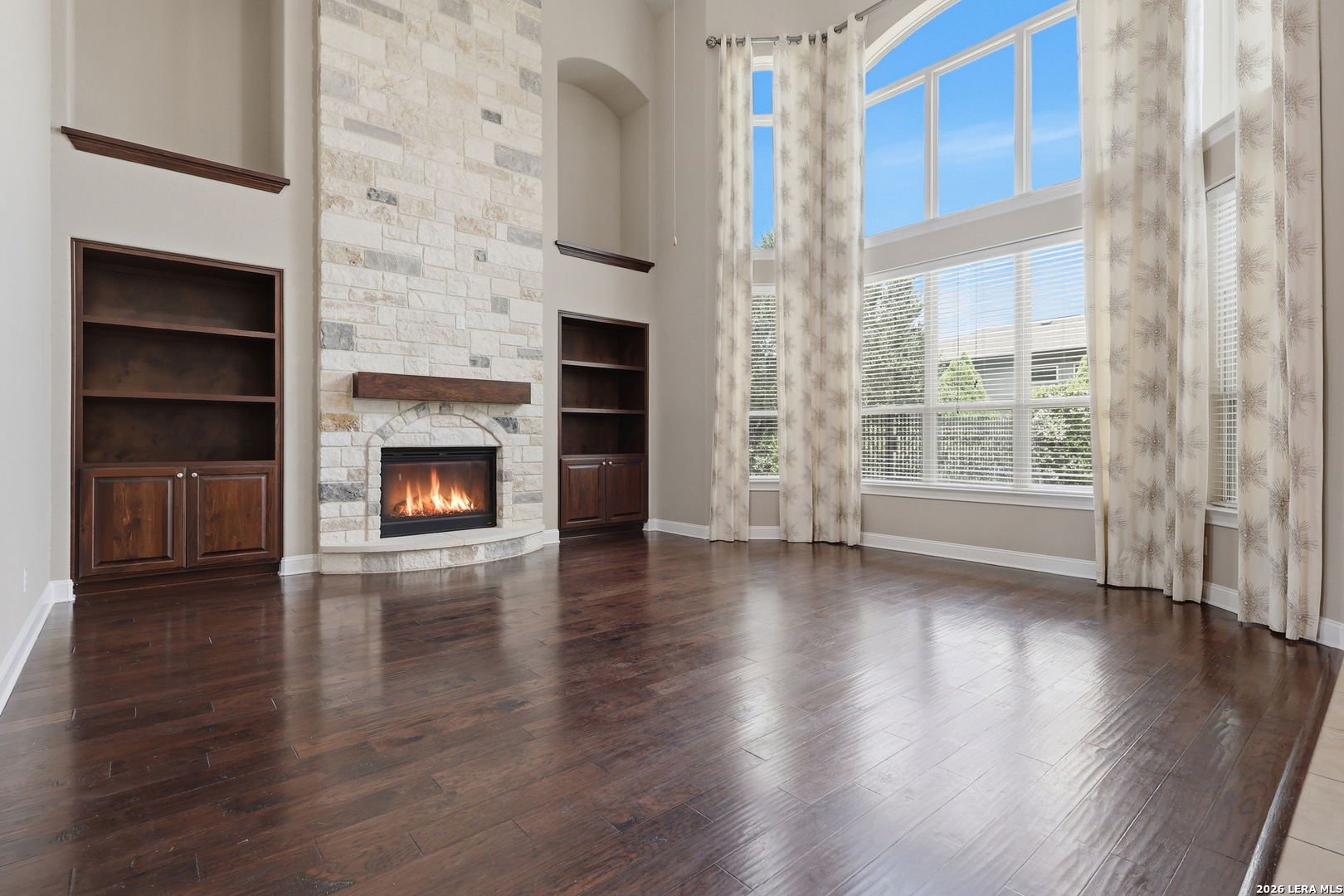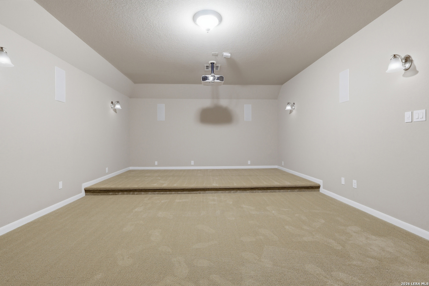 Discover refined living in this stunning contemporary home located in the prestigious, gated Estates of Alon community. This impressive residence offers 5 bedrooms, 4 full baths, and 1 half bath, designed with both comfort and functionality in mind. Step inside to find a spacious and light-filled layout featuring a huge chef's kitchen that flows seamlessly into three separate dining areas, including a formal dining room ideal for hosting. The home also includes a dedicated office and a secondary bedroom conveniently located on the main floor. The expansive owner's suite is a true retreat, complete with generous closet space and a luxurious bathroom featuring dual vanities for added convenience. Throughout the home, you'll find abundant storage solutions thoughtfully into the design. Upstairs, you'll find flexible living space with three additional rooms that can serve as bedrooms or be customized-perfect for a home gym or hobby space. Enjoy movie nights in your own private theater room, creating an elevated entertainment experience. Step outside to your personal backyard oasis featuring a spectacular pool with a waterfall, alongside a covered patio perfect for entertaining. Additional highlights include a 3-car garage and a prime location just minutes from premier shopping and dining destinations like North Star Mall and La Cantera, with easy access to major highways 1604, 410, 281 and I-10. Please validate house measurements, school district and HOA fees and policies