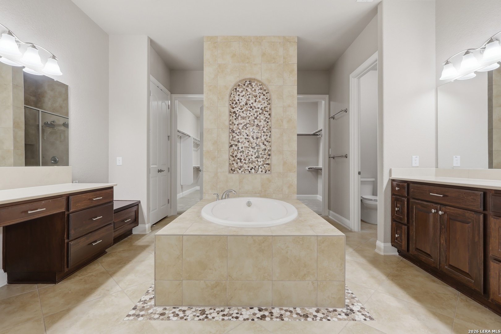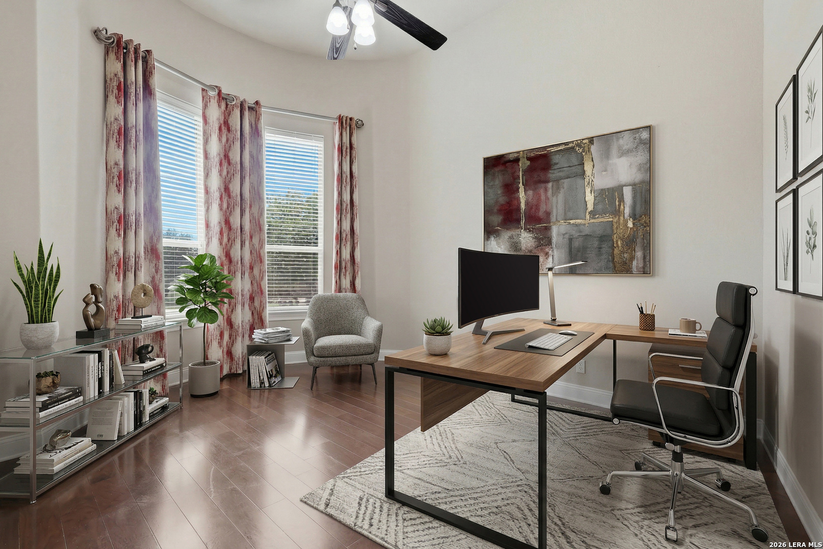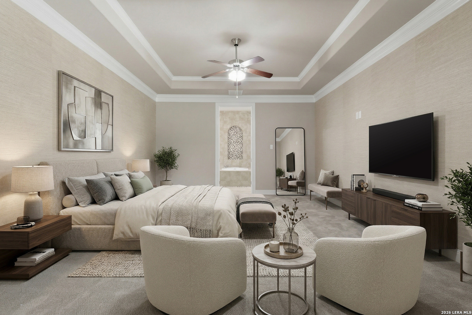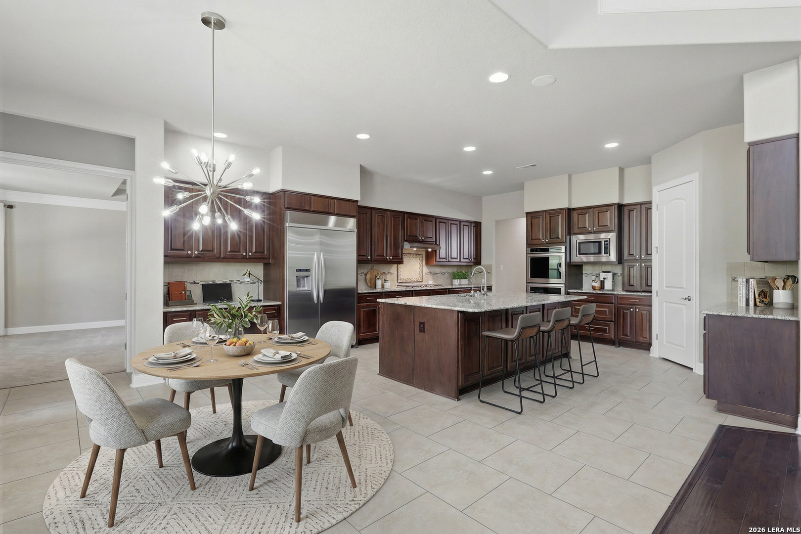 Discover refined living in this stunning contemporary home located in the prestigious, gated Estates of Alon community. This impressive residence offers 5 bedrooms, 4 full baths, and 1 half bath, designed with both comfort and functionality in mind. Step inside to find a spacious and light-filled layout featuring a huge chef's kitchen that flows seamlessly into three separate dining areas, including a formal dining room ideal for hosting. The home also includes a dedicated office and a secondary bedroom conveniently located on the main floor. The expansive owner's suite is a true retreat, complete with generous closet space and a luxurious bathroom featuring dual vanities for added convenience. Throughout the home, you'll find abundant storage solutions thoughtfully into the design. Upstairs, you'll find flexible living space with three additional rooms that can serve as bedrooms or be customized-perfect for a home gym or hobby space. Enjoy movie nights in your own private theater room, creating an elevated entertainment experience. Step outside to your personal backyard oasis featuring a spectacular pool with a waterfall, alongside a covered patio perfect for entertaining. Additional highlights include a 3-car garage and a prime location just minutes from premier shopping and dining destinations like North Star Mall and La Cantera, with easy access to major highways 1604, 410, 281 and I-10. Please validate house measurements, school district and HOA fees and policies