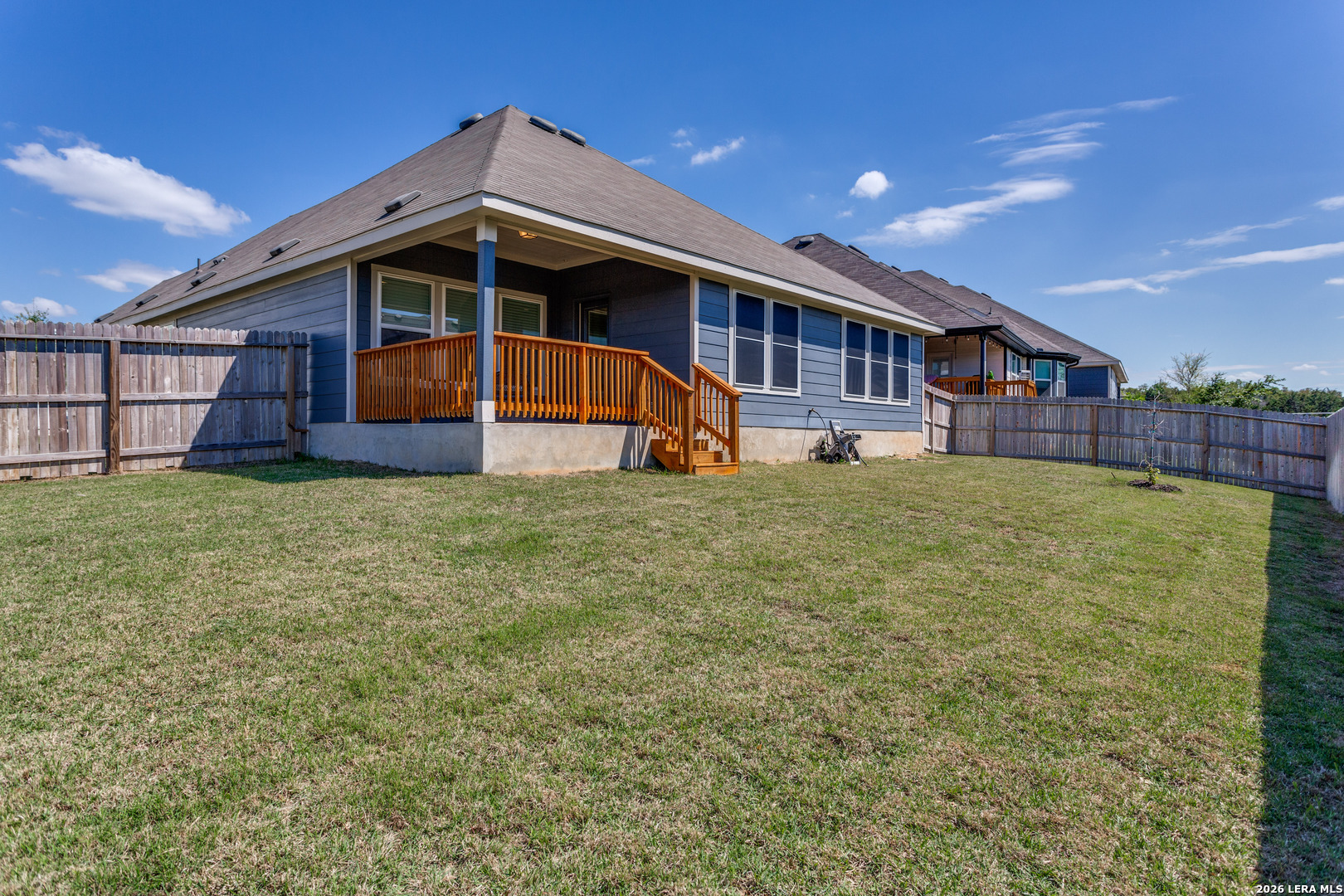 WOW! Like-new one-story home in Far North Bexar County with NO city taxes-the perfect blend of comfort, style, and savings! This beautifully updated 3 Year old Pulte 3-bedroom, 2-bath home offers modern finishes and an open, inviting layout. Enjoy granite countertops in the kitchen and both bathrooms, wood-look ceramic tile throughout the main living areas, and solar screens to help keep energy costs down during those hot Texas summers. The spacious backyard is a true standout. Located in a desirable controlled-access community featuring a pool and playground, and zoned to highly sought-after Comal County schools. This home checks all the boxes-modern, efficient, private, and in a fantastic location!