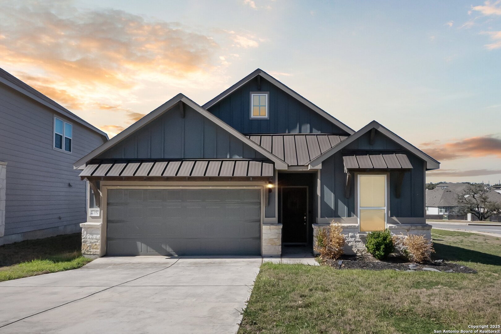 Welcome to 27357 Caroline Way, a beautiful 4-bedroom, 2-bath home nestled in the desirable Sterling Ridge neighborhood. This amazing 1-story home combines stone, rock, and cement fiber board for an eye-catching exterior, complemented by a spacious 2-car garage. Situated on a generous corner lot, this home offers a perfect blend of modern style and functional design. As you enter, you are greeted by a versatile secondary bedroom, complete with double French glass doors and a closet. This space can easily serve as a home office, offering both privacy and convenience. The heart of the home features a sleek, modern gourmet kitchen equipped with stainless steel appliances, an oversized island, granite countertops, a walk-in storage pantry, and an abundance of cabinetry, making it an ideal space for both cooking and entertaining. The kitchen flows seamlessly into the dining area, which opens into the inviting living room. A wall of windows fills the living space with natural light, creating a bright and airy atmosphere. The open floor plan is perfect for hosting gatherings or enjoying quiet moments with family. The spacious primary bedroom is a true retreat, featuring a bay window that adds charm and extra space. The luxurious en-suite bathroom boasts a dual sink granite vanity, a garden tub, a walk-in tiled shower with a glass door, and a large walk-in closet for ample storage. The remaining secondary bedrooms are generously sized and offer flexibility to meet your needs. Wood-look tile flooring flows through the entryway, kitchen, dining area, living room, and the secondary bedroom/home office, while the bathrooms feature ceramic tile, and carpet in the two additional secondary bedrooms adds warmth and comfort. Step outside to the covered back patio that overlooks the backyard, offering plenty of space for outdoor relaxation and activities. The Sterling Ridge neighborhood offers a welcoming atmosphere with amenities that include a pool, clubhouse, park/playground, and controlled access. This is an amazing home within the Comal Independent School District (CISD) that is situated just off Borgfeld Road between Blanco Road and Hwy 281. It is conveniently located closely to Loop 1604, Hwy 281, and SH 46. You will enjoy its proximity to Camp Bullis, Canyon Springs Golf Club, and a multitude of shopping, entertainment, education, and dining locations. 27357 Caroline Way offers the perfect combination of comfort, style, and modern conveniences in a wonderful and sought after location and it will not last long. Don't miss the opportunity to call this beautiful house your home!
