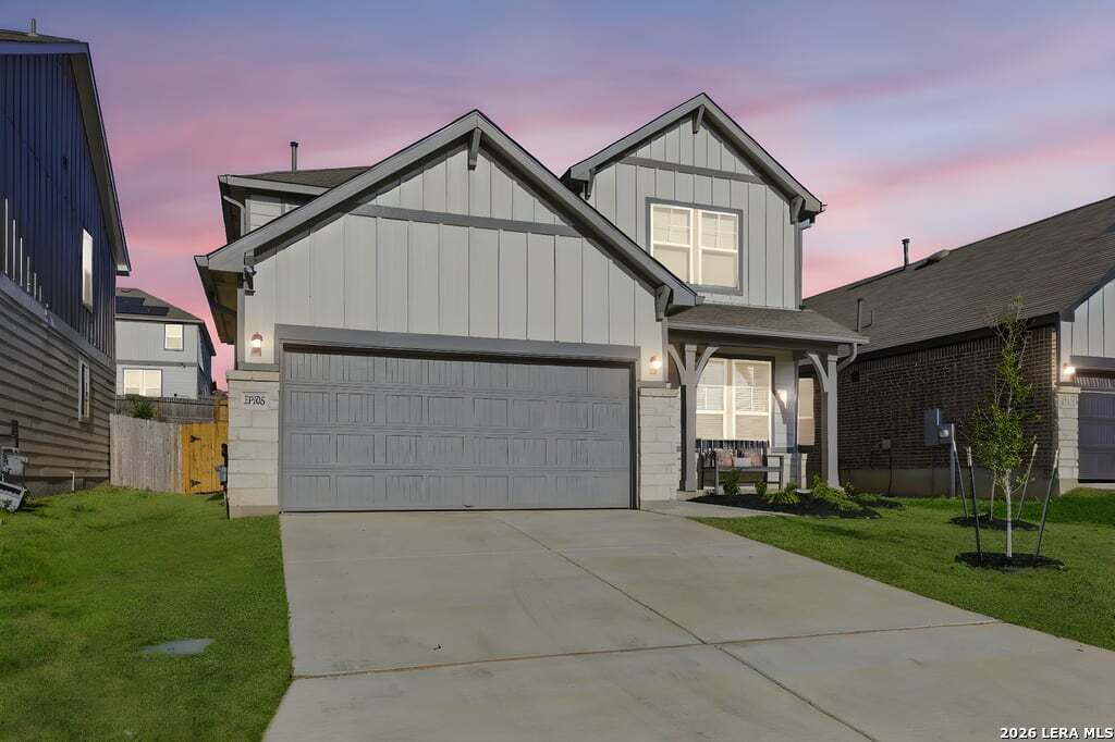 Welcome to 27506 Sienna Crk in Boerne! This immaculate, 2022 built home features 4 bedrooms, 3 full bathrooms, 2,601 SF, a main floor guest bedroom, a main floor private office, an upstairs game/bonus room, along with a spacious dining room, large family room and nicely designed kitchen that offers an island, plenty of cabinets and granite counters. The breakfast space off the kitchen is perfectly situated between the kitchen and family room and all three spaces seamlessly blend with each other. The primary bedroom suite, very generous in size, is located upstairs and offers a double vanity with quartz counter tops, a soaking tub and a tile/glass walk-in shower, along with a spacious walk-in closet. The two remaining guest bedrooms upstairs share a nice gust bathroom, also equipped with a quartz double vanity and shower/tub combo. The backyard offers plenty of space for gardening or a future sports court, and is fully fenced. This home also offers nice curb appeal with it's architecture, materials and clean front yard. Attractive tile flooring is predominant on the main floor, while carpet flooring is present upstairs. The community park and pool is merely a couple of minutes away and is a great place to meet new friends! Located in Boerne ISD, close to schools, shopping and I-10, this home not only shows extremely well (it's immaculate), and is priced right! Put 27506 Sienna Crk on your short list!
