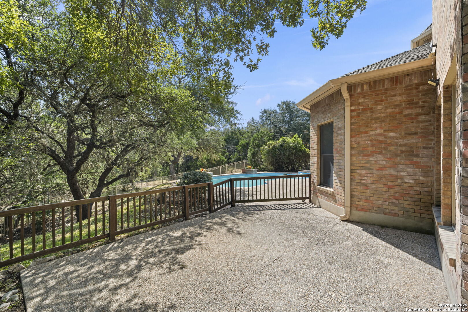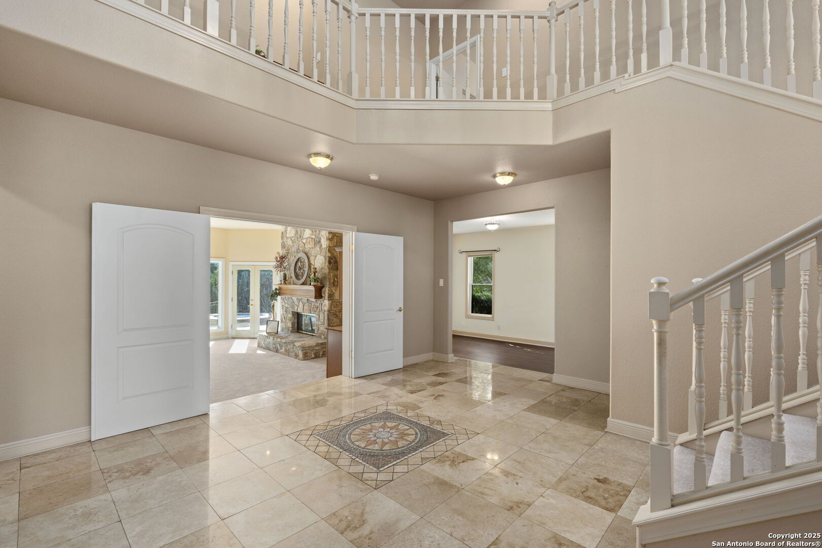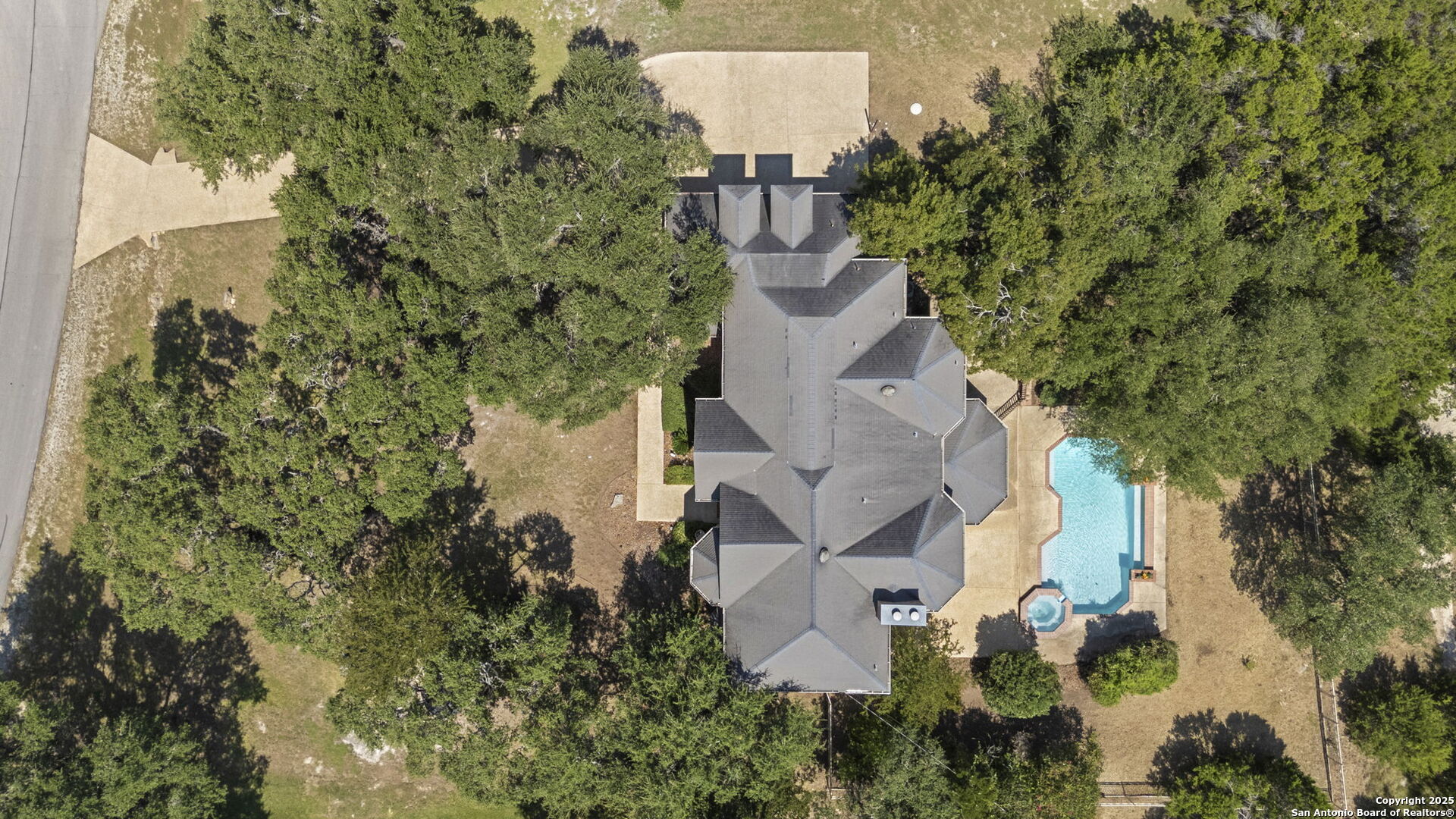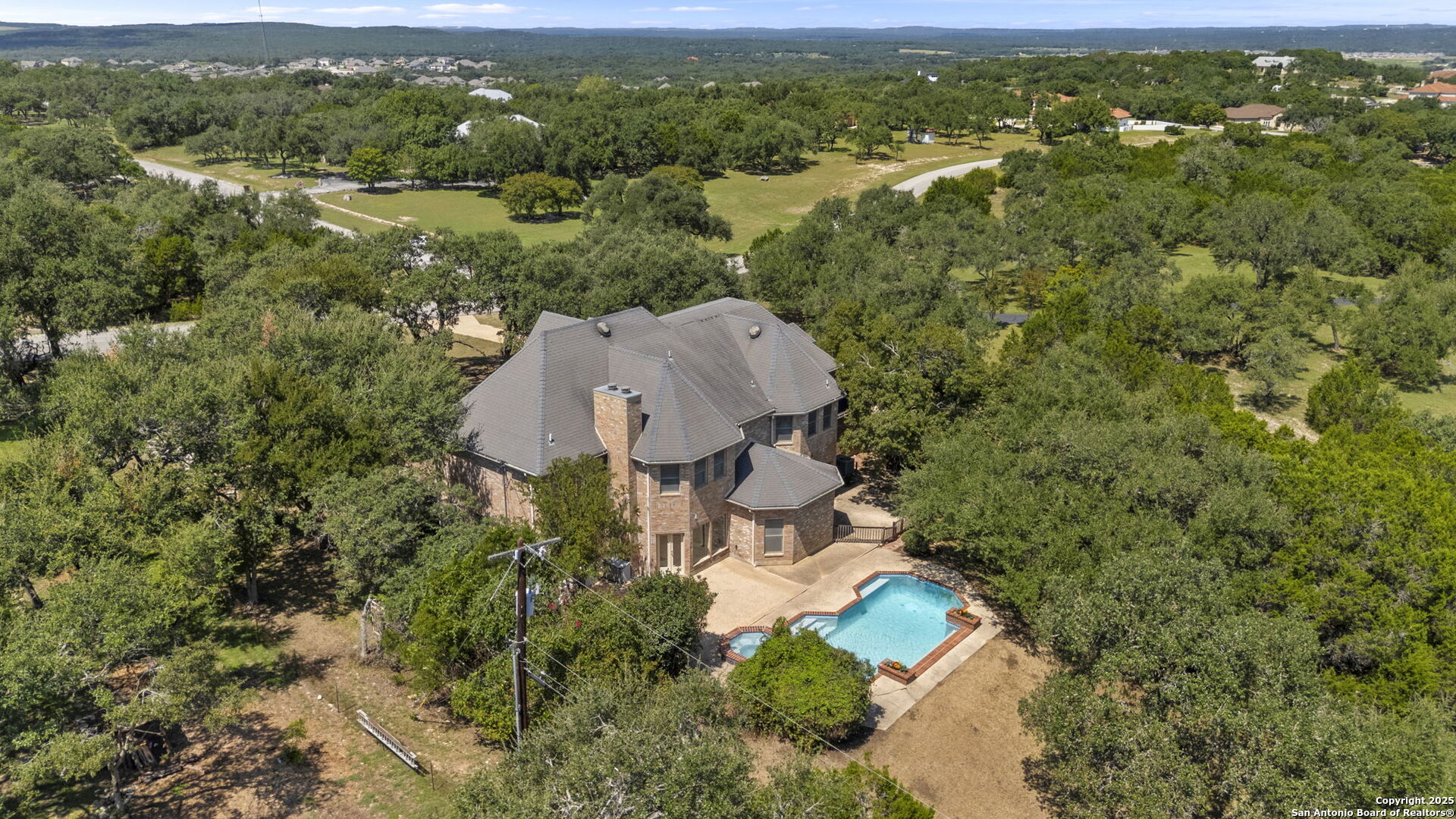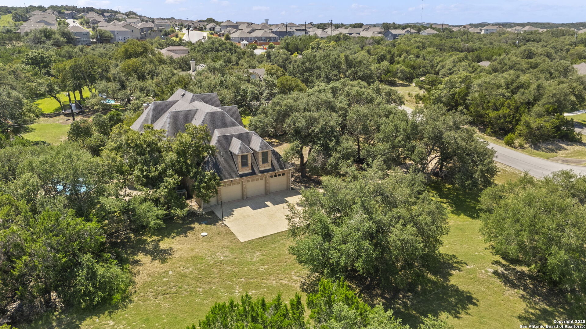 Here's your chance to own a spacious 4600sqft home with 4 bedrooms, 4.5 bathrooms, an in ground pool and spa that sits on 2.34 acres inside a gated community. Priced well below appraised value! Home is set back from the street with a long driveway and welcoming walkway that guides you the front entrance. The double-door entry sets the tone opening to a spacious foyer with soaring ceilings and view of the pool and backyard. Dining room with a picturesque view of the front yard trees. Flex room can be used as an office or second living space or can easily be converted into a 5th room. Bright and inviting, the living room offers natural light, a cozy brick fire place, and a wet bar. Designed for both function and fun, the large kitchen with double ovens provides extensive cabinets and granite counters to accomadate all your entertaining needs. Breakfast Area off the kitchen is perfect for everyday dining or plenty of space to add additional seating. Walk in Pantry offers plenty of storage and shelves. An additional large flex room with double doors to the side of the kitchen looks into the pool and back yard. Upstairs, the staircase opens to the hallway leading you to all the bedrooms. Primary Suite has it's own private entry nook, ideal for art or statement mirror, and a spacious bedroom with vaulted ceilings, windows, and a private brick fire place. Adjoining primary bathroom is practical and roomy, with 2 seperate vanities a bathtub with wrap around windows, an oversized walk in shower and walk in closet. Secondary large bedrooms are split from the primary and each have their own full bathrooms. Laundry room has great storage space with cabinets, counterspace and a sink. An additional staircase leads you back downstairs near the kitchen.Home offers an Oversized 3 car side entry garage. Step outside into your backyard and enjoy the perfect blend of leisure and nature with views overlooking the pool and mature trees. Afternoon shade and plenty of room for patio furniture. Home sits on a little over 2 acres and full of natural landscape with mature trees, some cactus and plenty of wildlife in the community. Home is priced to sell and offers huge potential with a little TLC and updating. Great location, Comal ISD schools AND you don't have a water bill!