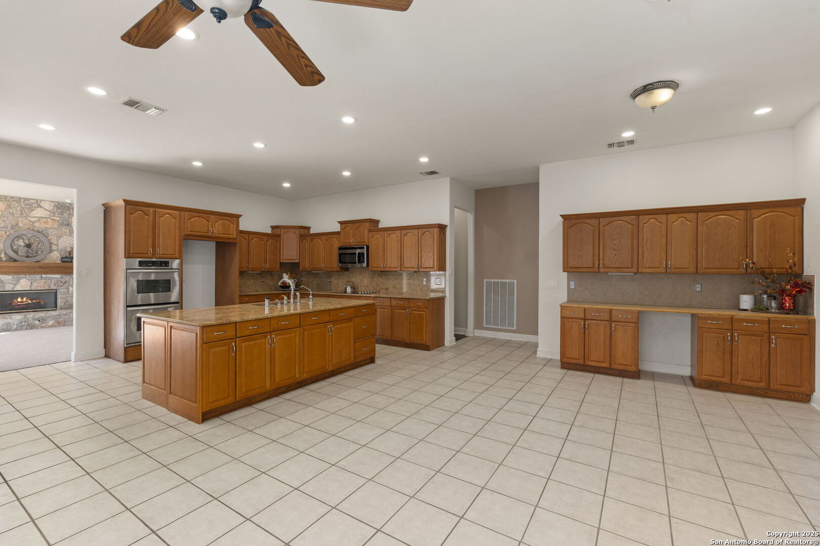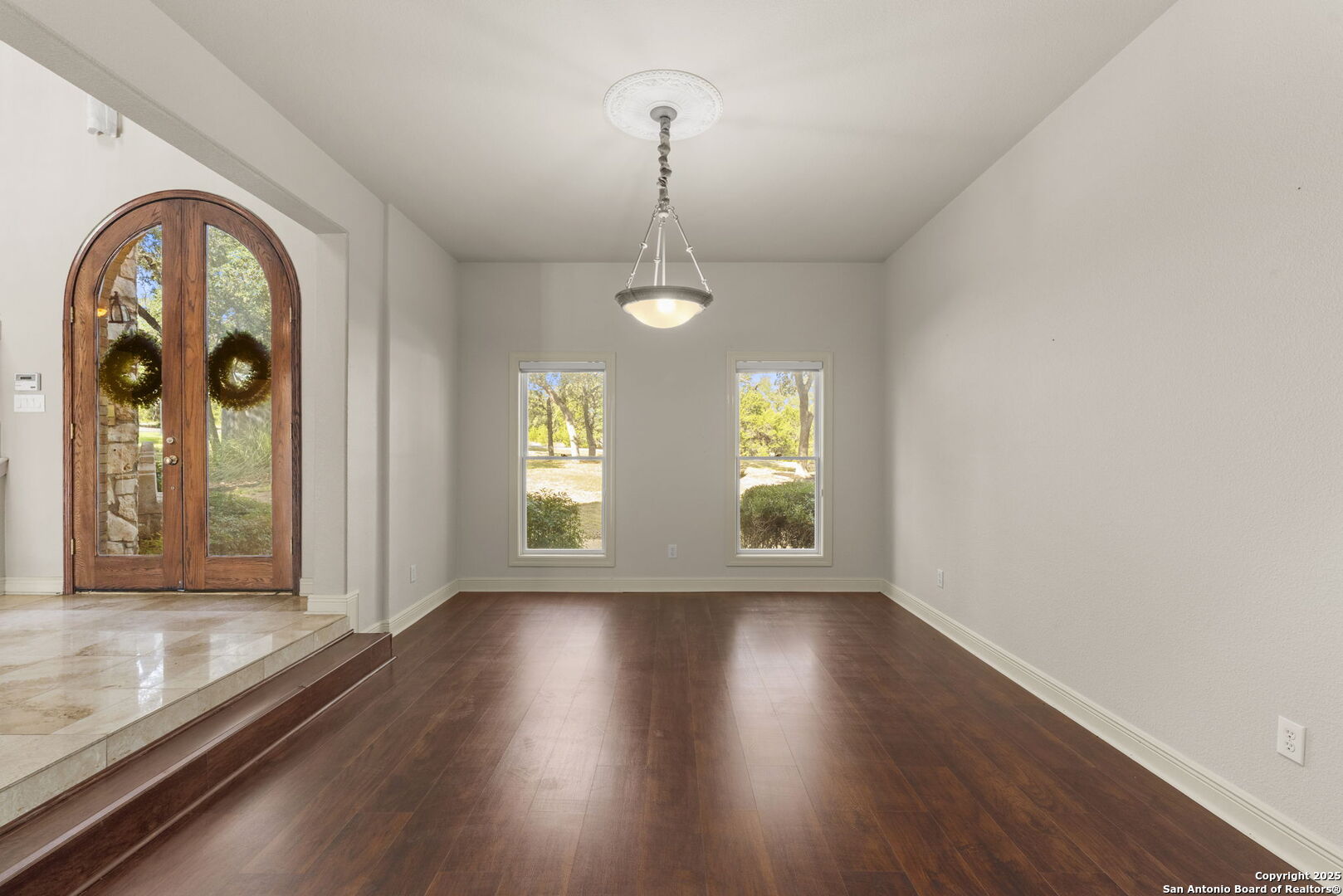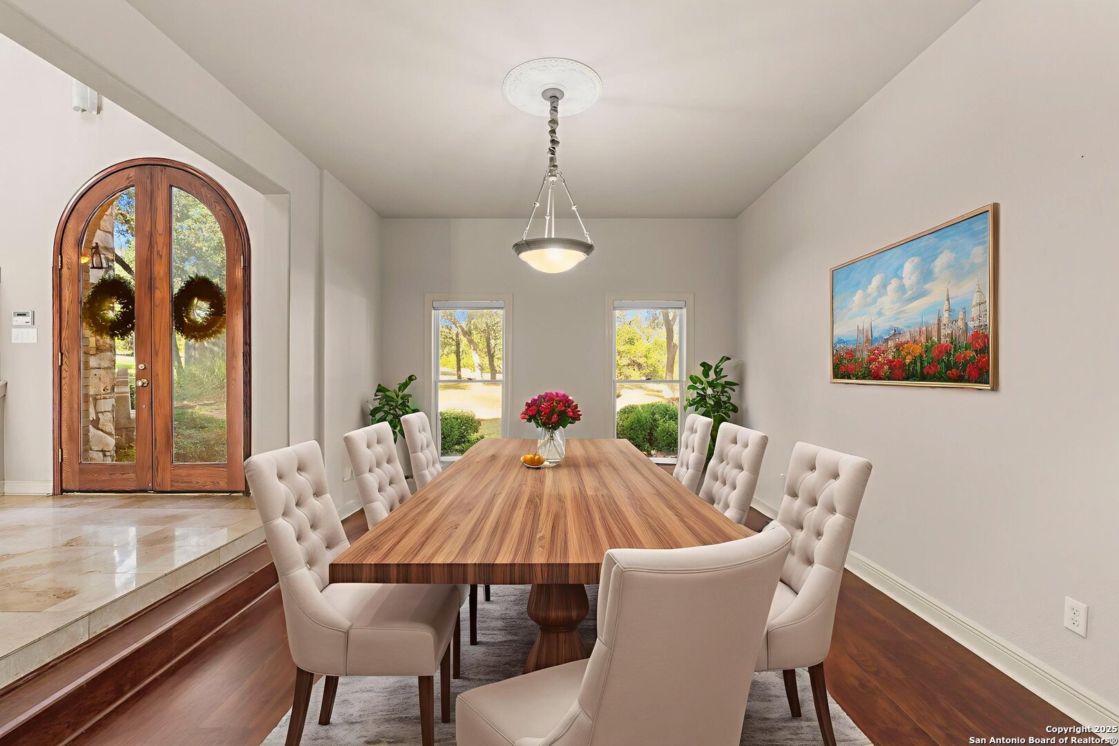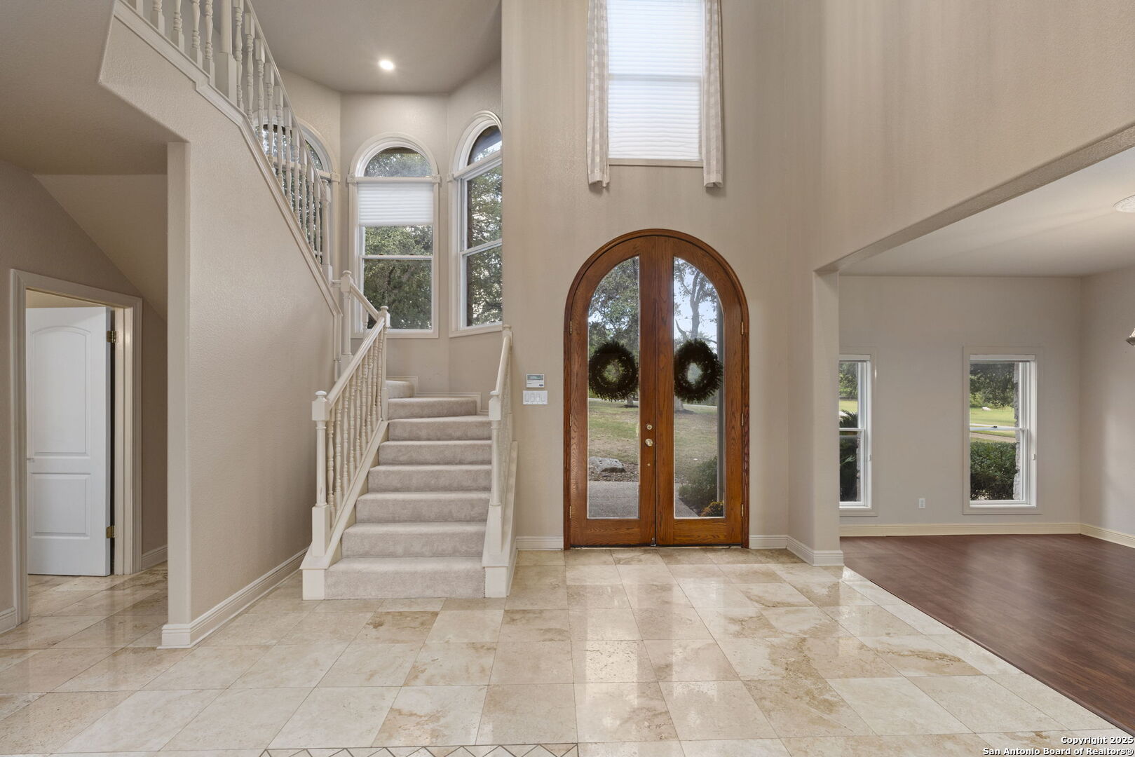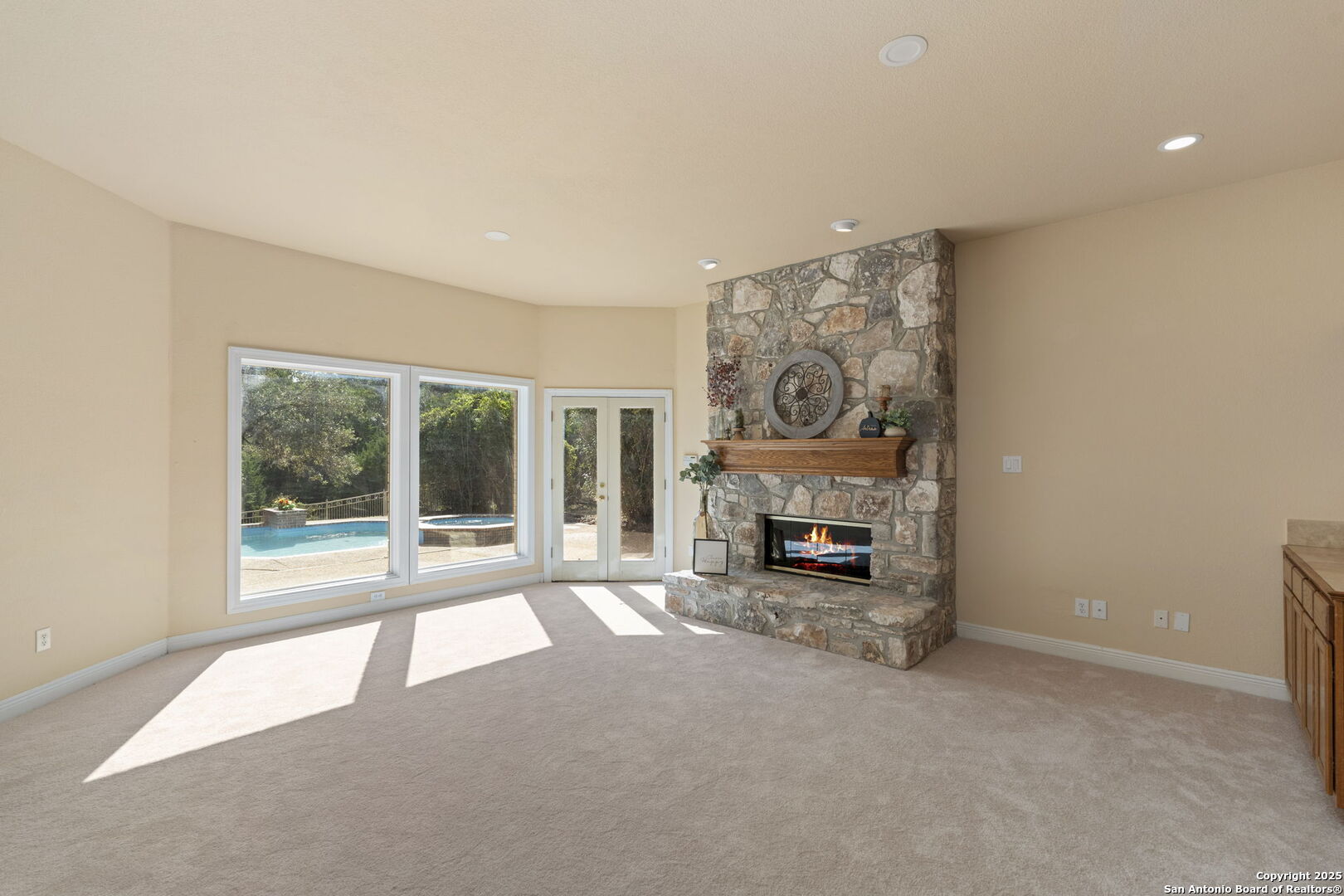 Here's your chance to own a spacious 4600sqft home with 4 bedrooms, 4.5 bathrooms, an in ground pool and spa that sits on 2.34 acres inside a gated community. Priced well below appraised value! Home is set back from the street with a long driveway and welcoming walkway that guides you the front entrance. The double-door entry sets the tone opening to a spacious foyer with soaring ceilings and view of the pool and backyard. Dining room with a picturesque view of the front yard trees. Flex room can be used as an office or second living space or can easily be converted into a 5th room. Bright and inviting, the living room offers natural light, a cozy brick fire place, and a wet bar. Designed for both function and fun, the large kitchen with double ovens provides extensive cabinets and granite counters to accomadate all your entertaining needs. Breakfast Area off the kitchen is perfect for everyday dining or plenty of space to add additional seating. Walk in Pantry offers plenty of storage and shelves. An additional large flex room with double doors to the side of the kitchen looks into the pool and back yard. Upstairs, the staircase opens to the hallway leading you to all the bedrooms. Primary Suite has it's own private entry nook, ideal for art or statement mirror, and a spacious bedroom with vaulted ceilings, windows, and a private brick fire place. Adjoining primary bathroom is practical and roomy, with 2 seperate vanities a bathtub with wrap around windows, an oversized walk in shower and walk in closet. Secondary large bedrooms are split from the primary and each have their own full bathrooms. Laundry room has great storage space with cabinets, counterspace and a sink. An additional staircase leads you back downstairs near the kitchen.Home offers an Oversized 3 car side entry garage. Step outside into your backyard and enjoy the perfect blend of leisure and nature with views overlooking the pool and mature trees. Afternoon shade and plenty of room for patio furniture. Home sits on a little over 2 acres and full of natural landscape with mature trees, some cactus and plenty of wildlife in the community. Home is priced to sell and offers huge potential with a little TLC and updating. Great location, Comal ISD schools AND you don't have a water bill!