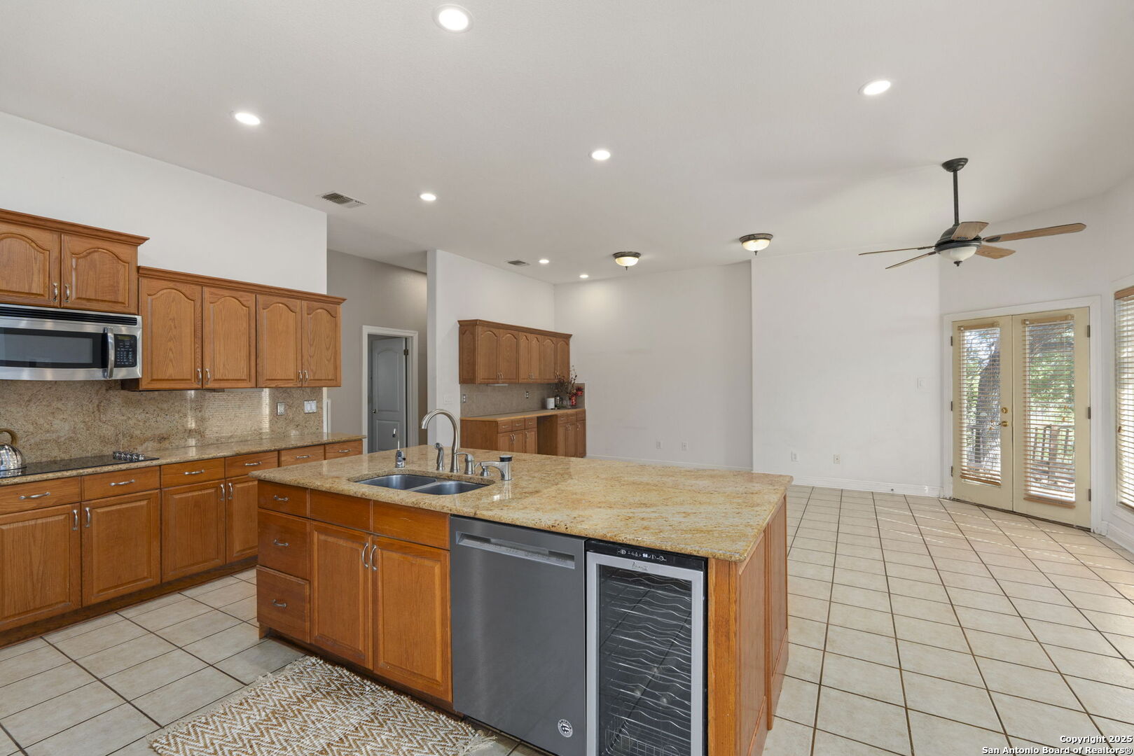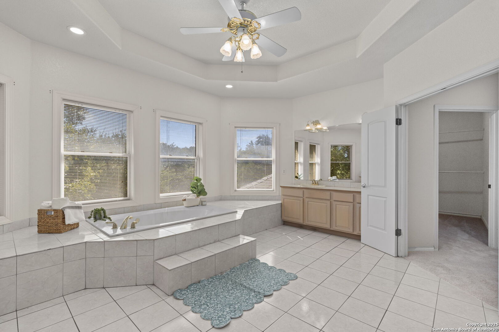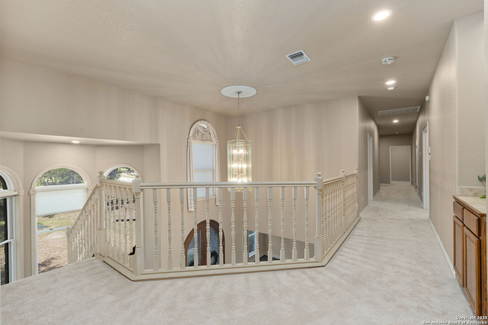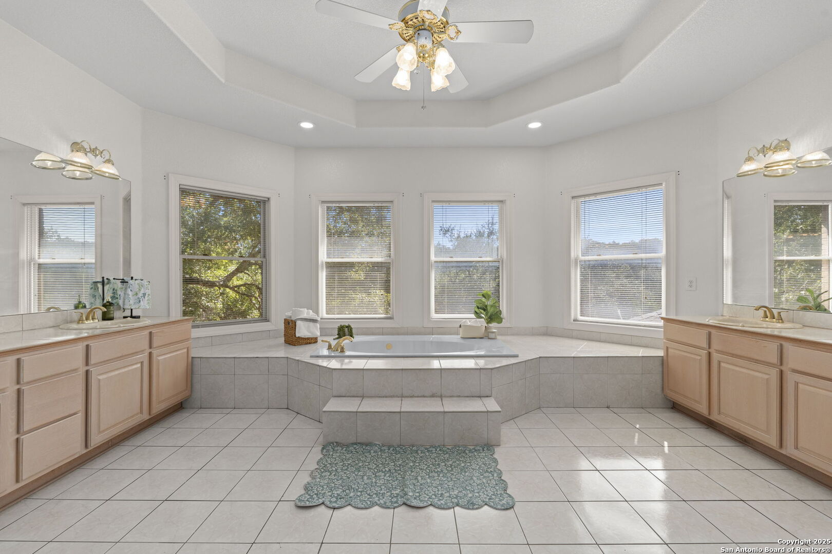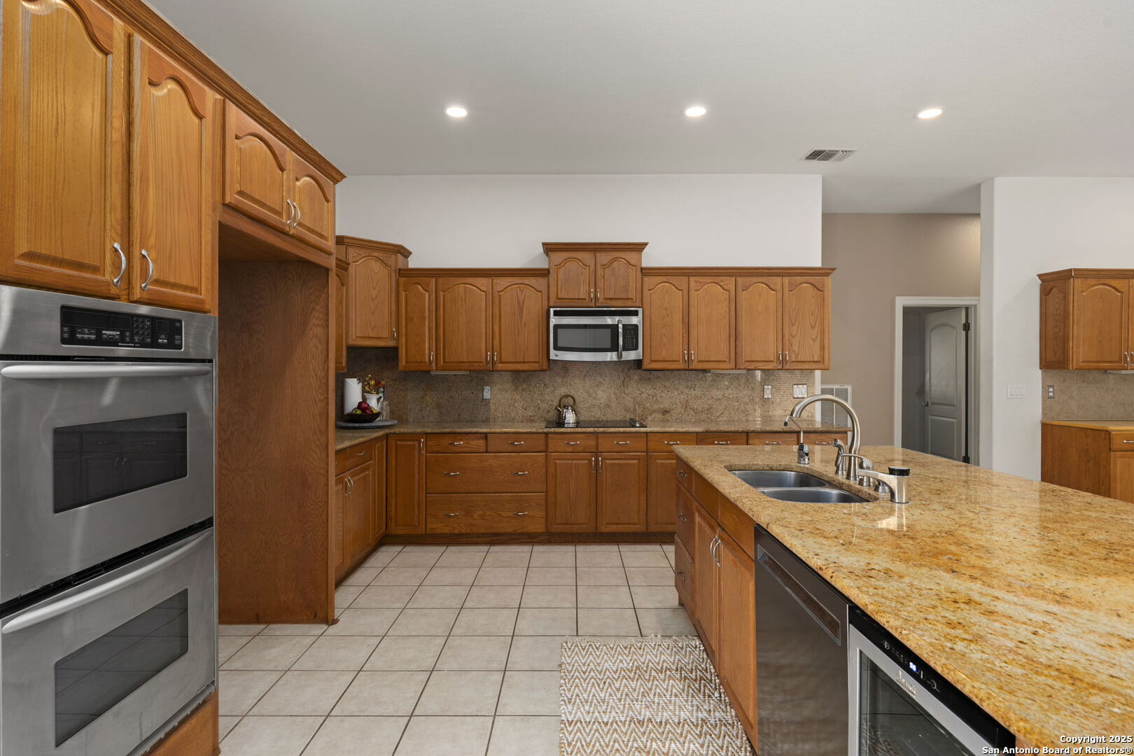 Here's your chance to own a spacious 4600sqft home with 4 bedrooms, 4.5 bathrooms, an in ground pool and spa that sits on 2.34 acres inside a gated community. Priced well below appraised value! Home is set back from the street with a long driveway and welcoming walkway that guides you the front entrance. The double-door entry sets the tone opening to a spacious foyer with soaring ceilings and view of the pool and backyard. Dining room with a picturesque view of the front yard trees. Flex room can be used as an office or second living space or can easily be converted into a 5th room. Bright and inviting, the living room offers natural light, a cozy brick fire place, and a wet bar. Designed for both function and fun, the large kitchen with double ovens provides extensive cabinets and granite counters to accomadate all your entertaining needs. Breakfast Area off the kitchen is perfect for everyday dining or plenty of space to add additional seating. Walk in Pantry offers plenty of storage and shelves. An additional large flex room with double doors to the side of the kitchen looks into the pool and back yard. Upstairs, the staircase opens to the hallway leading you to all the bedrooms. Primary Suite has it's own private entry nook, ideal for art or statement mirror, and a spacious bedroom with vaulted ceilings, windows, and a private brick fire place. Adjoining primary bathroom is practical and roomy, with 2 seperate vanities a bathtub with wrap around windows, an oversized walk in shower and walk in closet. Secondary large bedrooms are split from the primary and each have their own full bathrooms. Laundry room has great storage space with cabinets, counterspace and a sink. An additional staircase leads you back downstairs near the kitchen.Home offers an Oversized 3 car side entry garage. Step outside into your backyard and enjoy the perfect blend of leisure and nature with views overlooking the pool and mature trees. Afternoon shade and plenty of room for patio furniture. Home sits on a little over 2 acres and full of natural landscape with mature trees, some cactus and plenty of wildlife in the community. Home is priced to sell and offers huge potential with a little TLC and updating. Great location, Comal ISD schools AND you don't have a water bill!