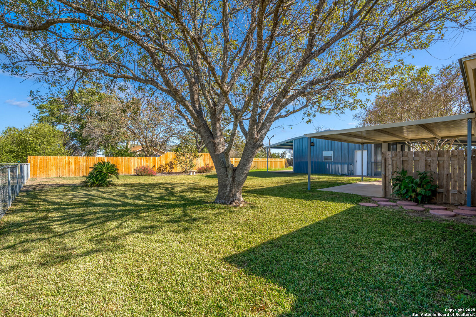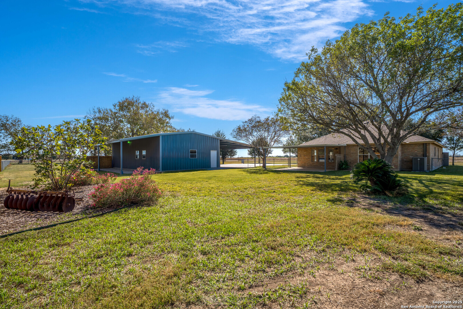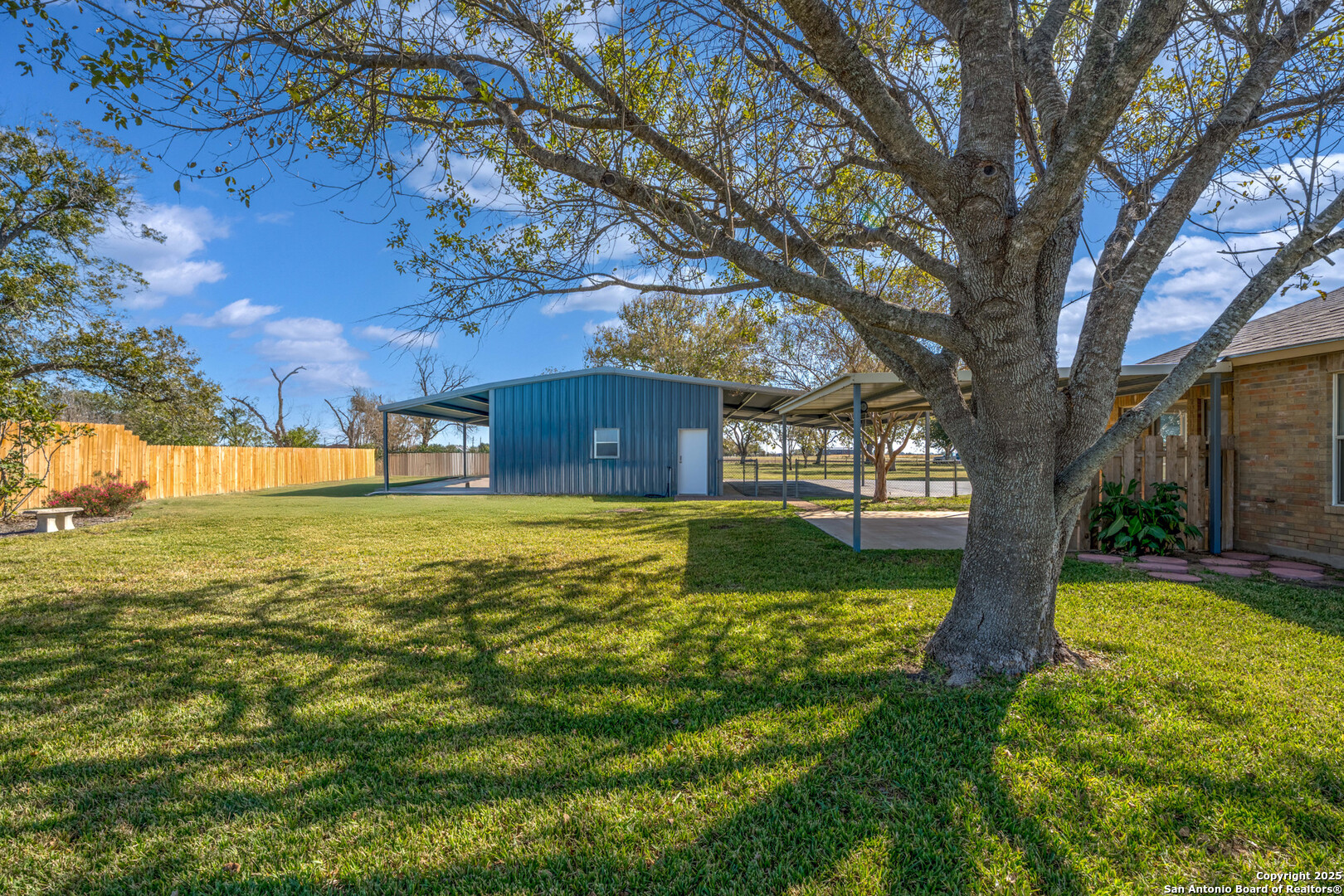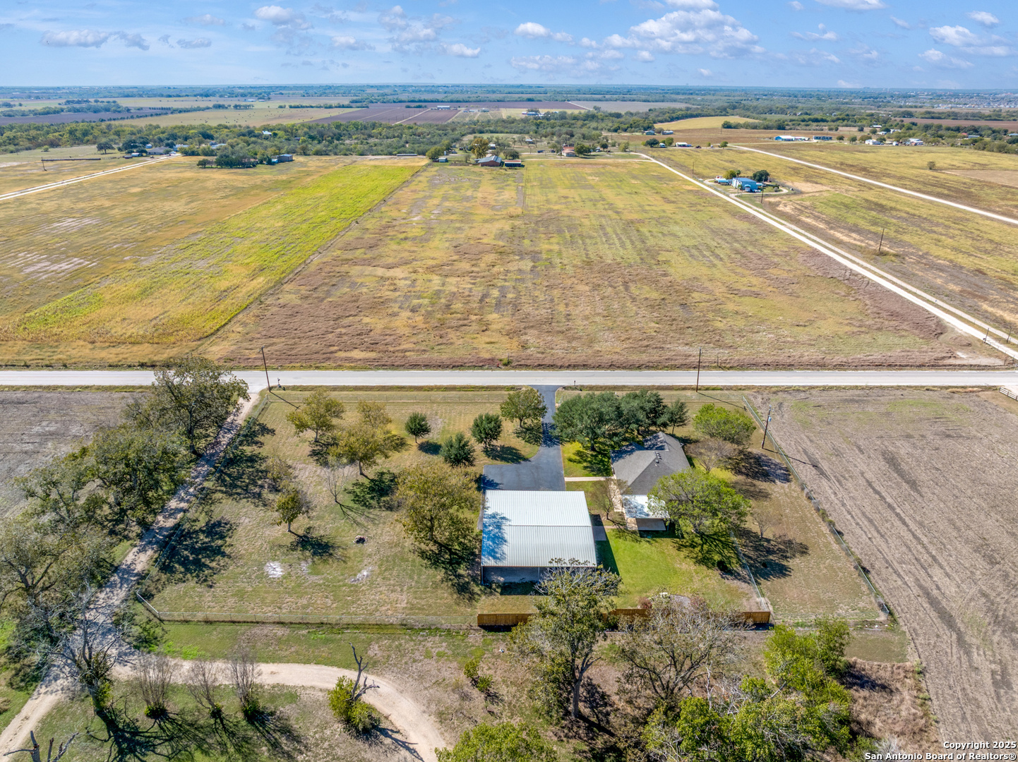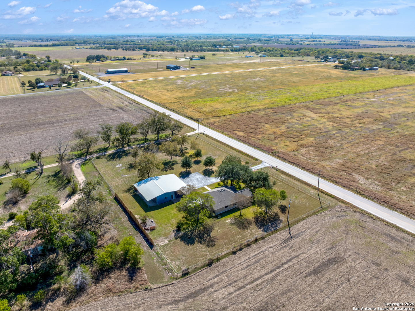 Spacious 3 BR/2BA Home with a large 25 x 50ft. garage/workshop/Multi use building on 1.763 acres,fully fenced! Very Motivated Sellers! Welcome to country living with city convenience! You are going to love this property! This spacious 3BR/2BA home on 1.763 acres (fully fenced with chain-link & privacy fencing) offers 1,974 SF per tax records, featuring two large living areas- one which is perfect for a media room, home office, game room, or potential 4th bedroom. Freshly painted interior with easy-care Travertine tile flooring, and beautiful wood look Luxury Vinyl in the Bedrooms and front Living Area,no carpet! The large kitchen boasts ample counter space, an island, and a stylish tile backsplash. Enjoy outdoor living on the oversized 20x18 covered back patio. The property includes and you will love this also, a massive 25x50 garage/workshop with 3 overhead doors, a 25x50 front carport, and a 12x50 rear covered area. Approximately 1250 Sq.Ft. inside! There is a partial sprinkler system around the house and two sides of the garage! Plus Radiant barrier and blown in insulation! The above ground pool that you see in several of the pictures has been removed and grass will be added very soon! Located in Cibolo city limits, just 2 miles from I-10 and minutes to FM 78. Don't miss this rare find with space, flexibility, and functionality!