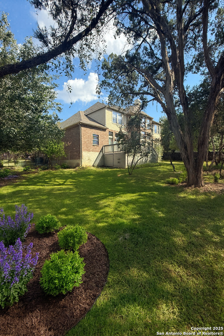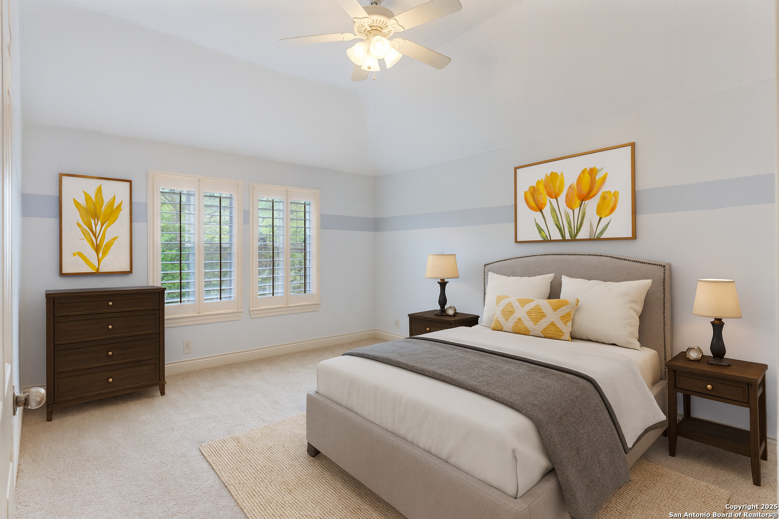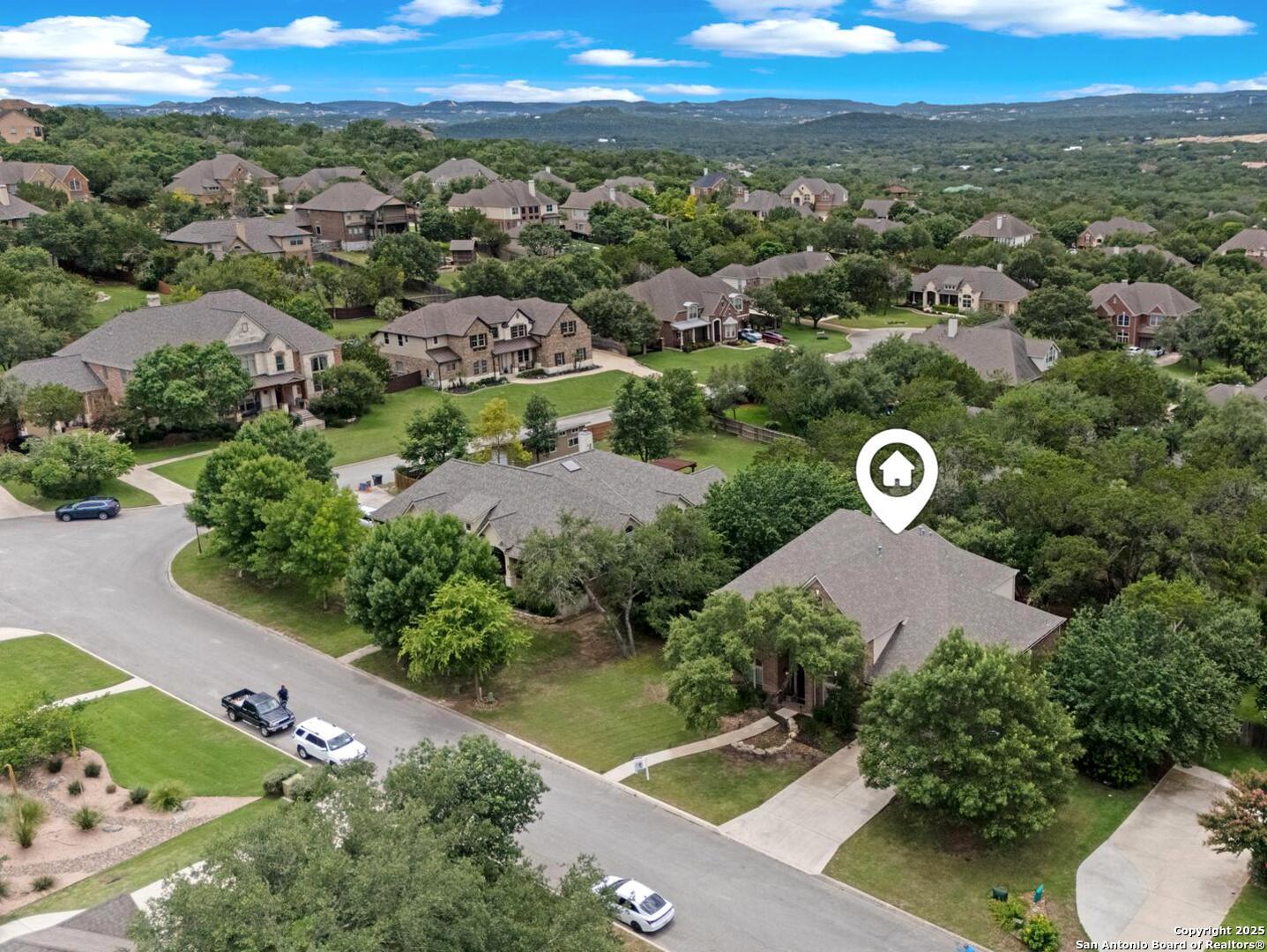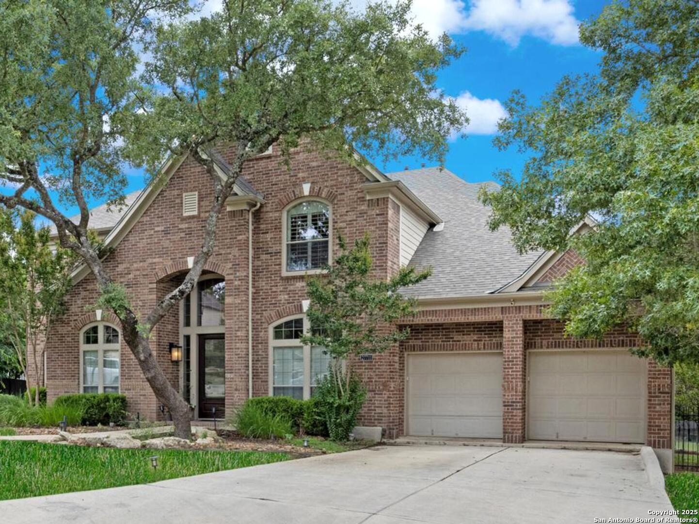 Tucked beneath mature trees and timeless curb appeal, this beautifully maintained two-story home in Limestone Ranch offers the perfect blend of space, comfort, and upgrades. Situated on a large lot in a sought-after gated community, the property boasts soaring ceilings, plantation shutters, and elegant architectural details throughout. The light-filled living room features a dramatic wall of windows and a cozy fireplace, flowing seamlessly into a well-equipped kitchen with granite counters, double ovens, and a center island. The spacious primary suite is a true retreat, complete with bay windows and a spa-like bath with dual vanities, soaking tub, and separate shower. A dedicated office and formal dining room add functionality, while the upstairs loft provides additional living flexibility. Step outside to enjoy a peaceful backyard with an extended deck, ideal for relaxing or entertaining. Zoned to top-rated Boerne ISD and just minutes from shopping, dining, and major highways-this home has it all!