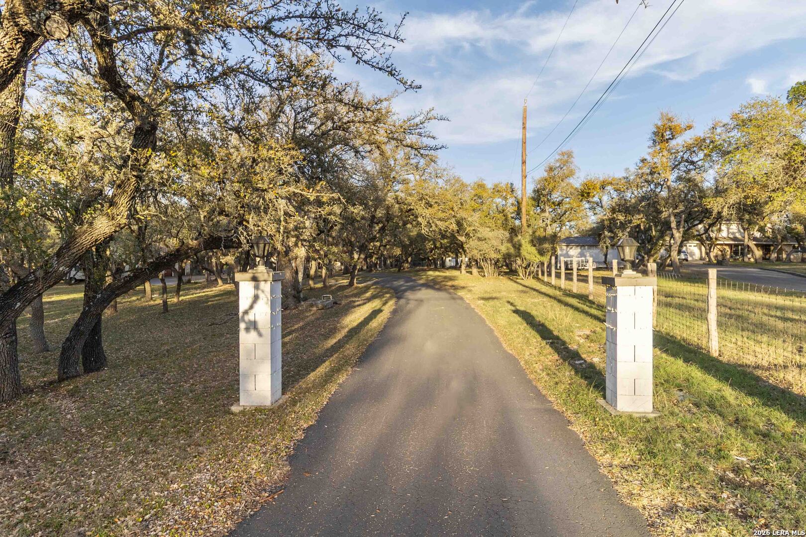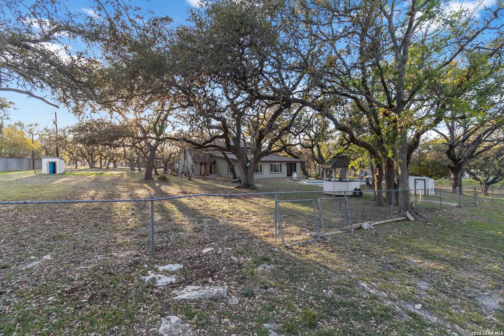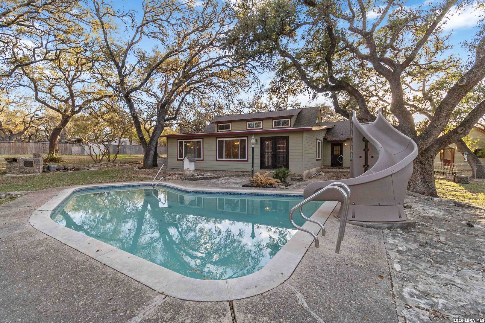 Nestled in the highly sought-after Timberline Park community, this 2.93-acre property is beautifully maintained and shaded by mature live oak trees. Offering over 3,550 square feet, this home blends space, charm, and versatility. Upon entry, you're welcomed by a parlor-style formal living and dining area. The expansive main living room is filled with natural light from four large picture windows, showcasing scenic views of the in-ground pool with slide and the serene, wooded landscape beyond. The galley kitchen features an oversized glass cooktop and double oven, ideal for both everyday living and entertaining. A separate laundry room and spacious pantry add convenience, with direct access to the backyard. The first-floor primary suite offers a private retreat with a walk-in shower, dual closets (including a walk-in within the bathroom), and direct patio access. A secondary bedroom on the main level provides exceptional flexibility, complete with a walk-in closet, wood-burning fireplace, built-in shelving, and unique mosaic flooring perfect as a den, guest suite, or study. A full bathroom with a walk-in shower completes the first floor. Upstairs, a rich hardwood staircase leads to two generously sized bedrooms, a full bath with a newly updated walk-in shower, and a flex space ideal for an office, nursery, or playroom, featuring a large walk-in closet. A circular blacktop driveway welcomes you to the property, along with a spacious four-car garage and ample parking. Gated access on both sides allows for easy backyard entry, with additional drive access to the rear acreage. Equestrian-ready, the rear acre includes a tack room and three horse stalls. A fenced, elevated treehouse with a rock-climbing wall adds a unique touch, while a designated burn pit area and ample cut wood complete this exceptional outdoor setting.