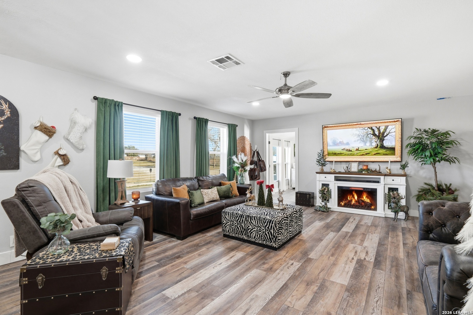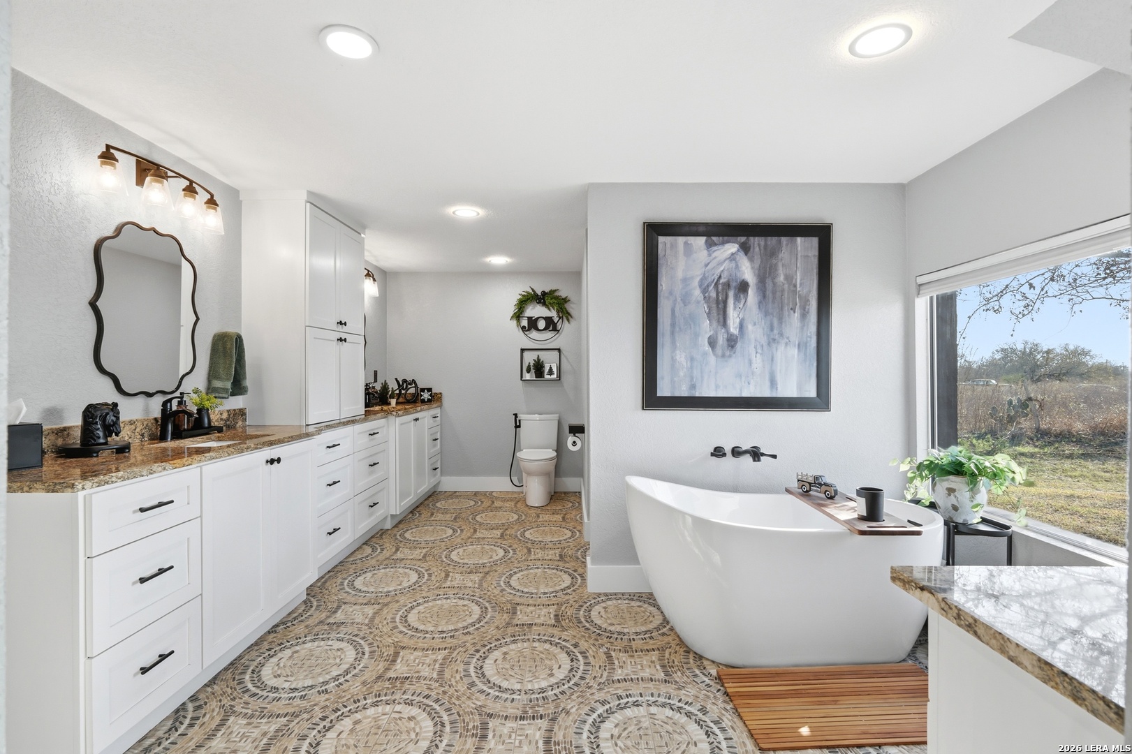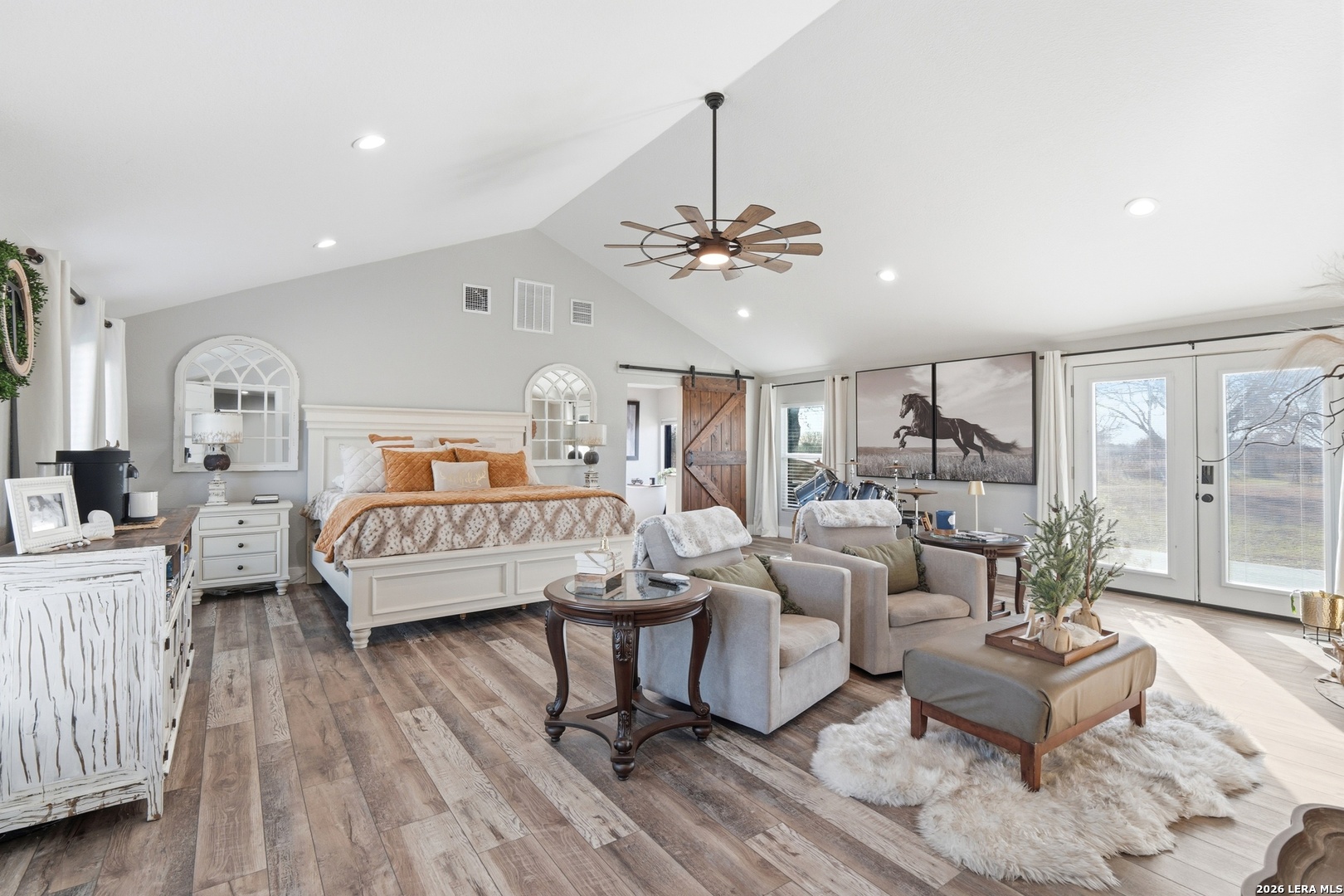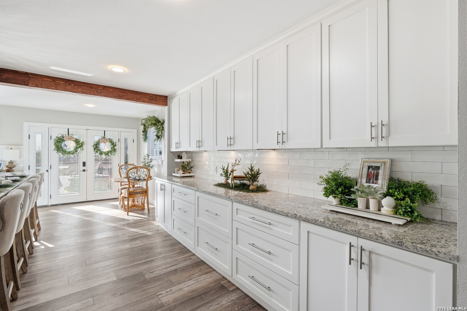 Experience luxury country living in La Vernia with this stunning, fully remodeled home set on 3.5 acres of unrestricted land. Offering 4 bedrooms and 3 full bathrooms, this property perfectly blends elegance, comfort, and wide-open space. Step inside to discover a beautifully redesigned interior, highlighted by a show-stopping kitchen featuring exposed wooden beams, an oversized island, and high-end finishes ideal for both everyday living and entertaining. The living area is warm and inviting with a natural fireplace and a stylish wet bar, creating the perfect setting for gatherings. The expansive primary suite is truly spectacular, offering ample space for a seating area and direct access to the backyard and pool. The spa-like primary bathroom boasts his-and-hers vanities, a soaking standalone tub, and a large walk-in shower. The walk-in closet feels like a private boutique, with abundant space for clothing and accessories. Step outside and enjoy your own private retreat, where a resort-style pool awaits-perfect for entertaining or cooling off during hot Texas summers. With no HOA, this property offers the freedom to bring horses or cattle, making it ideal for those seeking a true country lifestyle without sacrificing luxury. A rare opportunity to own a move-in-ready, luxury home with land, privacy, and no restrictions-this La Vernia gem is a must-see.