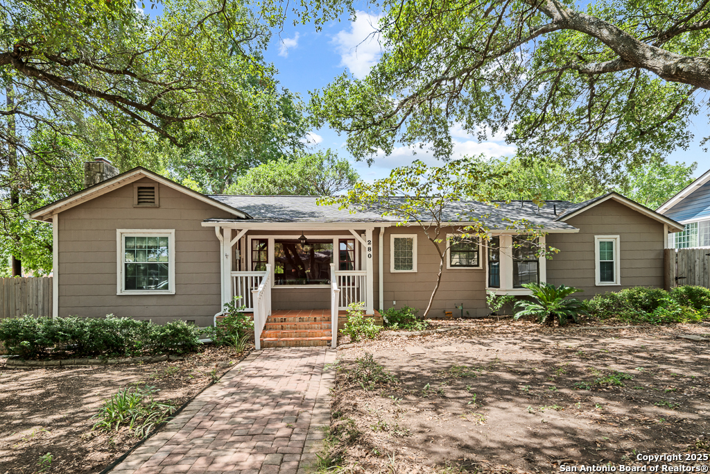 Charming cottage with timeless appeal, nestled in the heart of Alamo Heights, this inviting 3-bedroom, 2-bathroom cottage blends classic charm with modern comfort on an expansive corner lot shaded by mature trees. Located just steps from award-winning Alamo Heights schools, this one-story home offers both tranquility and convenience in one of San Antonio's most beloved neighborhoods. Step inside to warm hardwood floors and a light-filled family room anchored by a cozy fireplace - the perfect place to gather. A separate play area or flex space adds versatility for growing families or those working from home. The kitchen is a chef's delight, with custom cabinetry, stainless steel appliances, and a charming breakfast nook with bay windows that fill the space with natural light. Three well-appointed bedrooms and two full bathrooms offer comfortable living for all. Out back, enjoy peaceful evenings on the spacious deck, surrounded by privacy and greenery, with gated access to the covered parking area and a convenient storage shed. Washer and dryer connections are located inside for everyday ease. With its unbeatable location, timeless features, and thoughtful layout, this Alamo Heights gem is ready to welcome you home.