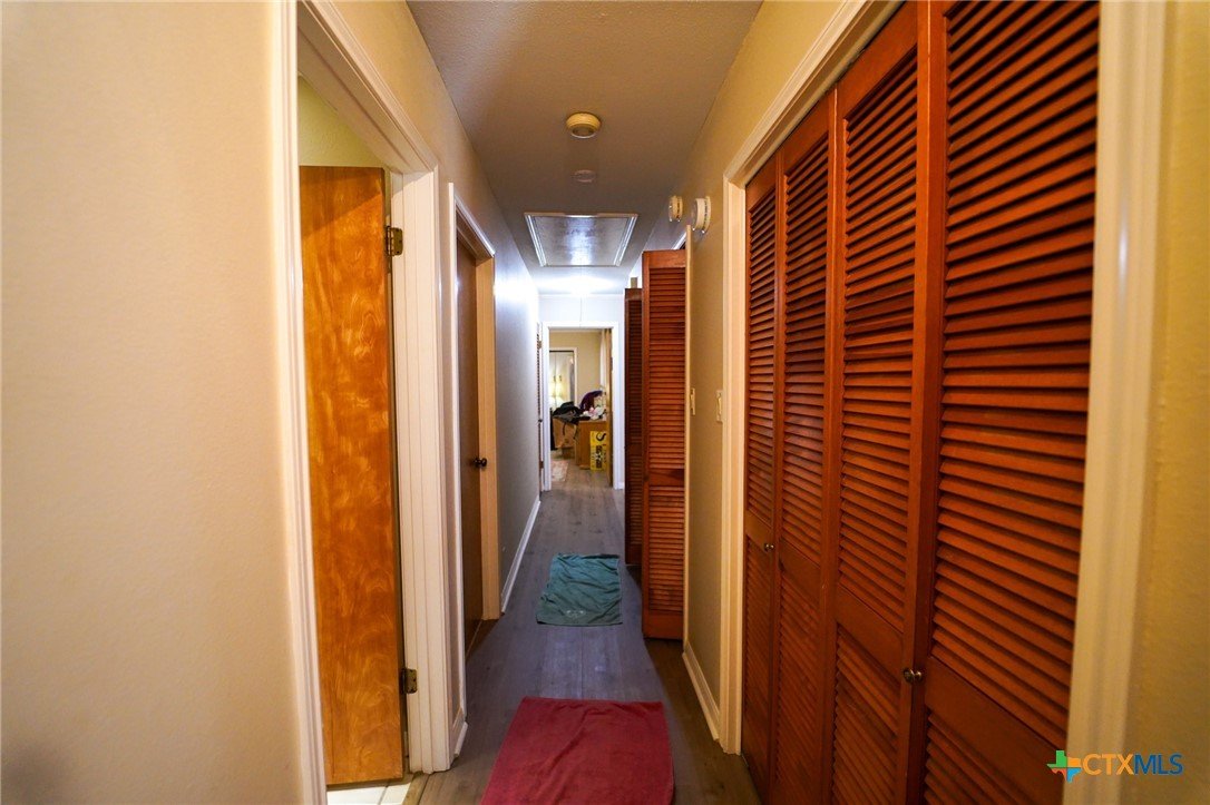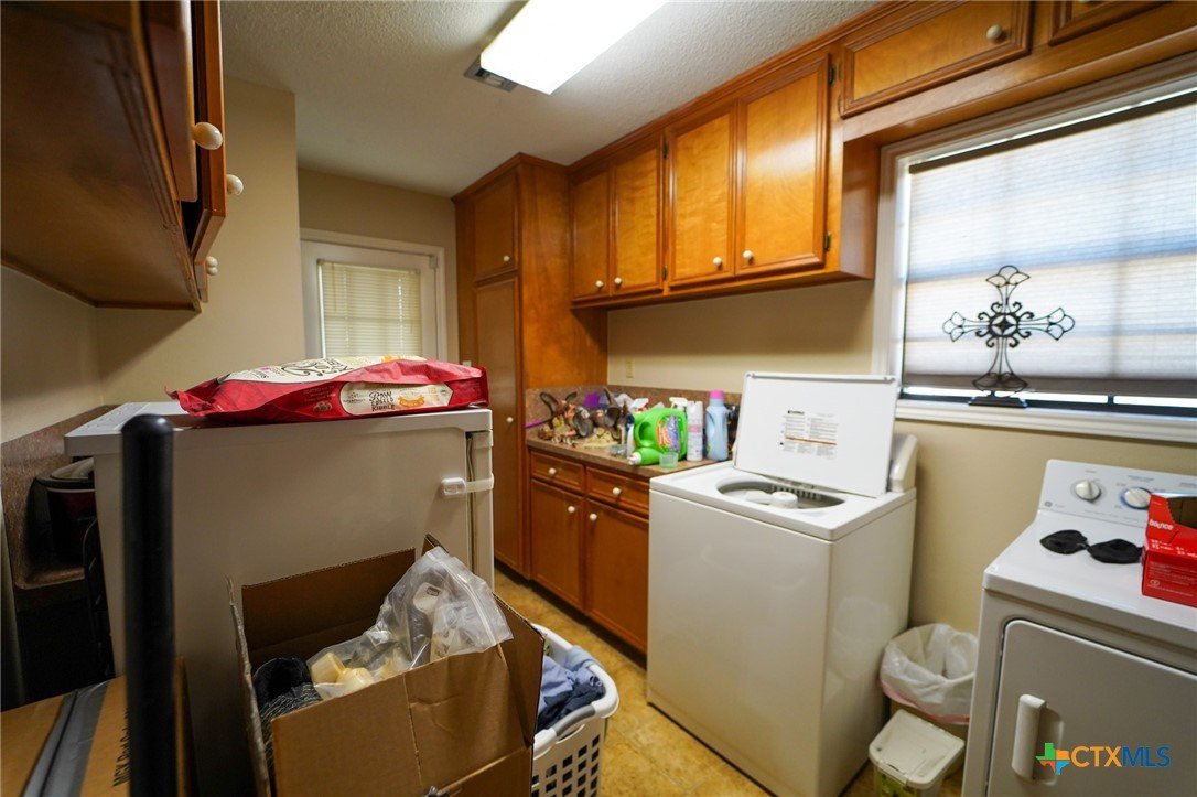 3-bedroom, 2-bath home located in an established neighborhood near Texas A&M University–Victoria and Victoria College. Features include a breakfast area, formal dining space, pantry, and both an enclosed porch and covered porch. The kitchen offers vinyl flooring, built-in oven, gas stove, microwave, dishwasher, and refrigerator (conveys). Spacious laundry room includes a laundry counter and abundant cabinet storage and half bath. Primary suite features a jetted tub and generous closet space. Additional highlights include four hall closets for extra storage, electric fireplace, and a window unit added for supplemental cooling during storms. Backyard is enclosed with a vinyl privacy fence.