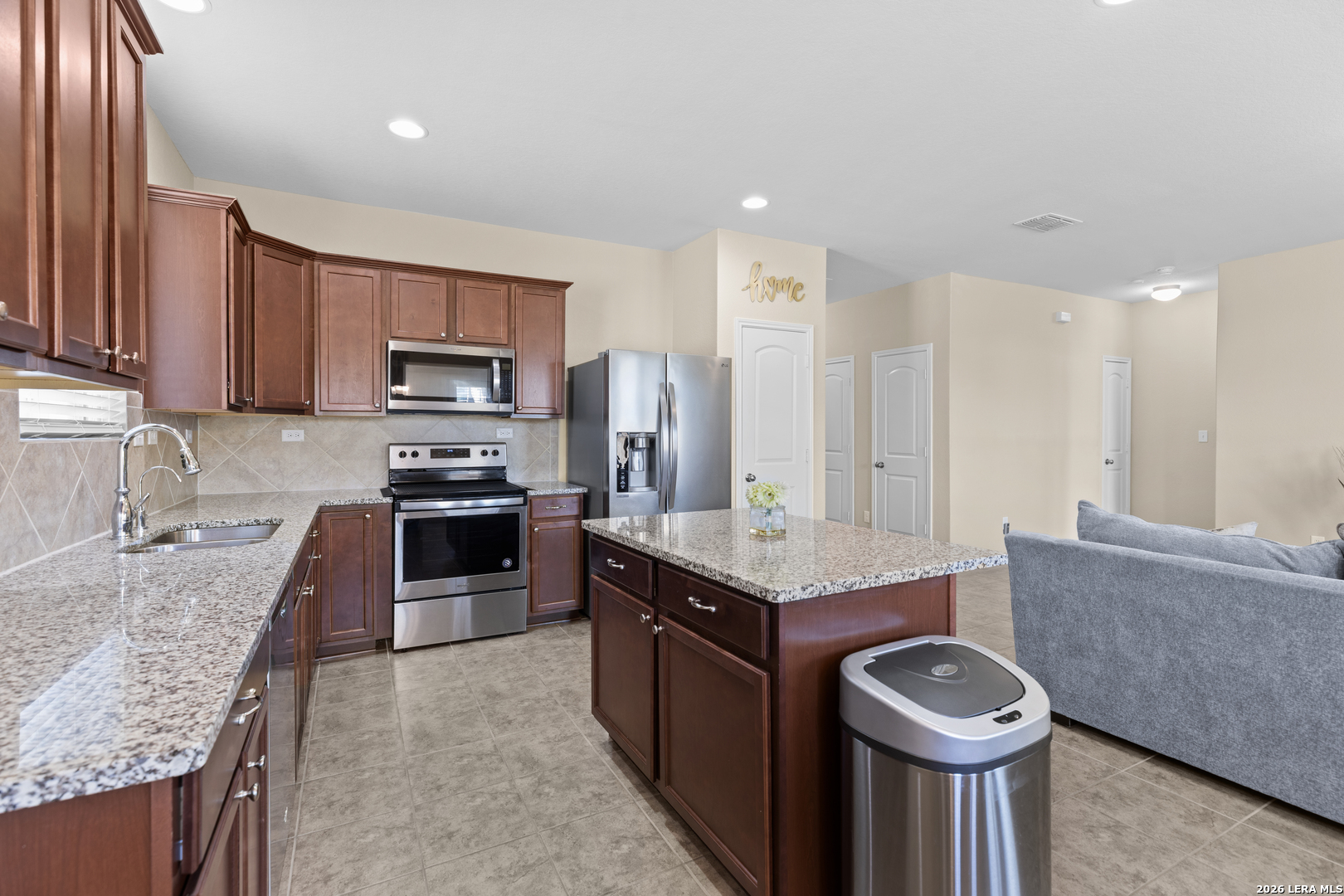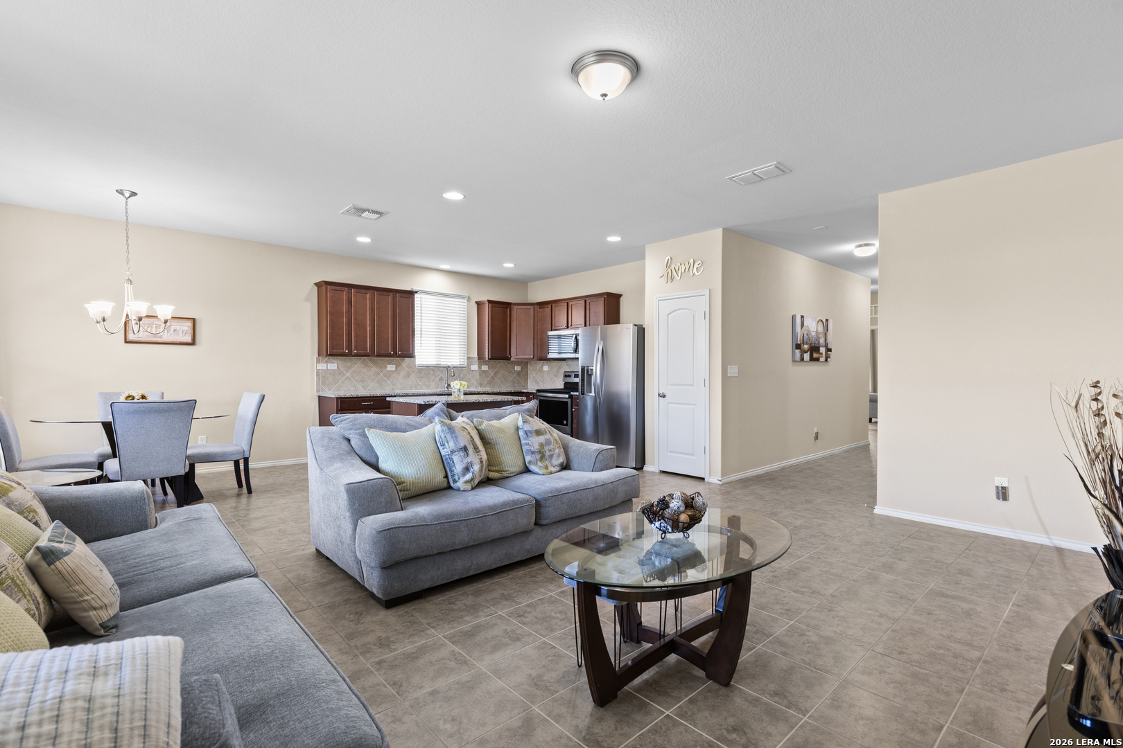 Beautiful Open-Concept Pulte Home Built in 2019! Welcome to this spacious and well-maintained 3-bedroom home in New Braunfels, offering the perfect blend of comfort, style, and convenience. Designed with an inviting open-concept layout, this home is ideal for both everyday living and entertaining. The bright and airy living area flows seamlessly into the dining space and kitchen, creating a warm and welcoming atmosphere filled with natural light. Tile flooring runs throughout the main living areas, with carpet only in the bedrooms for added comfort. The kitchen is truly the heart of the home, featuring granite countertops, a center island, stainless steel appliances, and abundant cabinetry-perfect for cooking, gathering, and making memories. Just off the kitchen, the dining area overlooks the backyard and offers easy access to the patio. The private primary suite provides a relaxing retreat with a spacious bedroom, dual vanities, a walk-in shower, and a generous walk-in closet. The secondary bedrooms are well-sized and versatile, making them ideal for family, guests, or a home office. Step outside to the backyard, a great space for pets, play, or weekend get-togethers. With its functional floor plan and thoughtful design, this home offers both comfort and convenience. Located in a desirable New Braunfels neighborhood with easy access to IH-35, shopping, dining, and top-rated schools, this home is ready for its next owner.