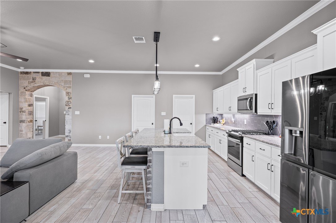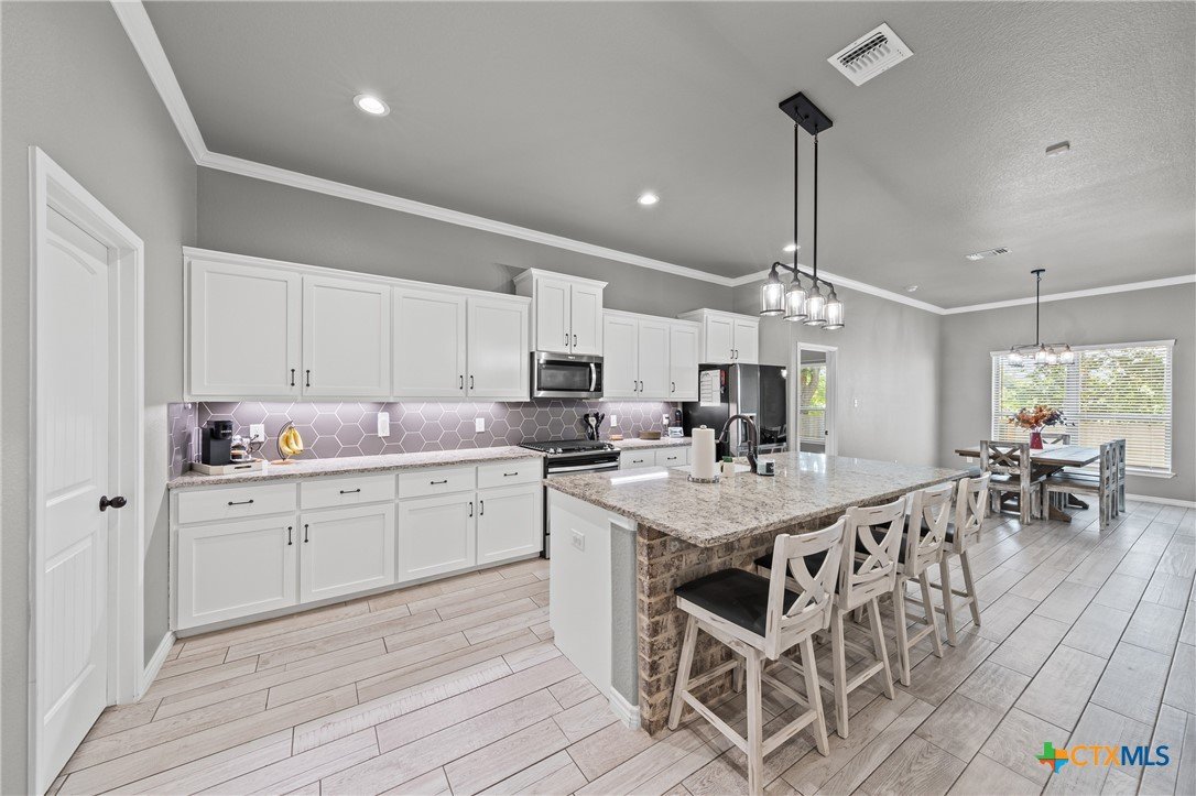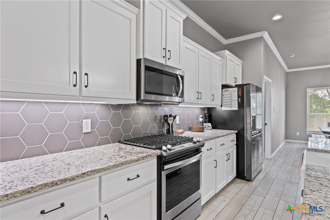 This is  ideal for those seeking a serene and elegant living space. The home boasts four spacious bedrooms and two modern bathrooms, ensuring ample space for family and guests. The luxury continues with a three-car garage and sleek granite countertops that adorn the kitchen, equipped with a gas range and oven for the culinary enthusiast. The open concept design enhance the home's aesthetic, while tile flooring throughout adds a touch of sophistication and easy maintenance.  With no rear neighbors, you can enjoy added privacy in your outdoor oasis, complete with a cozy patio fireplace. This property is the epitome of modern living, offering both functionality and beauty.