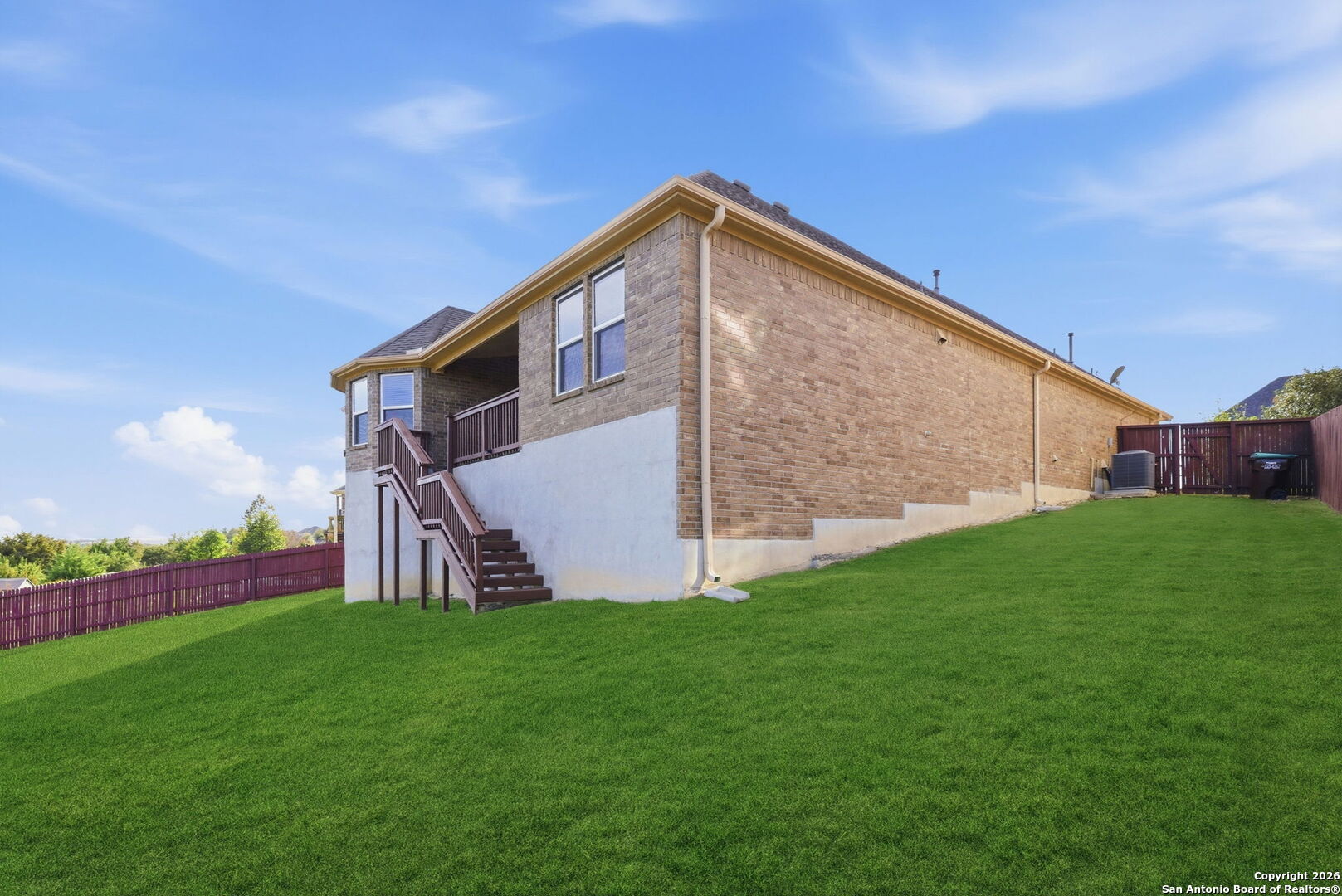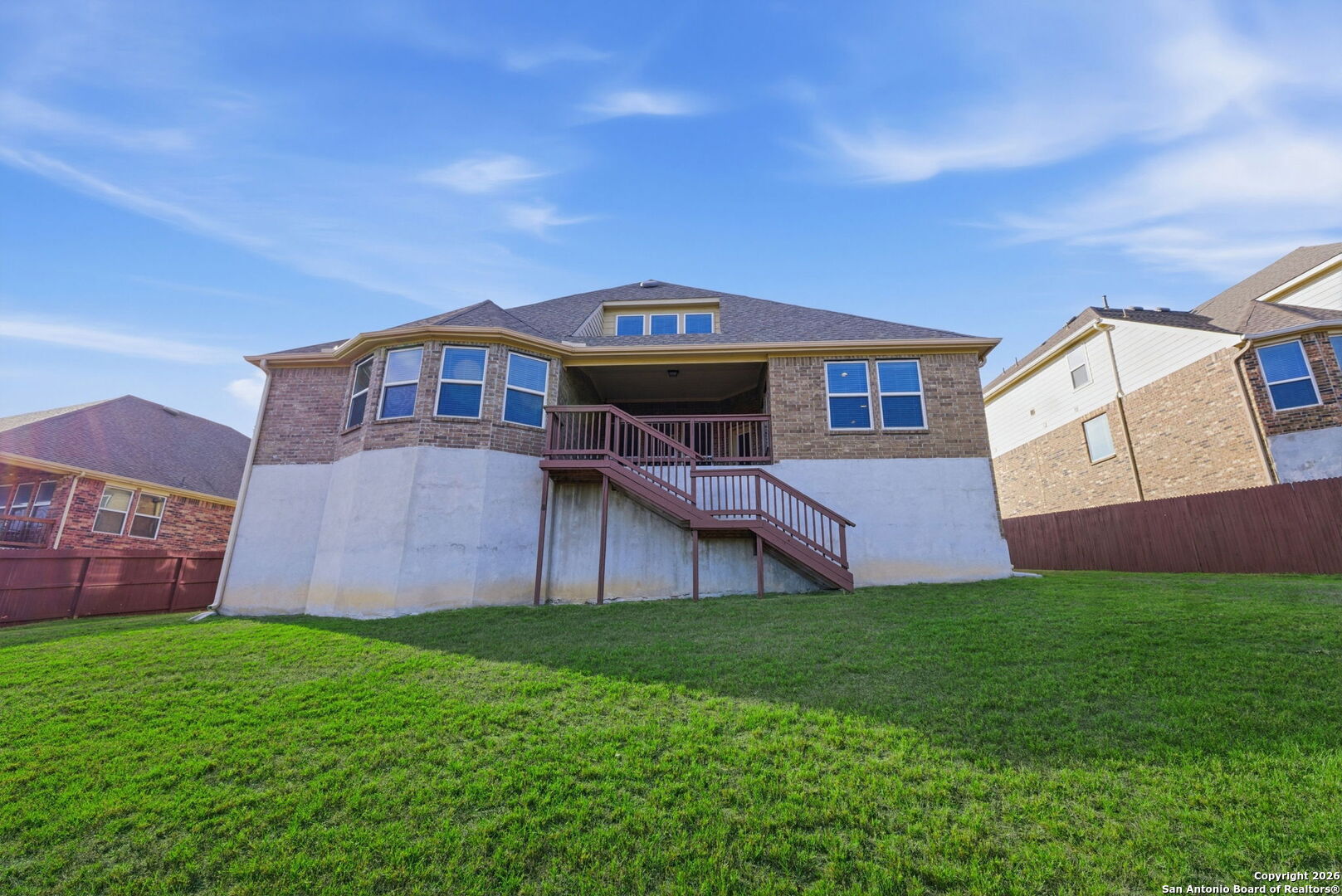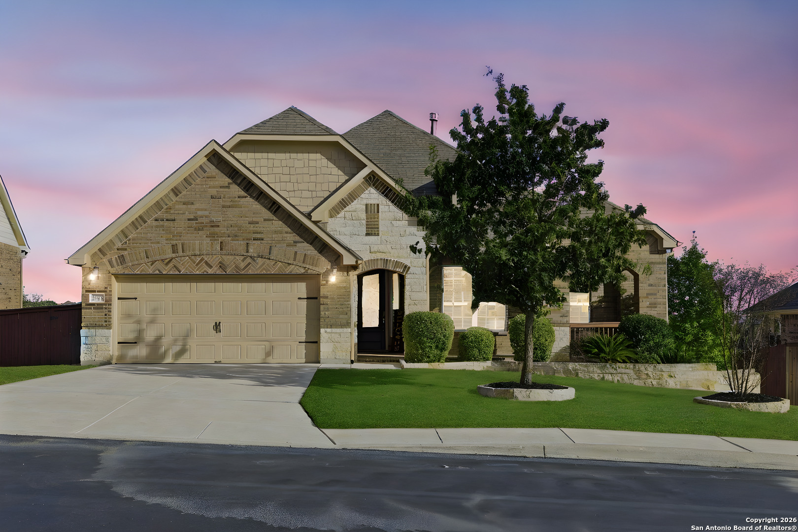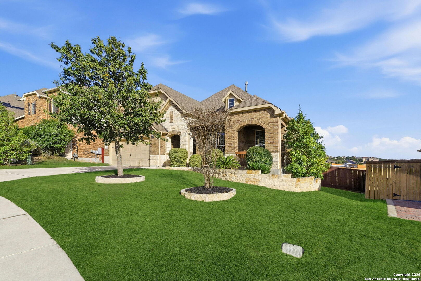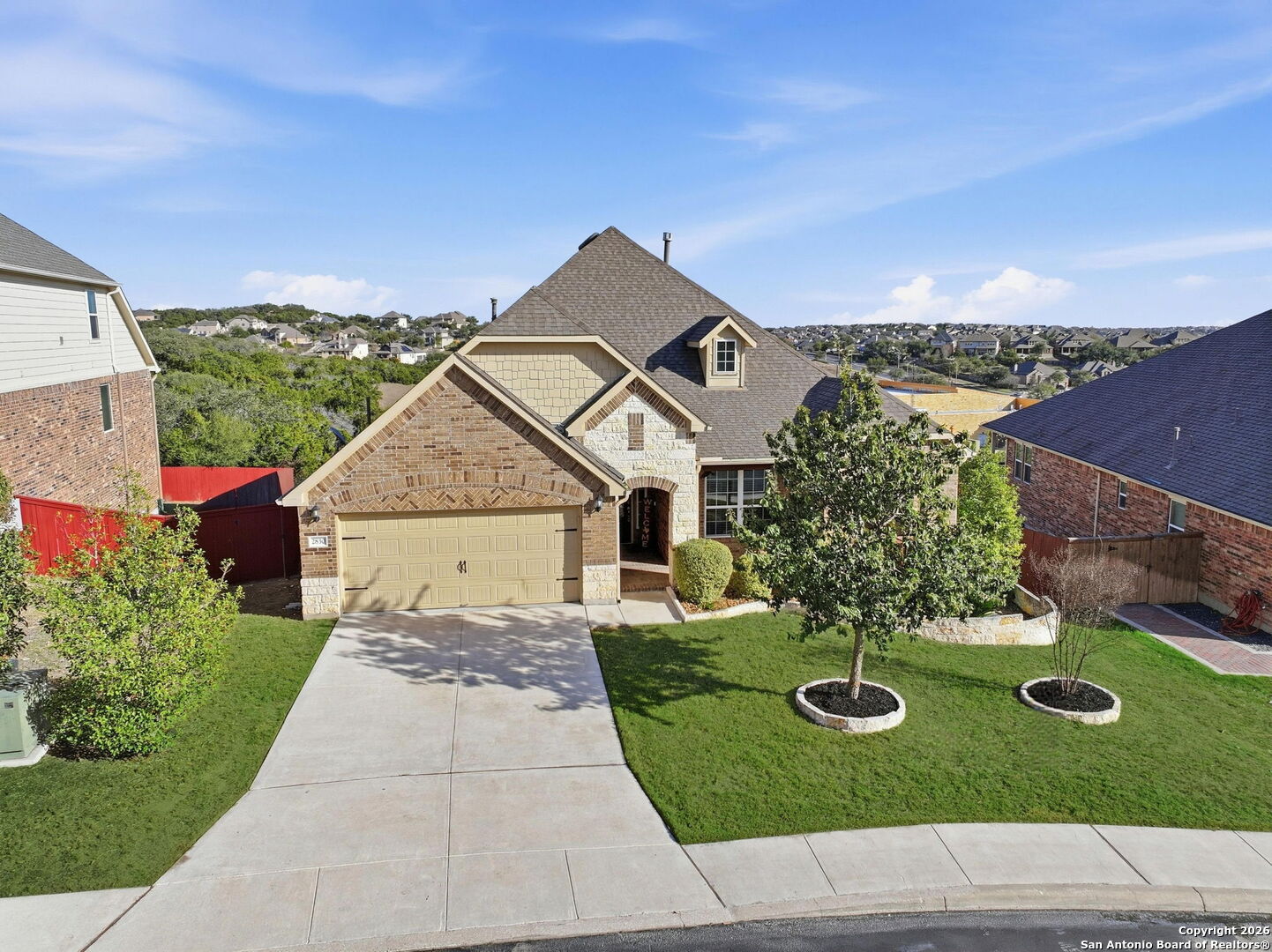 VIEWS, VIEWS, VIEWS! Welcome to 2830 Running Fawn, San Antonio, Texas, a splendid home that marries comfort and design in a seamless blend. Located within a beautiful gated community, this home stands out with its exquisite combination of brick and stone exterior, reflecting pride of ownership and an undeniable curb appeal that captures the eye. The rear covered patio offers elevated, long-range views that stretch for miles, ensuring the sun sets in front of the house and allowing for more enjoyable summer evenings outdoors in the backyard. Spanning 2,774 square feet with 3 bedrooms, 2 full baths, a dedicated private office that could easily be converted into a 4th bedroom, a large bonus room upstairs ideal for movies, a pool table, etc., the home offers an expansive living experience. The main floor unfolds into an open floor plan, spoiled with natural light from large windows, enhancing the spacious kitchen and dining area. Granite countertops, a large island, stainless appliances, and ample cabinets define the kitchen, making it a chef's delight. It opens effortlessly into the family room, where a stacked stone floor-to-ceiling gas fireplace stands as a focal point, adding a touch of warmth and elegance. An exceptional feature of this home is the large game room located upstairs, offering a versatile space for entertainment or relaxation. The primary bedroom offers amazing elevated views, a beautiful 5 piece bathroom with an over-sized walk-in shower, double vanity and a spacious walk-in shower. The two guest bedrooms are located away from the primary bedroom and share an immaculate full bathroom. Additionally, the a second built-in office/desk off the kitchen, strategically open to the family room, provides a perfect spot for managing household affairs or remote work. The exterior spaces of this home are equally impressive. The covered patio is the perfect place for evening dining, grilling or morning coffee. The large backyard, spanning over 1/4 acre, awaits your personal touch, be it installing a swimming pool or simply enjoying the excellent community amenities nearby, including a pool, dog park, and playground. Located within walking distance to Indian Springs Elementary and zoned for the highly desirable Pieper High School, this home not only promises a sanctuary for your family but also assures a community rich in amenities and conveniences. Minutes away from shopping, dining, and entertainment options, 2830 Running Fawn offers the ideal location with its' views and floor plan. With great schools, a 3-car tandem garage with epoxy flooring for your vehicles and storage needs, a dining area that boasts extended views, a water softener, a built-in drop zone off the garage and so much more, this home is a testament to both beauty and functional living. Come take a look at 2830 Running Fawn-you won't be disappointed!
