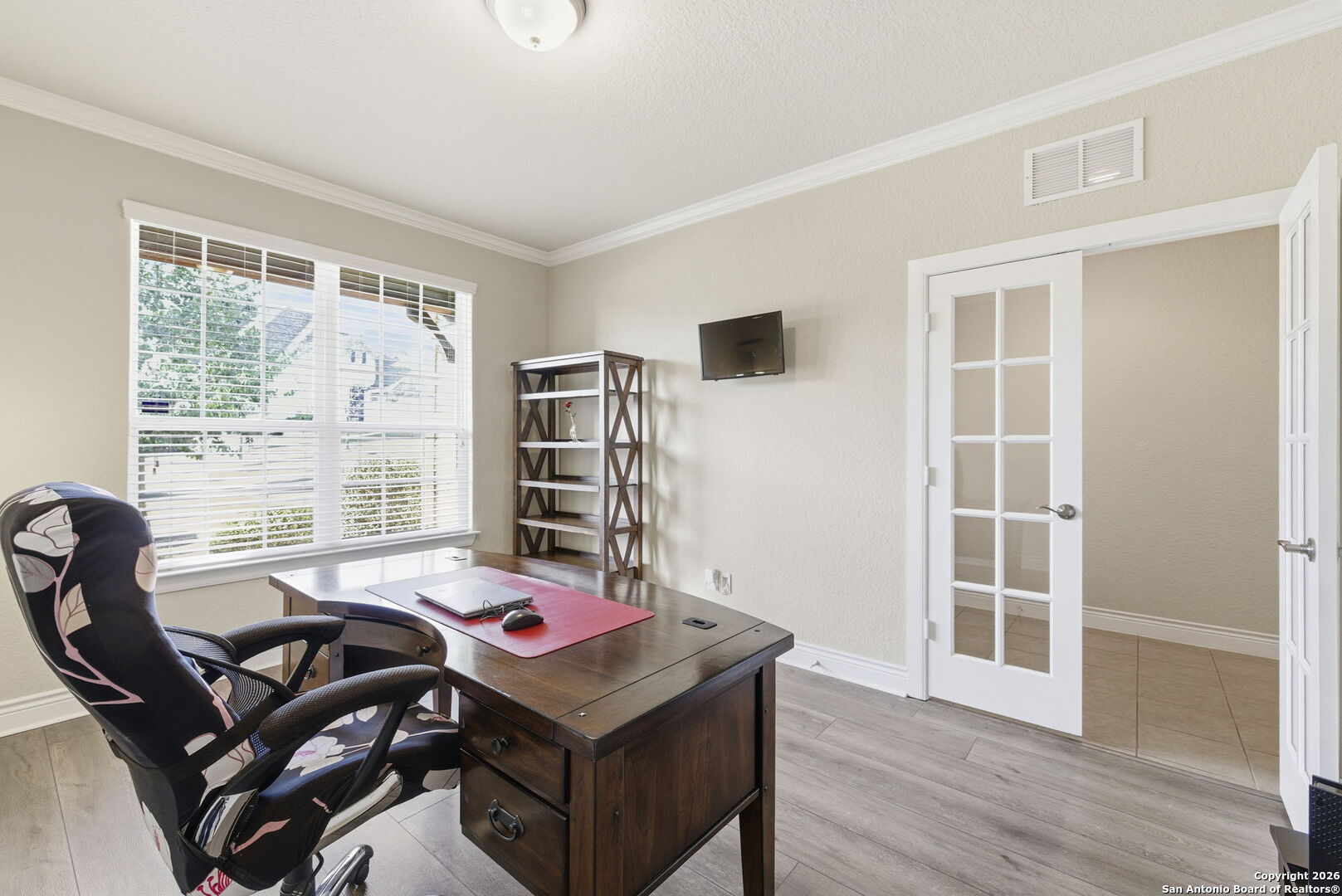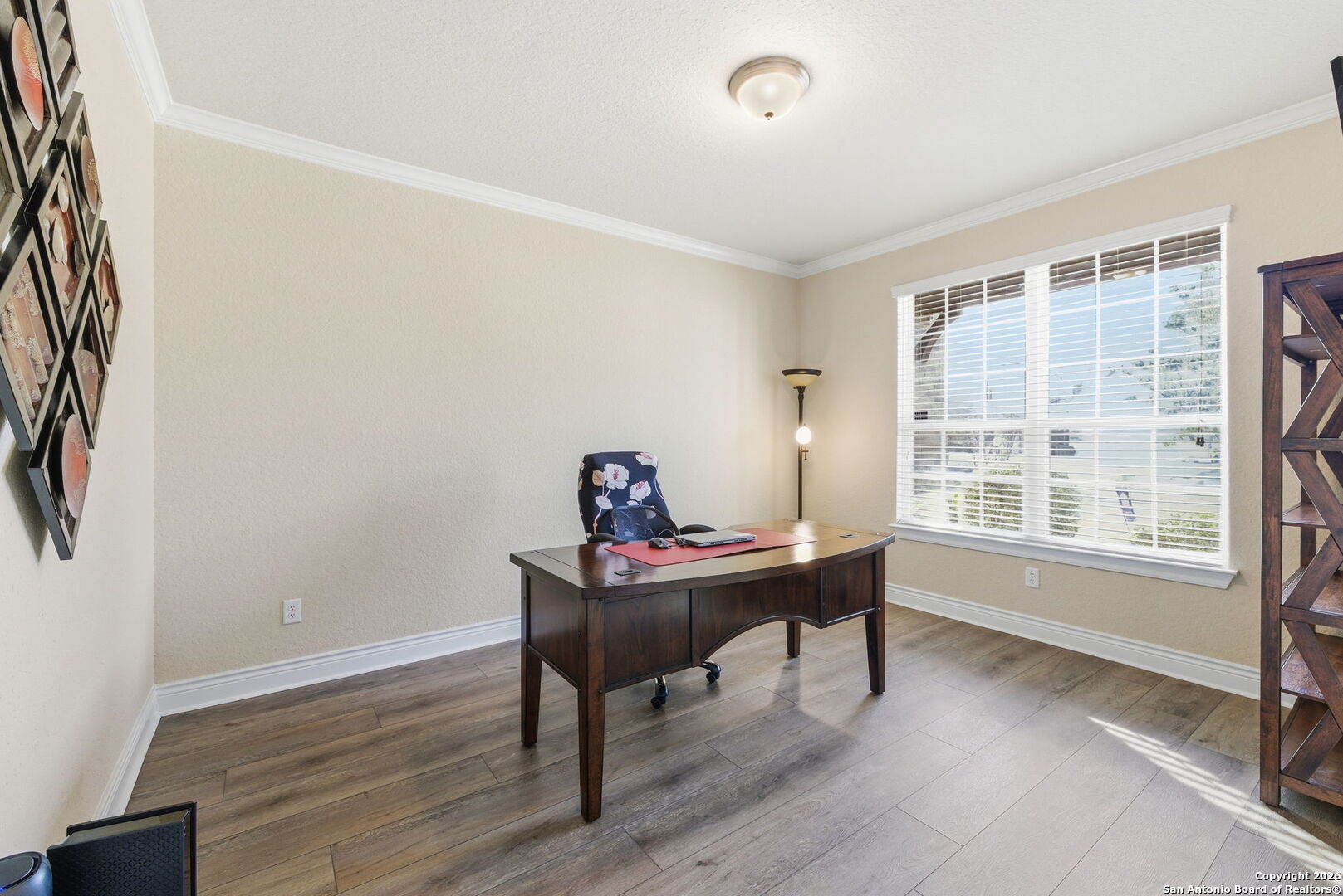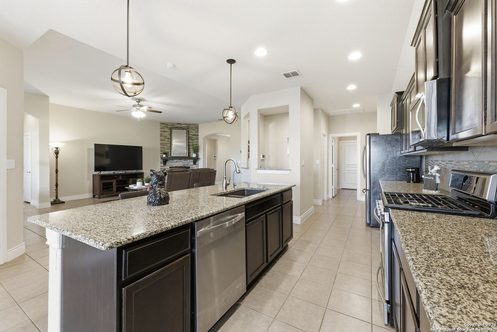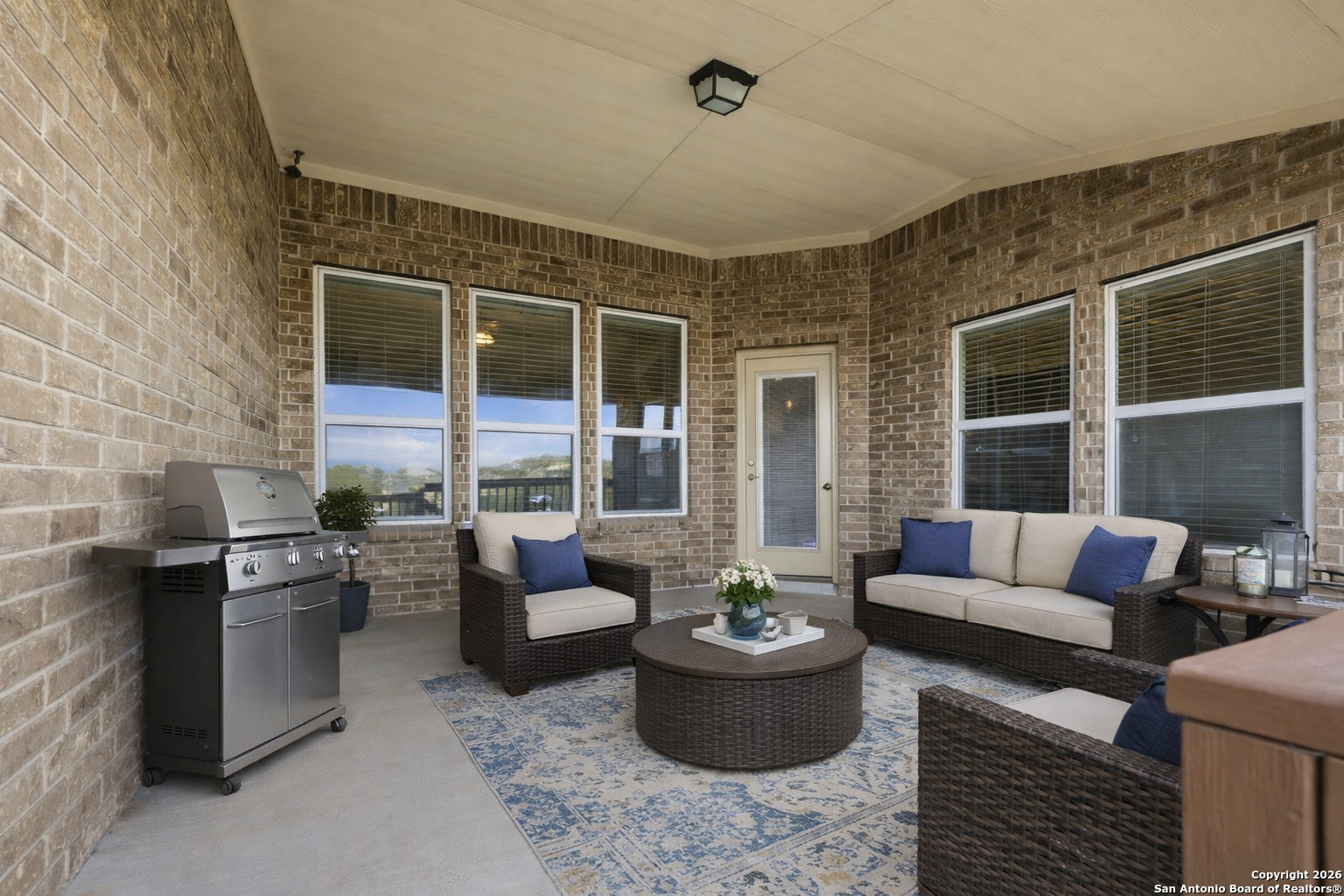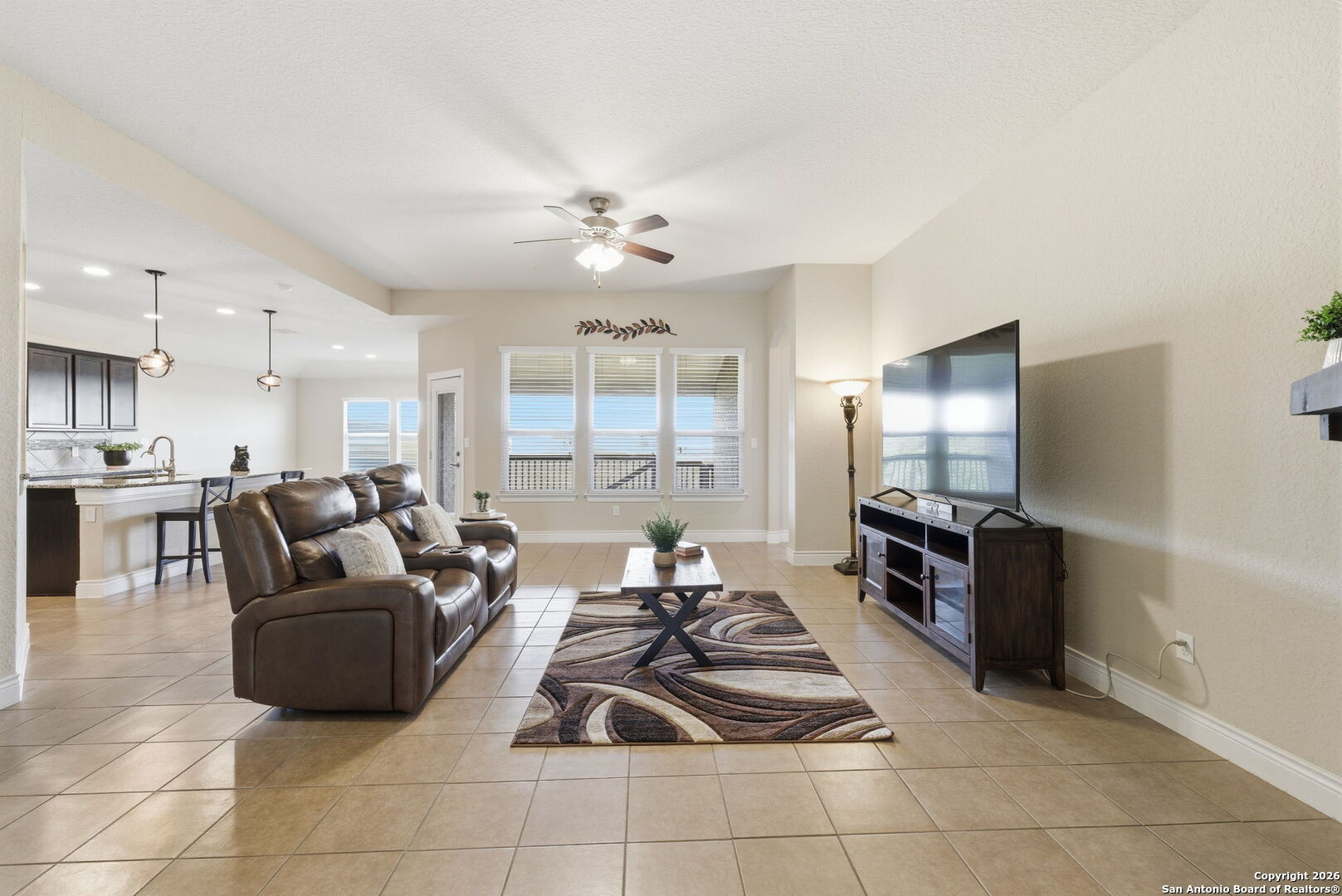 VIEWS, VIEWS, VIEWS! Welcome to 2830 Running Fawn, San Antonio, Texas, a splendid home that marries comfort and design in a seamless blend. Located within a beautiful gated community, this home stands out with its exquisite combination of brick and stone exterior, reflecting pride of ownership and an undeniable curb appeal that captures the eye. The rear covered patio offers elevated, long-range views that stretch for miles, ensuring the sun sets in front of the house and allowing for more enjoyable summer evenings outdoors in the backyard. Spanning 2,774 square feet with 3 bedrooms, 2 full baths, a dedicated private office that could easily be converted into a 4th bedroom, a large bonus room upstairs ideal for movies, a pool table, etc., the home offers an expansive living experience. The main floor unfolds into an open floor plan, spoiled with natural light from large windows, enhancing the spacious kitchen and dining area. Granite countertops, a large island, stainless appliances, and ample cabinets define the kitchen, making it a chef's delight. It opens effortlessly into the family room, where a stacked stone floor-to-ceiling gas fireplace stands as a focal point, adding a touch of warmth and elegance. An exceptional feature of this home is the large game room located upstairs, offering a versatile space for entertainment or relaxation. The primary bedroom offers amazing elevated views, a beautiful 5 piece bathroom with an over-sized walk-in shower, double vanity and a spacious walk-in shower. The two guest bedrooms are located away from the primary bedroom and share an immaculate full bathroom. Additionally, the a second built-in office/desk off the kitchen, strategically open to the family room, provides a perfect spot for managing household affairs or remote work. The exterior spaces of this home are equally impressive. The covered patio is the perfect place for evening dining, grilling or morning coffee. The large backyard, spanning over 1/4 acre, awaits your personal touch, be it installing a swimming pool or simply enjoying the excellent community amenities nearby, including a pool, dog park, and playground. Located within walking distance to Indian Springs Elementary and zoned for the highly desirable Pieper High School, this home not only promises a sanctuary for your family but also assures a community rich in amenities and conveniences. Minutes away from shopping, dining, and entertainment options, 2830 Running Fawn offers the ideal location with its' views and floor plan. With great schools, a 3-car tandem garage with epoxy flooring for your vehicles and storage needs, a dining area that boasts extended views, a water softener, a built-in drop zone off the garage and so much more, this home is a testament to both beauty and functional living. Come take a look at 2830 Running Fawn-you won't be disappointed!