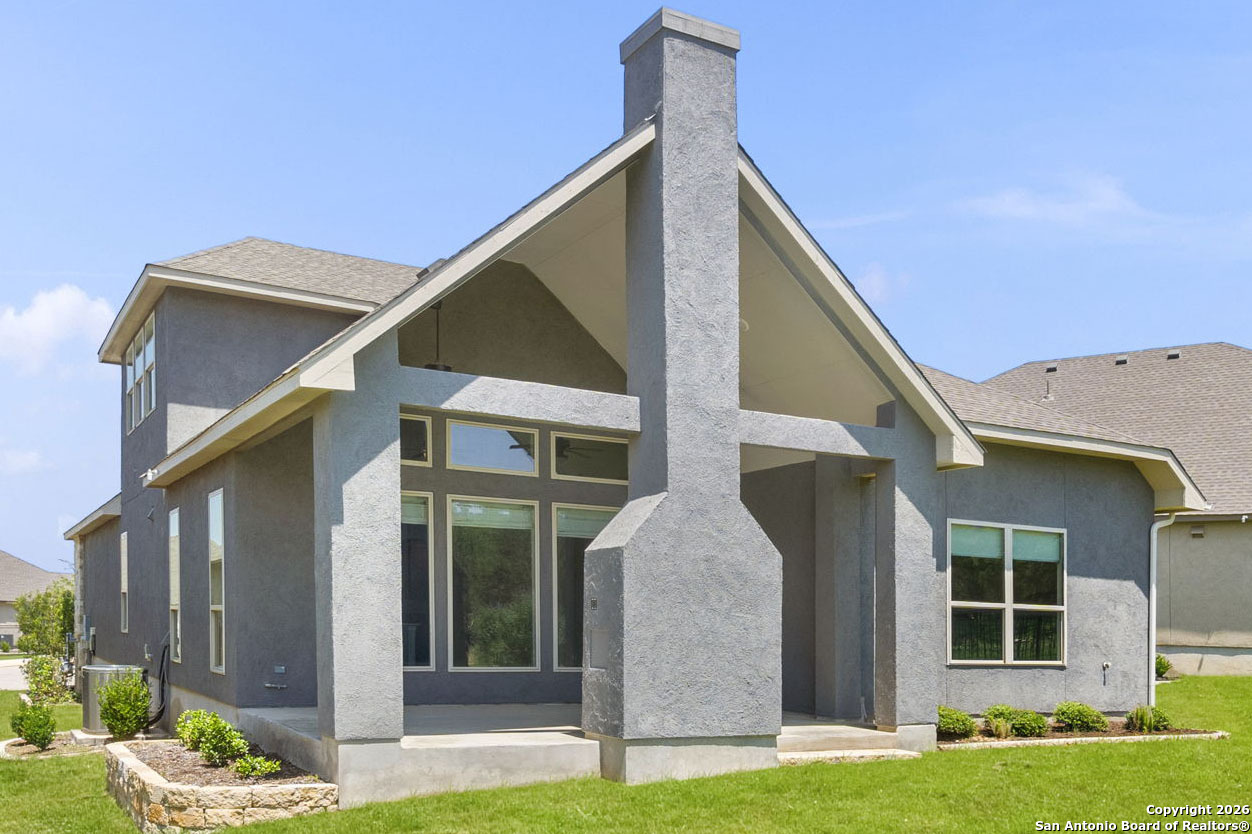 Welcome to this beautifully appointed 1.5-story home in the gated community of Willis Ranch. This 2,286 sq ft home features luxury touches throughout, custom interior window treatments, and an open-concept layout ideal for both daily living and entertaining. The Roma floor plan is coveted for its abundant natural light and soaring ceilings, and an upstairs bonus room with a full bath. Think game room, office, gym, hobby room, 4th bedroom - you decide. The spacious primary suite includes a spa-inspired ensuite bath, a walk-in shower with dual heads, and a generously sized closet for ample storage. A wrought iron fence encloses the backyard. The community provides a low-maintenance, high-comfort lifestyle, a resort-style pool, trails, and green spaces. Located within the highly rated Comal ISD and just minutes from the conveniences of Stone Oak, you'll find H-E-B Plus, restaurants, and shopping a short drive away. Nearby recreation includes Panther Springs Park, Bulverde Community Park, and the trails at Stone Oak Park. With quick access to Hwy 281 and Loop 1604, commuting is convenient while still enjoying the peaceful feel of the Texas Hill Country. This is luxury, privacy, and convenience all in one.