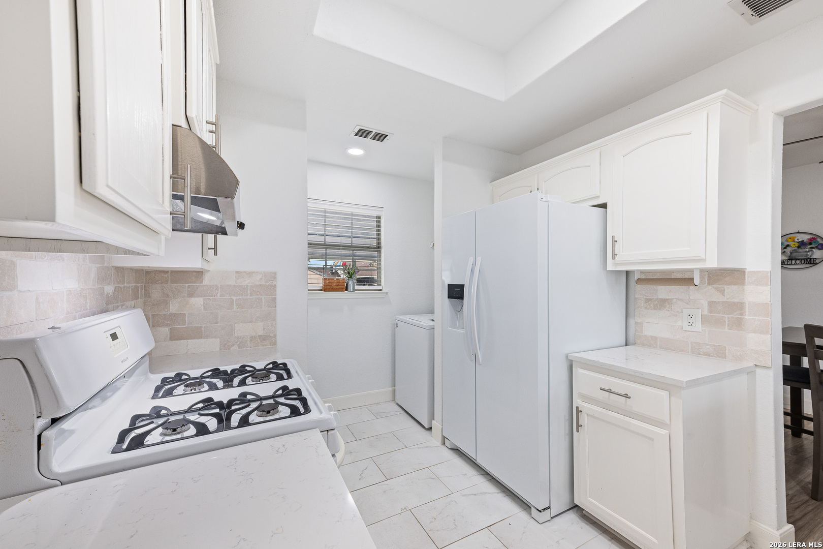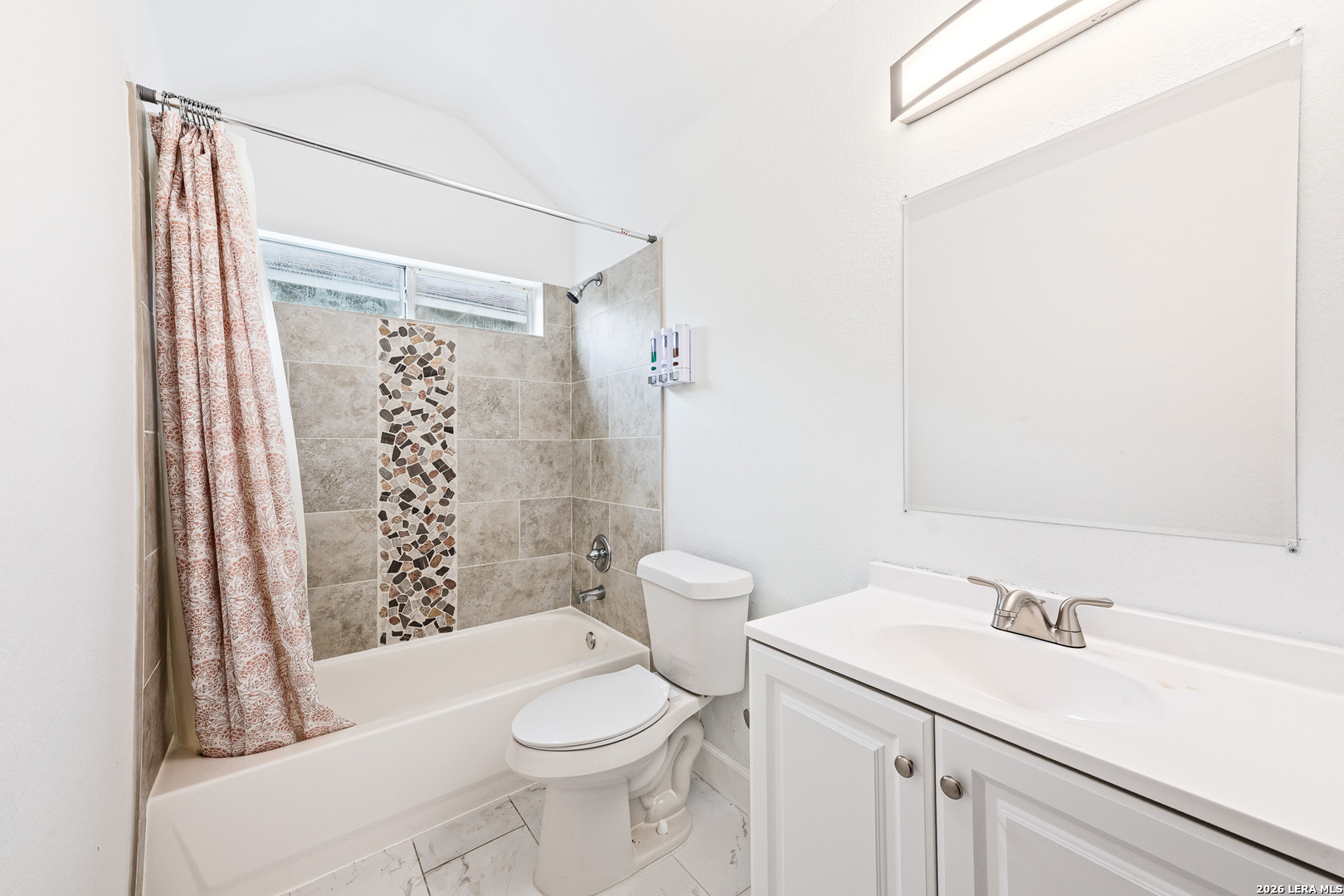 Charming renovated farm-style home with a 3-bed, 2-bath with high ceilings and open floor plan. Single-story, move-in ready, offering 1,246 sq ft on a large lot-ideal for primary living, rental, or Airbnb. Features tile and laminate flooring throughout, beautiful kitchen with a gas stove, breakfast bar, and a primary suite with walk-in closet. All appliances and furniture will remain including washer and dryer. Large fenced backyard with room for a pool or future additional dwelling unit. Covered front porch and back covered patio, 1-car garage, and recent AC unit. Quiet neighborhood minutes from downtown, the historical Pearl district, Frost Bank Center Arena, Freeman Coliseum, and St. Philip's College.