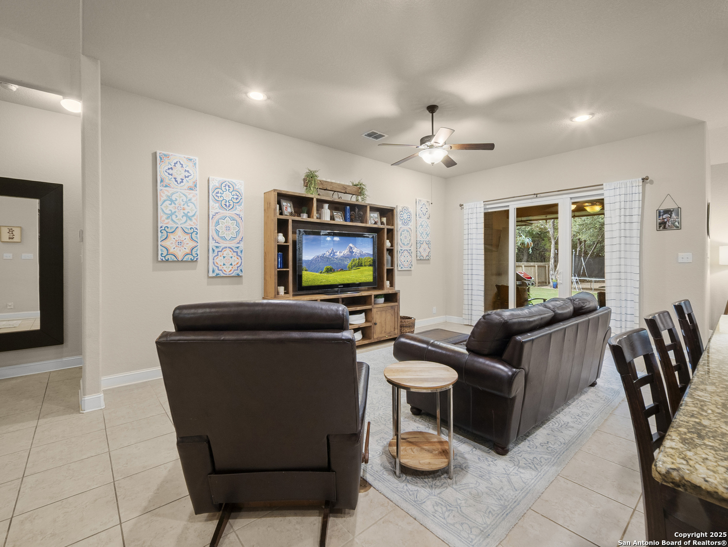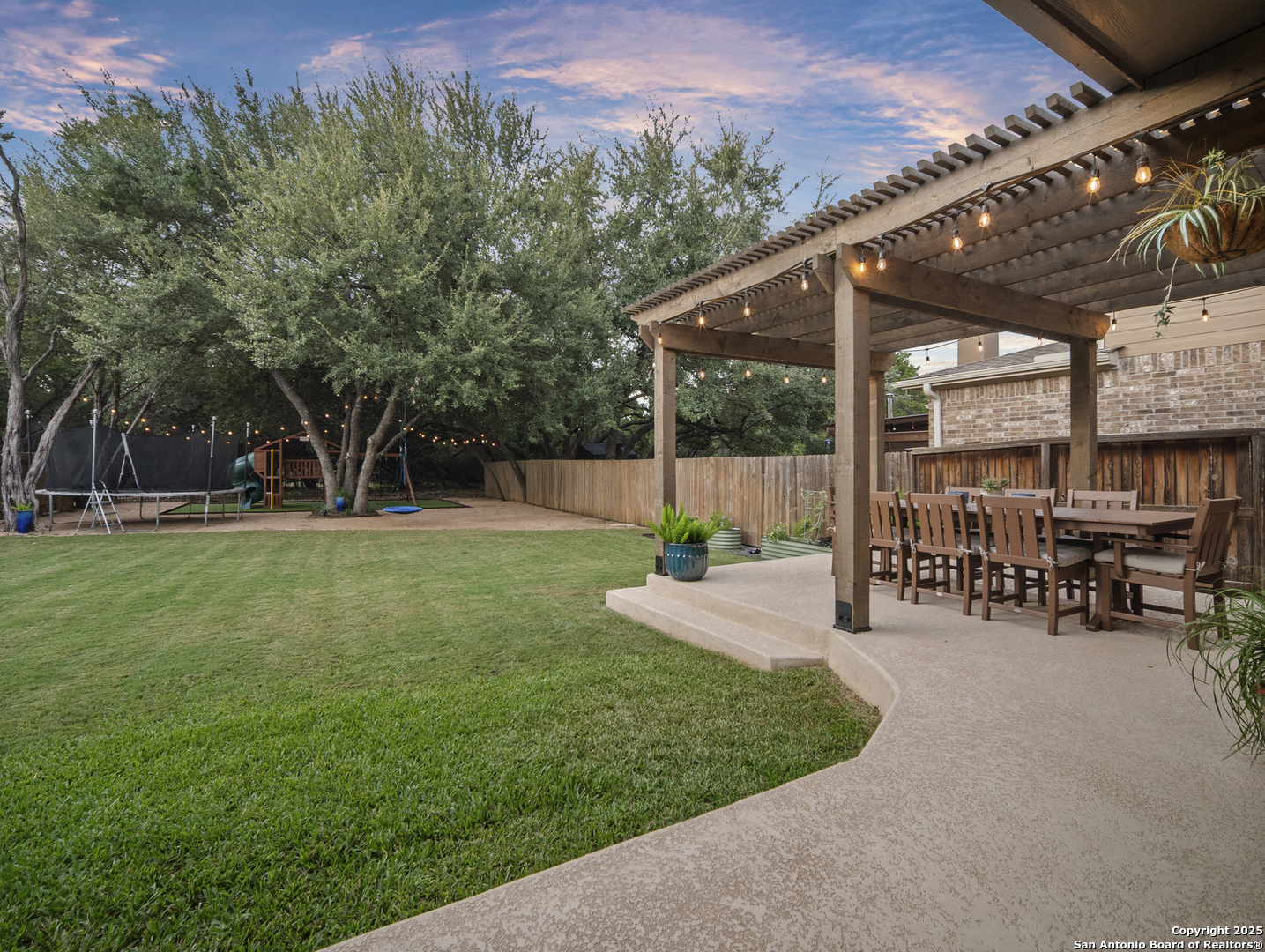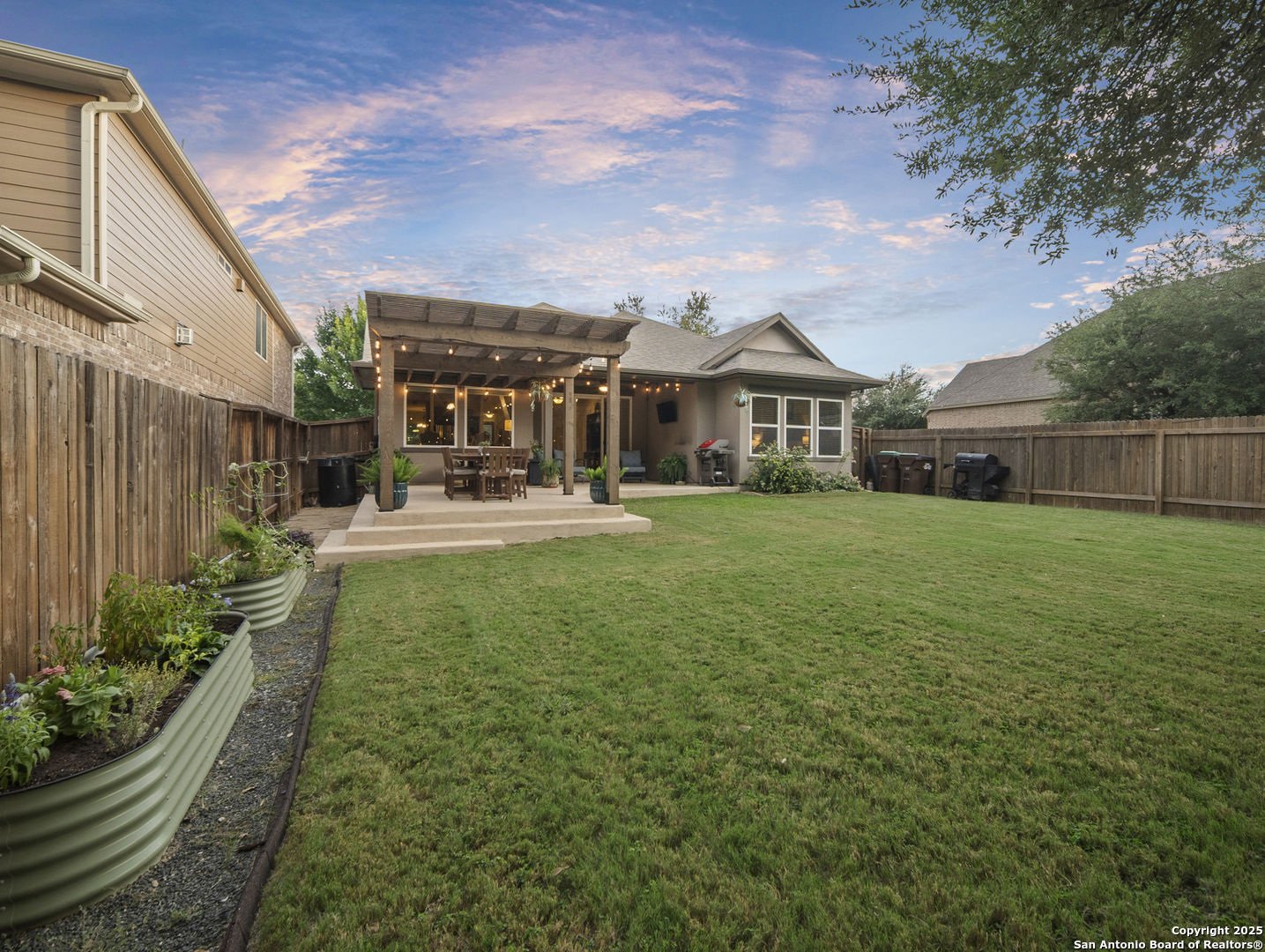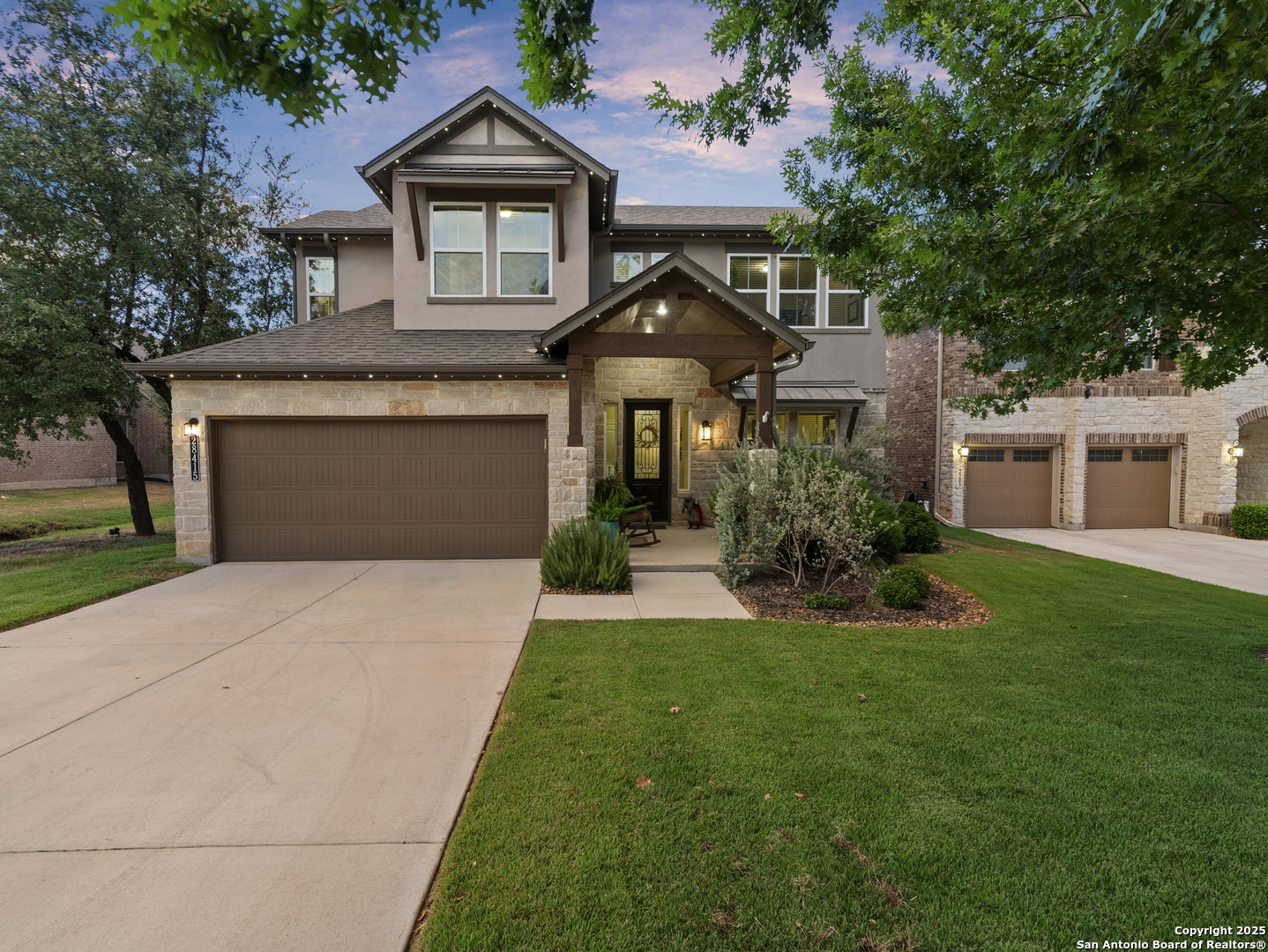 Tucked away on a quiet cul-de-sac street in the highly sought-after Willis Ranch community, this stunning 1.5-story home offers 3 bedrooms, 2.5 baths, and plenty of charm. Step inside to a welcoming entryway with a formal dining room that flows seamlessly into the kitchen. The chef's kitchen features rich cabinetry, granite countertops, and a large breakfast bar with seating for four-perfect for entertaining. A cozy breakfast nook and open living room complete the heart of the home. The spacious primary suite is located downstairs and boasts a spa-like bath with double vanities and a walk-in shower. The oversized master closet connects directly to the laundry room and mudroom, complete with custom built-in storage for convenience. Upstairs, you'll find a versatile game room, two additional bedrooms, and a full bath-ideal for family or guests. The backyard is a true retreat! With mature oaks providing shade throughout the yard and a peaceful greenbelt backdrop, this outdoor space can be enjoyed any time of day. A covered patio, recently added pergola, and wrought iron fence create the perfect setting for entertaining while taking in views of nature and wildlife. Thoughtful accent lighting and immaculate landscaping add to the home's curb appeal and charm. Willis Ranch offers a neighborhood walking trail, pool, and playground-and families will love that this property is zoned to the highly desired Comal ISD schools. Don't miss your chance to own this beautiful home in a peaceful setting with modern amenities and timeless style!