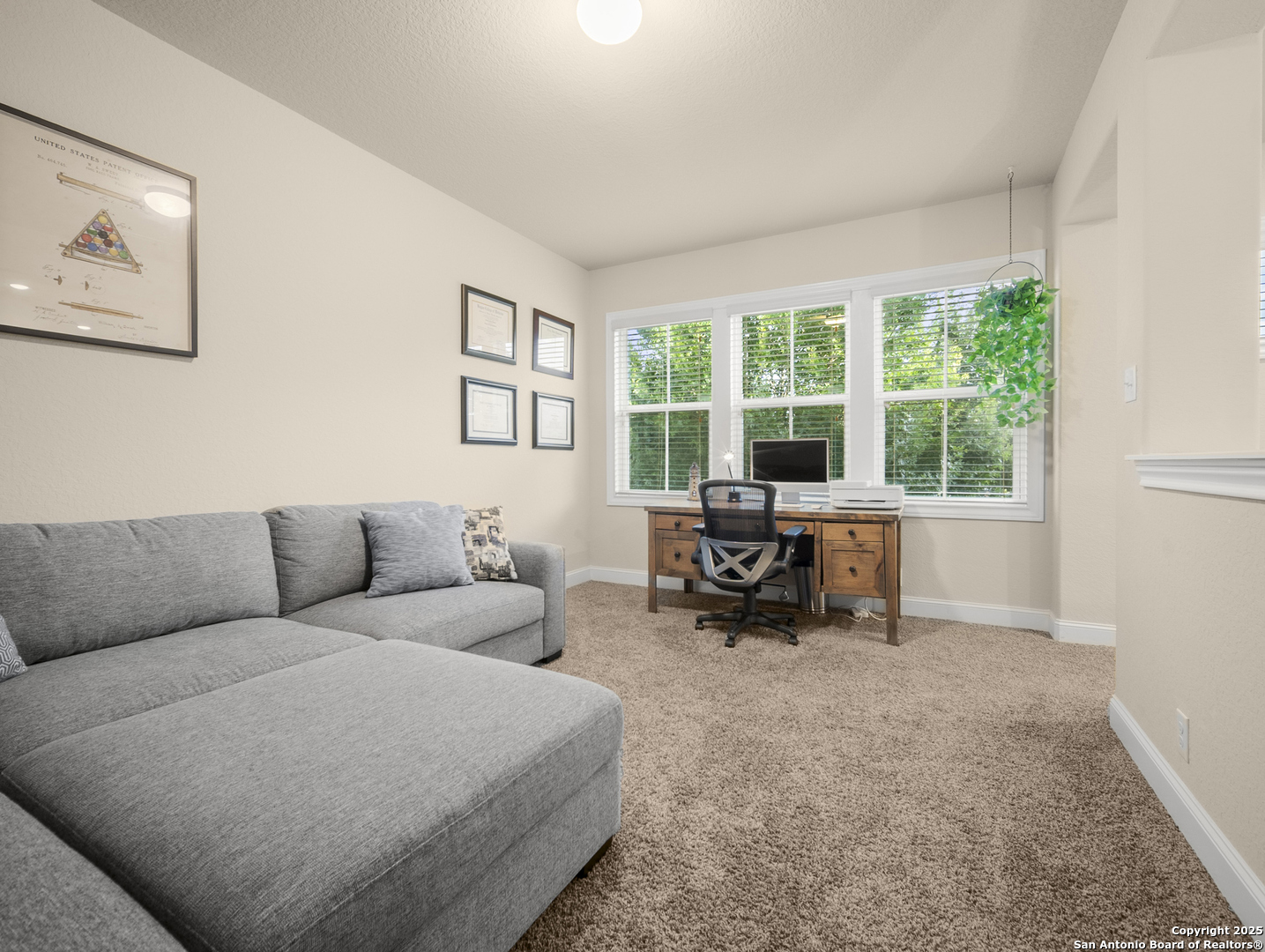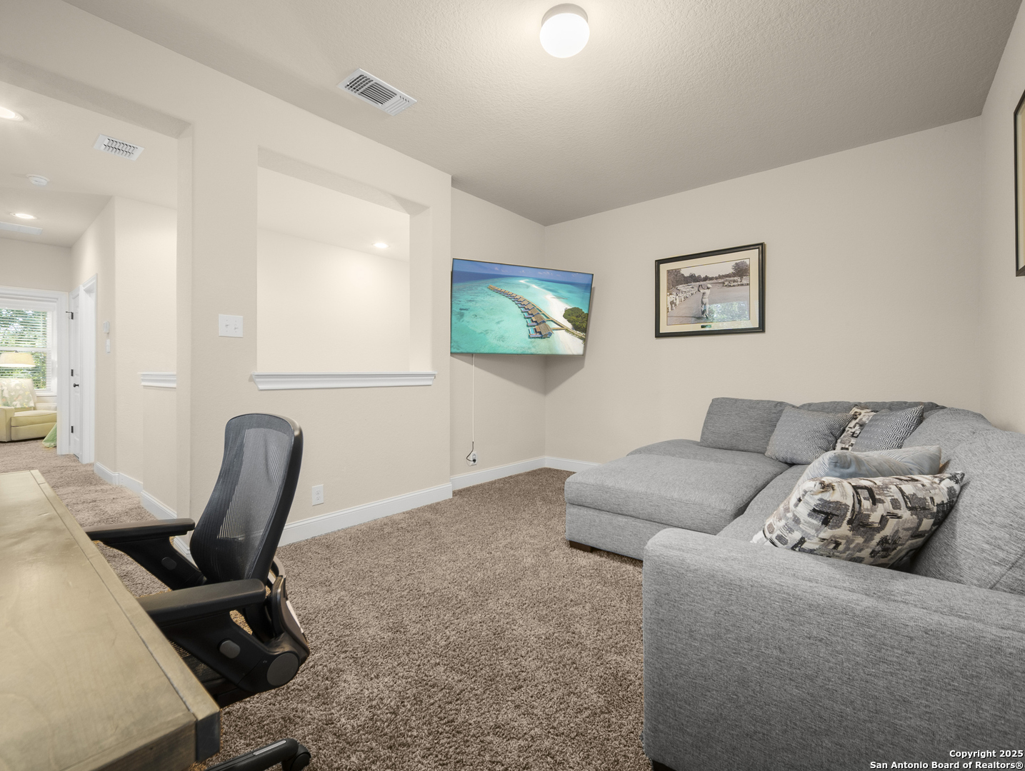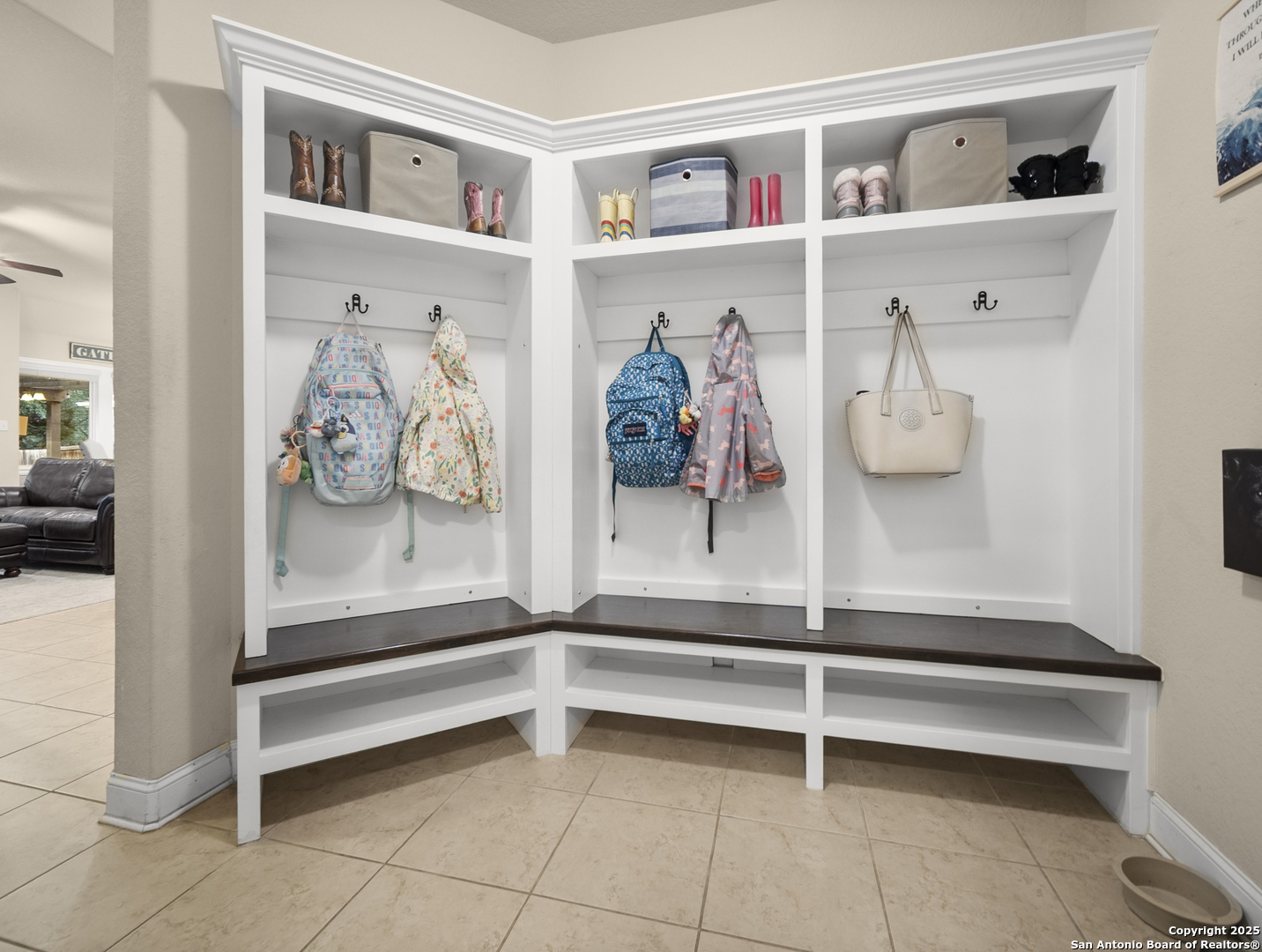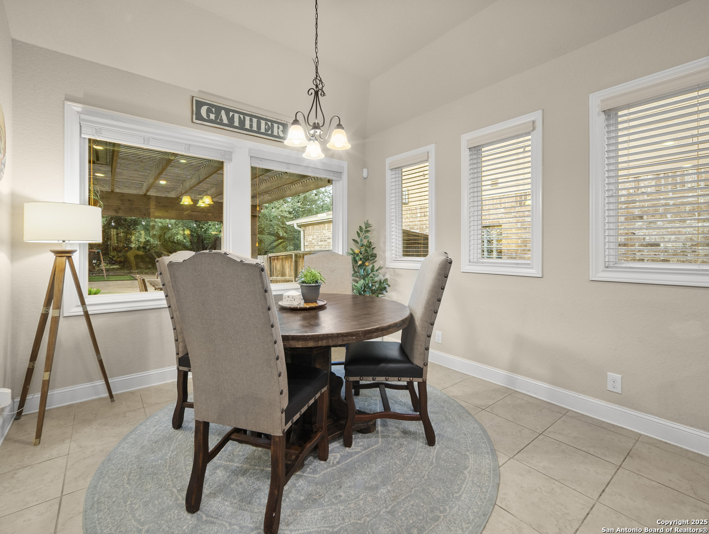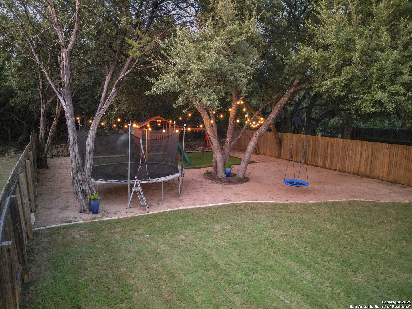 Tucked away on a quiet cul-de-sac street in the highly sought-after Willis Ranch community, this stunning 1.5-story home offers 3 bedrooms, 2.5 baths, and plenty of charm. Step inside to a welcoming entryway with a formal dining room that flows seamlessly into the kitchen. The chef's kitchen features rich cabinetry, granite countertops, and a large breakfast bar with seating for four-perfect for entertaining. A cozy breakfast nook and open living room complete the heart of the home. The spacious primary suite is located downstairs and boasts a spa-like bath with double vanities and a walk-in shower. The oversized master closet connects directly to the laundry room and mudroom, complete with custom built-in storage for convenience. Upstairs, you'll find a versatile game room, two additional bedrooms, and a full bath-ideal for family or guests. The backyard is a true retreat! With mature oaks providing shade throughout the yard and a peaceful greenbelt backdrop, this outdoor space can be enjoyed any time of day. A covered patio, recently added pergola, and wrought iron fence create the perfect setting for entertaining while taking in views of nature and wildlife. Thoughtful accent lighting and immaculate landscaping add to the home's curb appeal and charm. Willis Ranch offers a neighborhood walking trail, pool, and playground-and families will love that this property is zoned to the highly desired Comal ISD schools. Don't miss your chance to own this beautiful home in a peaceful setting with modern amenities and timeless style!