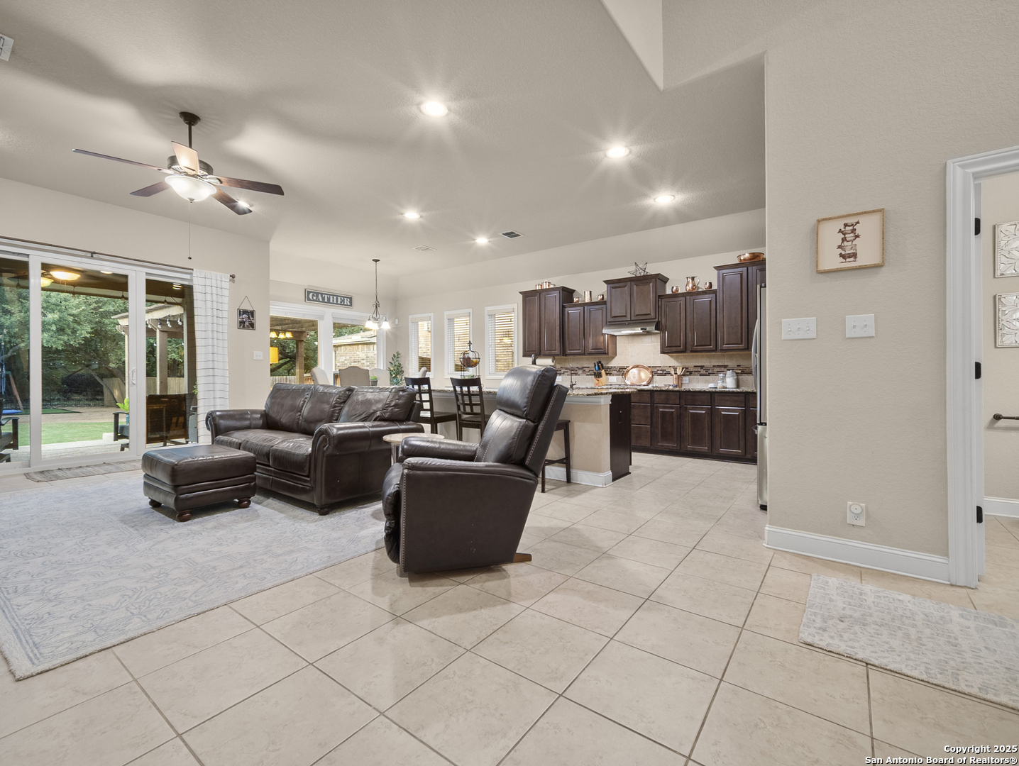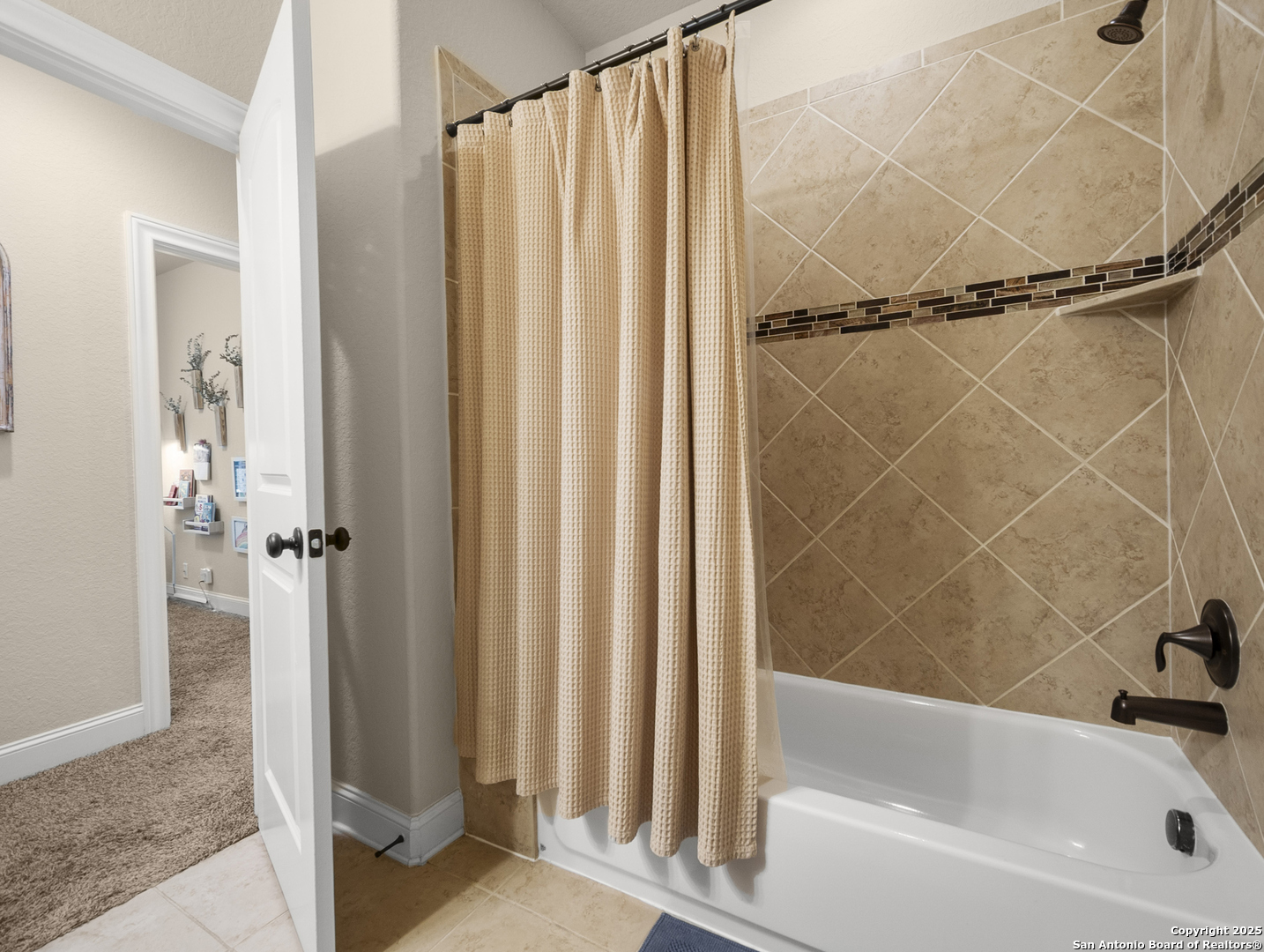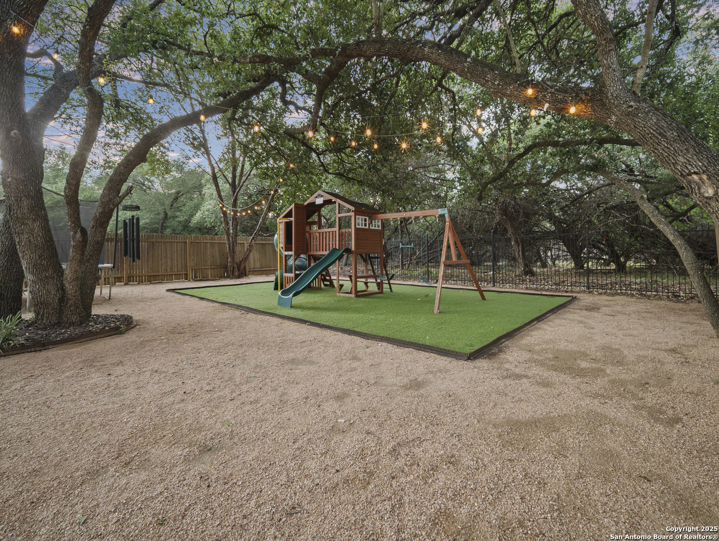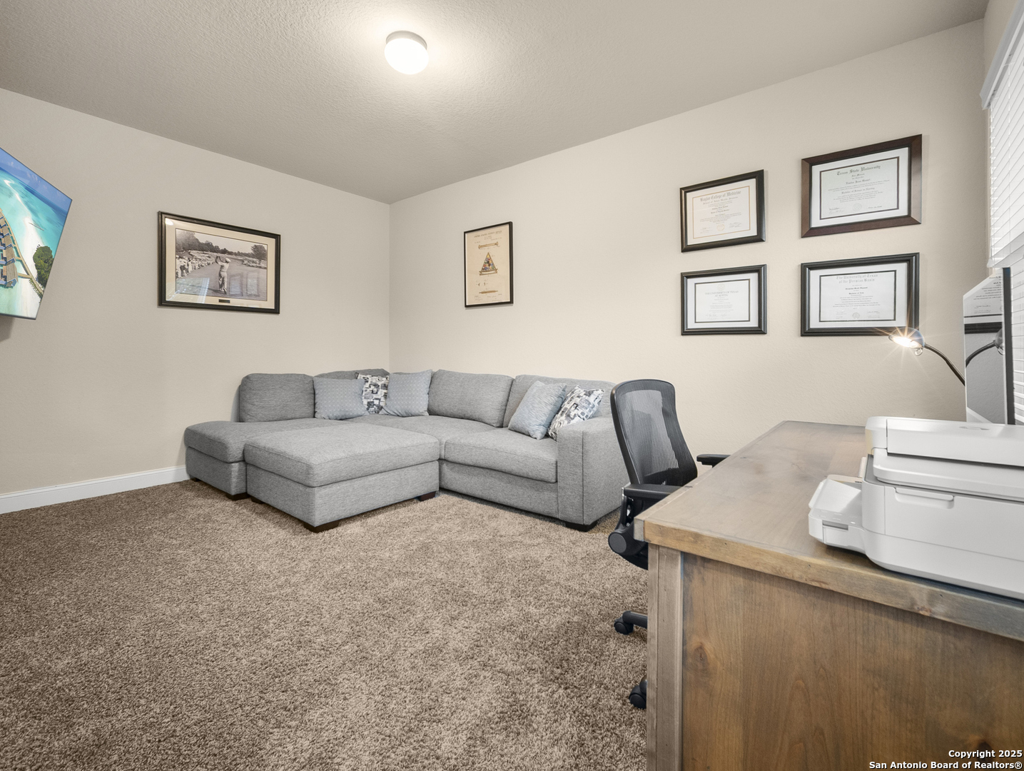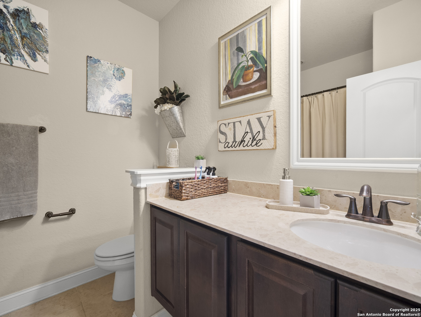 Tucked away on a quiet cul-de-sac street in the highly sought-after Willis Ranch community, this stunning 1.5-story home offers 3 bedrooms, 2.5 baths, and plenty of charm. Step inside to a welcoming entryway with a formal dining room that flows seamlessly into the kitchen. The chef's kitchen features rich cabinetry, granite countertops, and a large breakfast bar with seating for four-perfect for entertaining. A cozy breakfast nook and open living room complete the heart of the home. The spacious primary suite is located downstairs and boasts a spa-like bath with double vanities and a walk-in shower. The oversized master closet connects directly to the laundry room and mudroom, complete with custom built-in storage for convenience. Upstairs, you'll find a versatile game room, two additional bedrooms, and a full bath-ideal for family or guests. The backyard is a true retreat! With mature oaks providing shade throughout the yard and a peaceful greenbelt backdrop, this outdoor space can be enjoyed any time of day. A covered patio, recently added pergola, and wrought iron fence create the perfect setting for entertaining while taking in views of nature and wildlife. Thoughtful accent lighting and immaculate landscaping add to the home's curb appeal and charm. Willis Ranch offers a neighborhood walking trail, pool, and playground-and families will love that this property is zoned to the highly desired Comal ISD schools. Don't miss your chance to own this beautiful home in a peaceful setting with modern amenities and timeless style!