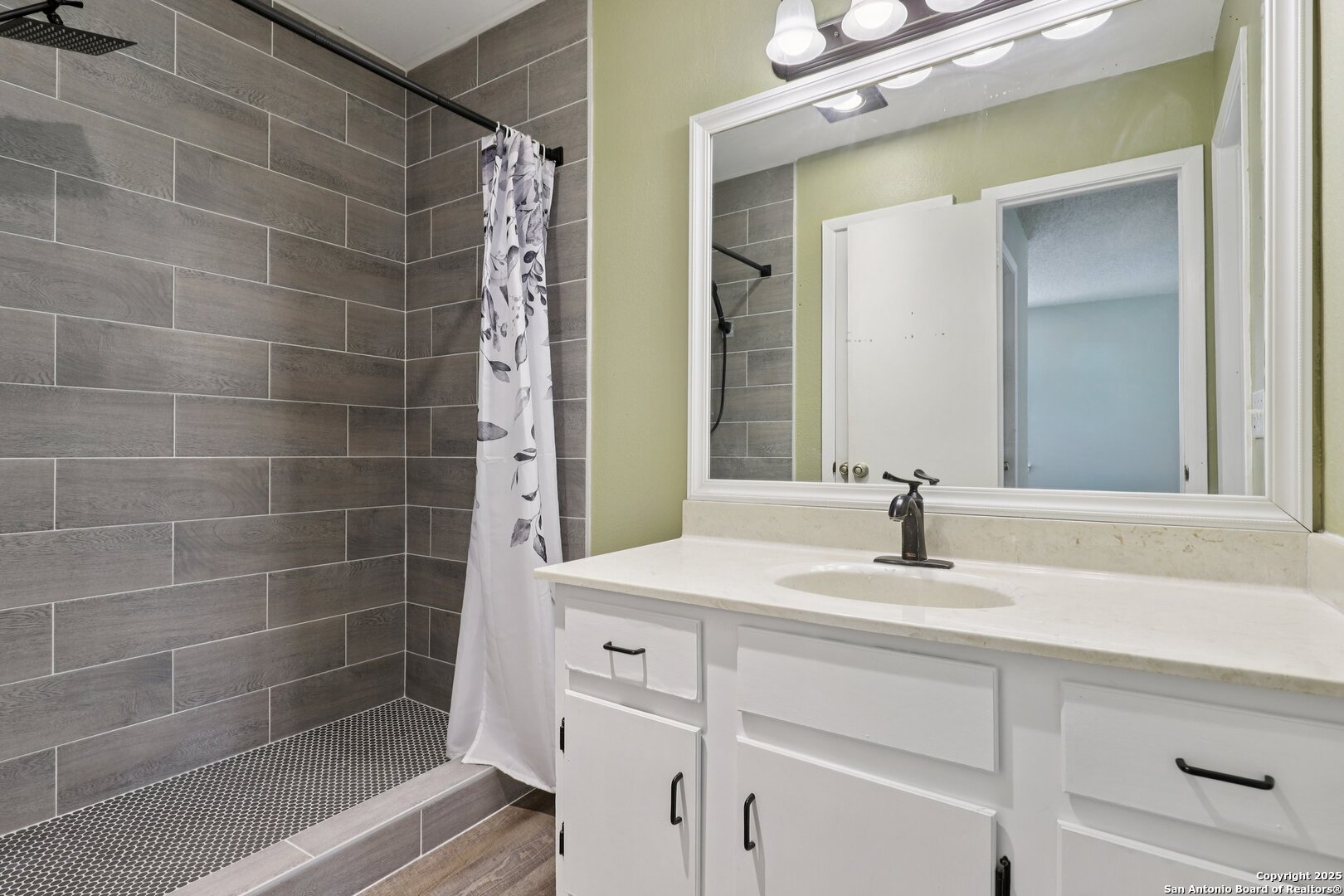 Sweat Equity opportunity!!! Paint, carpet and fencing will make this home dazzle. Prime location and value. Bright living room room setup overlooking your big yard! Pull up a barstool to the granite kitchen counters and admire the practicality and Open floorplan. Primary bedroom downstairs featuring a sitting area amongst the corner windows. Upstairs you will find two bedrooms PLUS a special closet/room that you can tailor to a Book Nook, Office, Craft Corner, Storage Zone, or Playroom! What would you use it for? NEISD schools if that is important to you! Commute time of 5 minutes or less to Wurzbach Parkway, HEB, McAllister Park and retail. This home gives you a convenient lifestyle and opportunity to make this house your home.