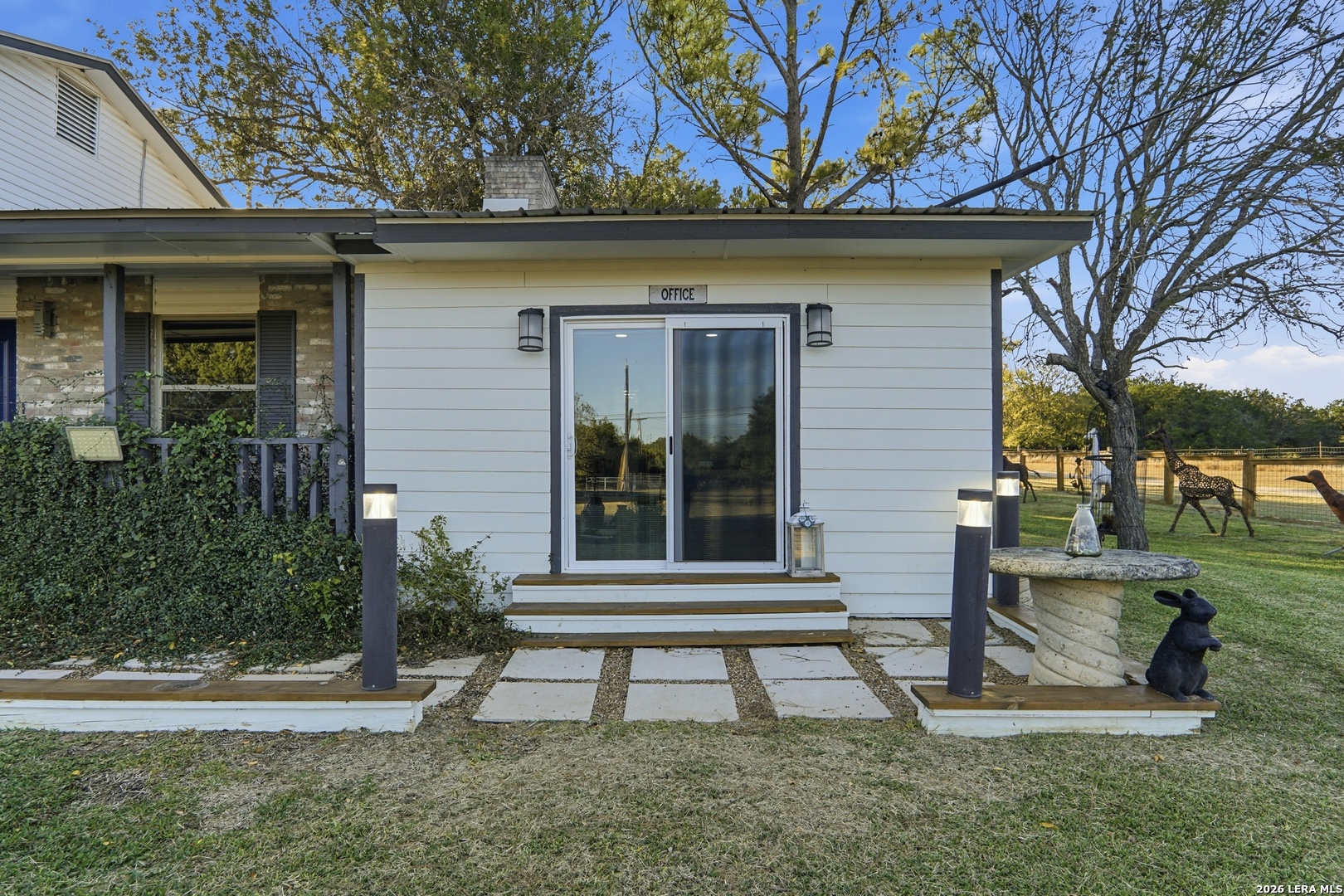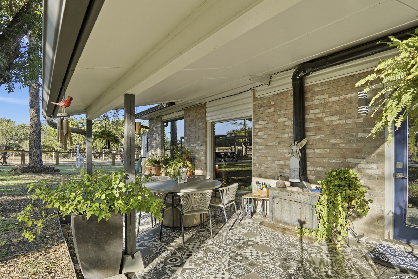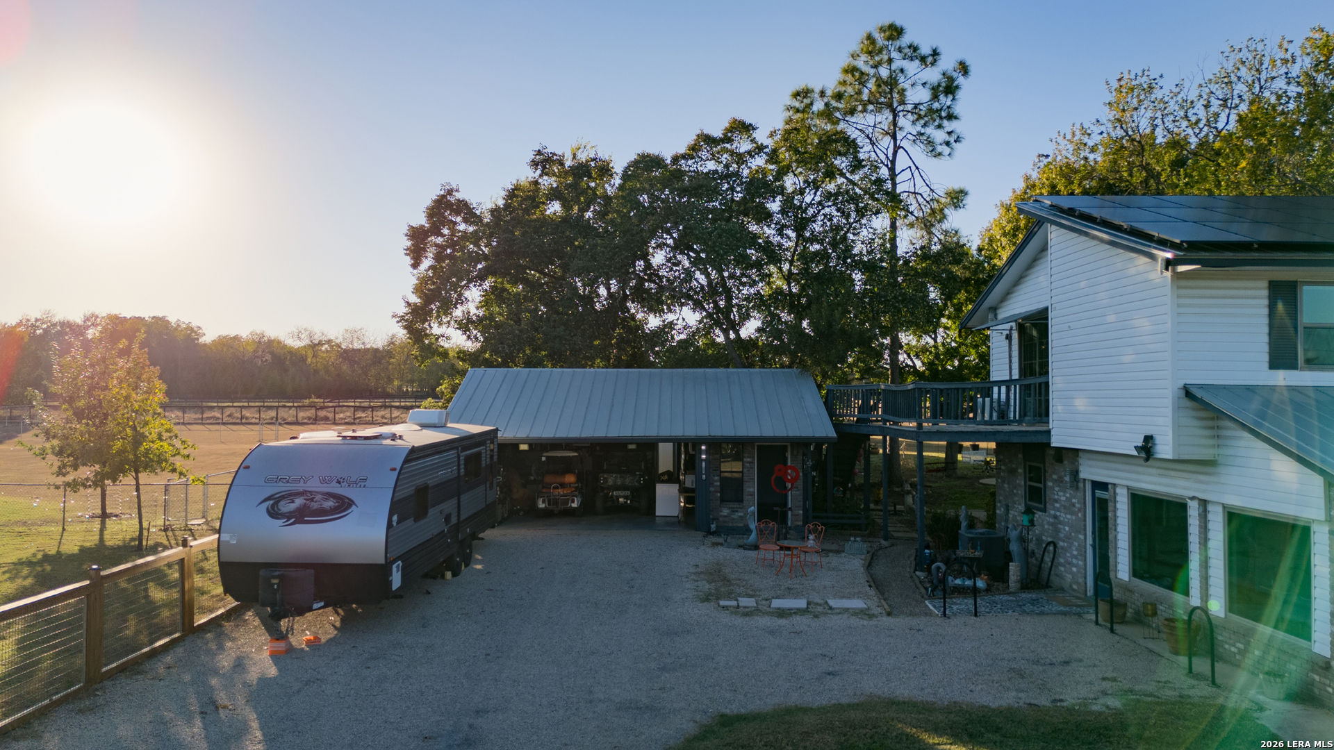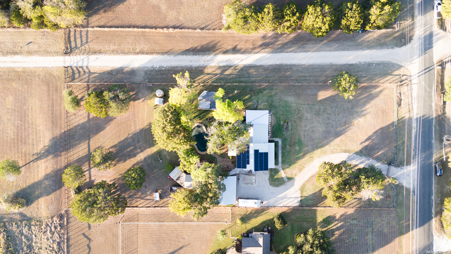 Experience country living in Windwood Estates with no HOA, just minutes from downtown Boerne, offering exquisite living near restaurants, retail, and shopping centers.! This one-of-a-kind home is situated on 1.1 acres along a peaceful road, providing exceptional privacy with its backdrop of 26 acres from an equine center. Quick access to I-10 leading to Bulverde, Spring Branch, Canyon Lake and San Antonio are less than a 20min commute. Surrounded by majestic oak and pine trees, this residence combines comfort and modern convenience within the highly sought-after Boerne ISD. Come on in and enjoy a bright, open multi-level floor plan, bathed in natural light. It effortlessly connects to the dining area, featuring custom cabinets, granite countertops, a sleek backsplash, and high-end stainless-steel appliances. This home boasts a newer HVAC system, fresh designer paint throughout, new tiled floors, Andersen double-pane windows, recessed(dimmable) lighting, solar panels, and a water well. The bathrooms and kitchen have been remodeled to reflect today's styles. A downstairs bright and versatile living area that provides the perfect space for a media room, home office, gym etc. Outside, enjoy a sparkling pool and spa surrounded by a fully fenced backyard-ideal for entertaining or unwinding in total serenity. An extended driveway with ample parking perfect for RV, boat storage or just extra parking space complete this picture-perfect property. Adjoining this house there is a separate unit in the front of the house with its own private, exterior entry including a bathroom that is currently being used as an office. However, it can be whatever your heart desires... it can be used for working at home, gym, man cave, mother-in-law suite or any other use that requires privacy. Additional outdoor features include pool storage, workshop, storages, 27x21 Pergola area, 2 outdoor 4x6 bathrooms, covered extended patio, additional dwelling perfect for gym, office space, etc. This property offers significant savings, starting with the elimination of utility bills, thanks to a 2,500-gallon water well and solar panels.