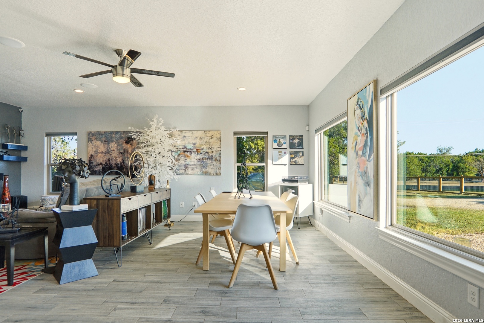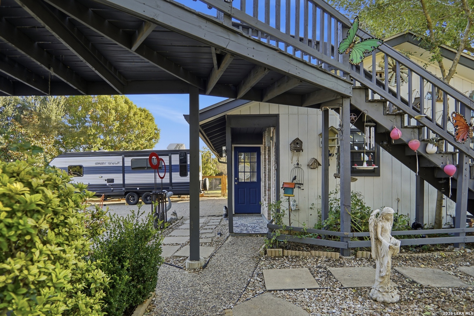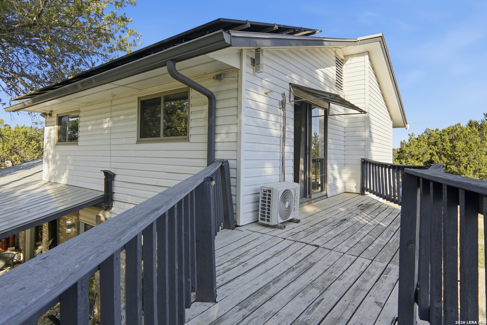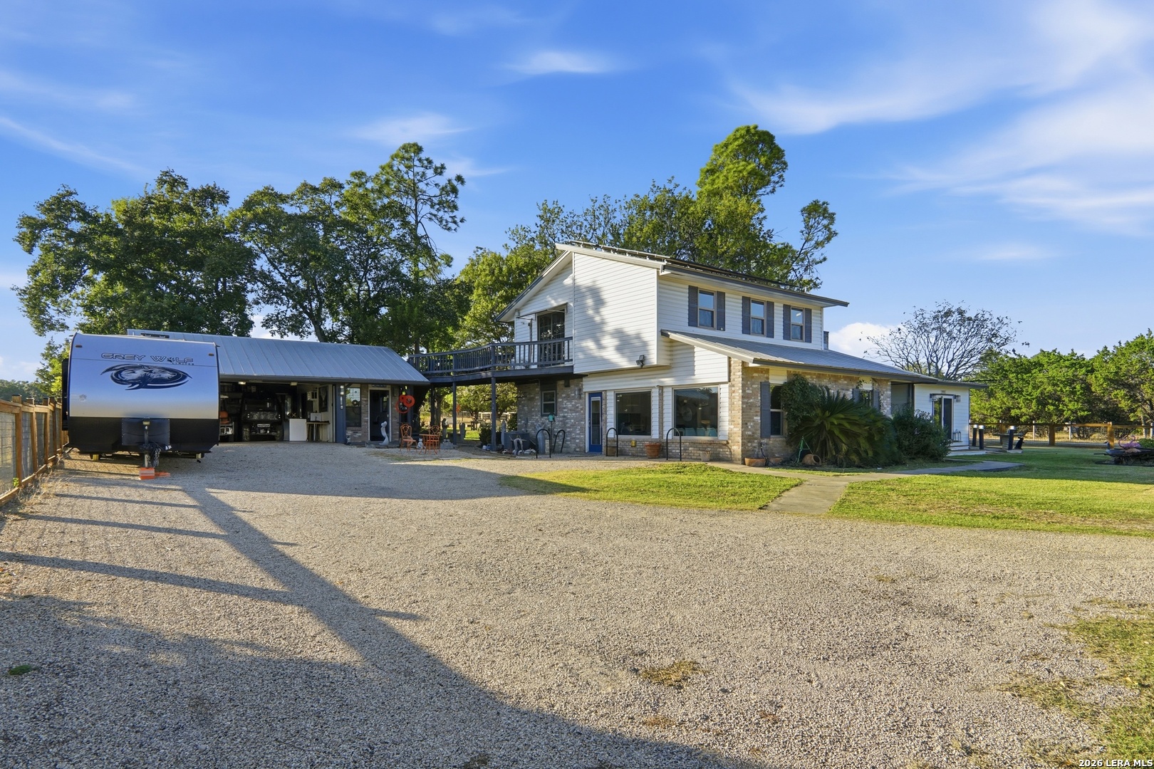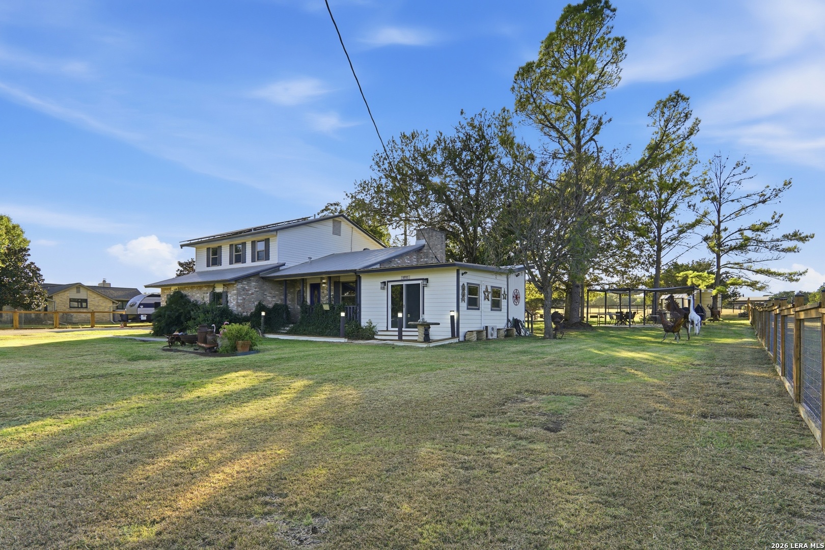 Experience country living in Windwood Estates with no HOA, just minutes from downtown Boerne, offering exquisite living near restaurants, retail, and shopping centers.! This one-of-a-kind home is situated on 1.1 acres along a peaceful road, providing exceptional privacy with its backdrop of 26 acres from an equine center. Quick access to I-10 leading to Bulverde, Spring Branch, Canyon Lake and San Antonio are less than a 20min commute. Surrounded by majestic oak and pine trees, this residence combines comfort and modern convenience within the highly sought-after Boerne ISD. Come on in and enjoy a bright, open multi-level floor plan, bathed in natural light. It effortlessly connects to the dining area, featuring custom cabinets, granite countertops, a sleek backsplash, and high-end stainless-steel appliances. This home boasts a newer HVAC system, fresh designer paint throughout, new tiled floors, Andersen double-pane windows, recessed(dimmable) lighting, solar panels, and a water well. The bathrooms and kitchen have been remodeled to reflect today's styles. A downstairs bright and versatile living area that provides the perfect space for a media room, home office, gym etc. Outside, enjoy a sparkling pool and spa surrounded by a fully fenced backyard-ideal for entertaining or unwinding in total serenity. An extended driveway with ample parking perfect for RV, boat storage or just extra parking space complete this picture-perfect property. Adjoining this house there is a separate unit in the front of the house with its own private, exterior entry including a bathroom that is currently being used as an office. However, it can be whatever your heart desires... it can be used for working at home, gym, man cave, mother-in-law suite or any other use that requires privacy. Additional outdoor features include pool storage, workshop, storages, 27x21 Pergola area, 2 outdoor 4x6 bathrooms, covered extended patio, additional dwelling perfect for gym, office space, etc. This property offers significant savings, starting with the elimination of utility bills, thanks to a 2,500-gallon water well and solar panels.