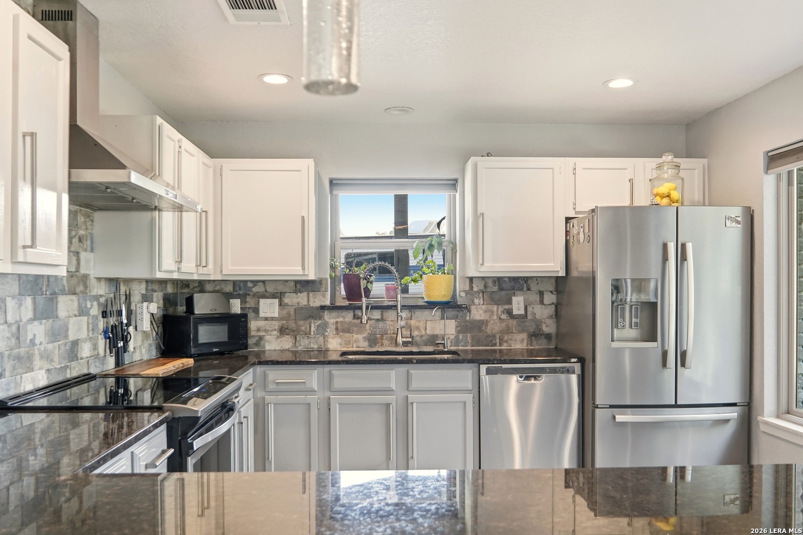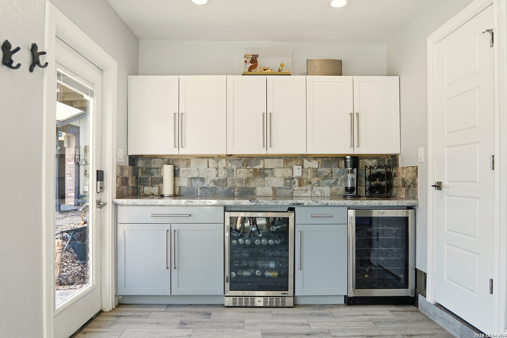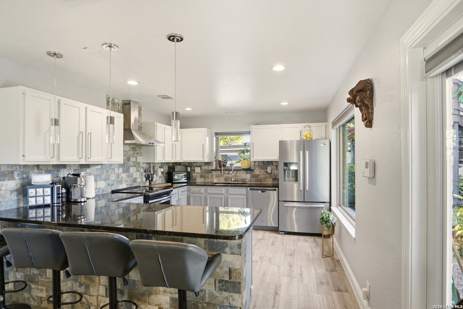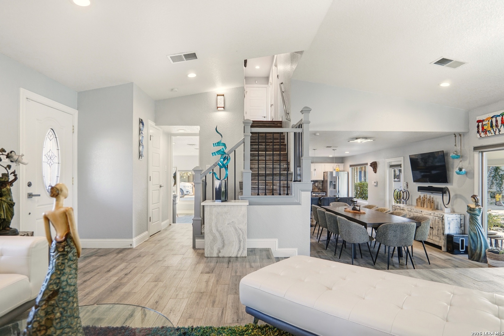 Experience country living in Windwood Estates with no HOA, just minutes from downtown Boerne, offering exquisite living near restaurants, retail, and shopping centers.! This one-of-a-kind home is situated on 1.1 acres along a peaceful road, providing exceptional privacy with its backdrop of 26 acres from an equine center. Quick access to I-10 leading to Bulverde, Spring Branch, Canyon Lake and San Antonio are less than a 20min commute. Surrounded by majestic oak and pine trees, this residence combines comfort and modern convenience within the highly sought-after Boerne ISD. Come on in and enjoy a bright, open multi-level floor plan, bathed in natural light. It effortlessly connects to the dining area, featuring custom cabinets, granite countertops, a sleek backsplash, and high-end stainless-steel appliances. This home boasts a newer HVAC system, fresh designer paint throughout, new tiled floors, Andersen double-pane windows, recessed(dimmable) lighting, solar panels, and a water well. The bathrooms and kitchen have been remodeled to reflect today's styles. A downstairs bright and versatile living area that provides the perfect space for a media room, home office, gym etc. Outside, enjoy a sparkling pool and spa surrounded by a fully fenced backyard-ideal for entertaining or unwinding in total serenity. An extended driveway with ample parking perfect for RV, boat storage or just extra parking space complete this picture-perfect property. Adjoining this house there is a separate unit in the front of the house with its own private, exterior entry including a bathroom that is currently being used as an office. However, it can be whatever your heart desires... it can be used for working at home, gym, man cave, mother-in-law suite or any other use that requires privacy. Additional outdoor features include pool storage, workshop, storages, 27x21 Pergola area, 2 outdoor 4x6 bathrooms, covered extended patio, additional dwelling perfect for gym, office space, etc. This property offers significant savings, starting with the elimination of utility bills, thanks to a 2,500-gallon water well and solar panels.