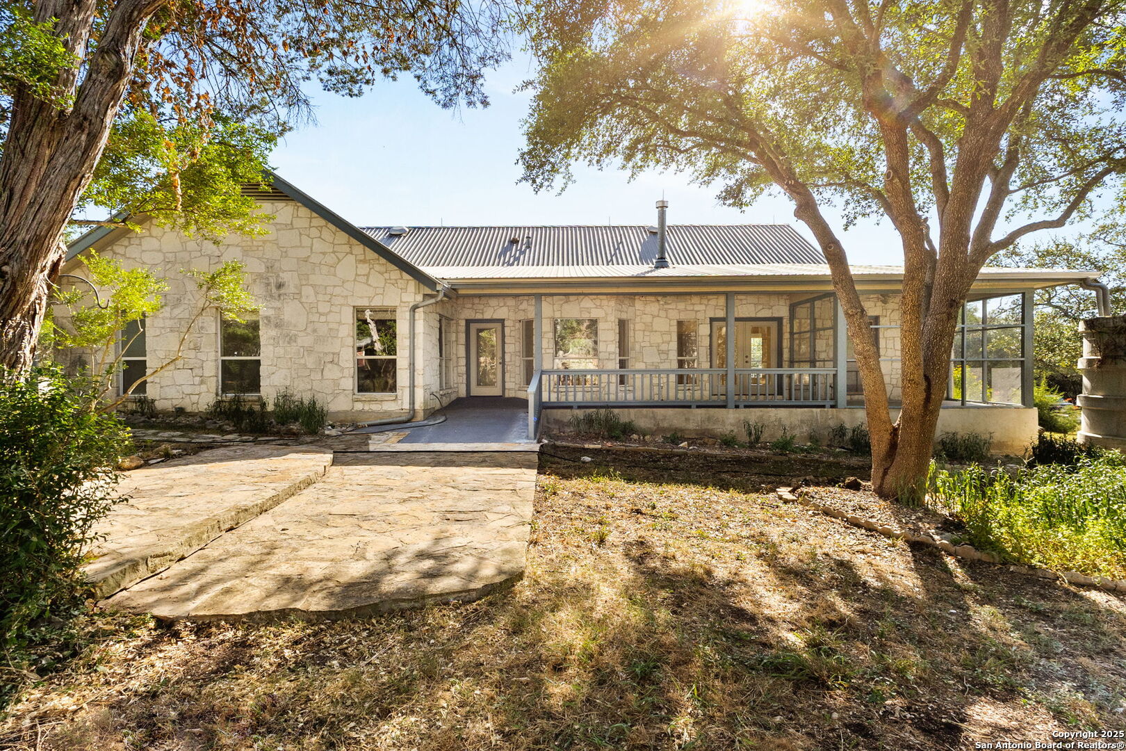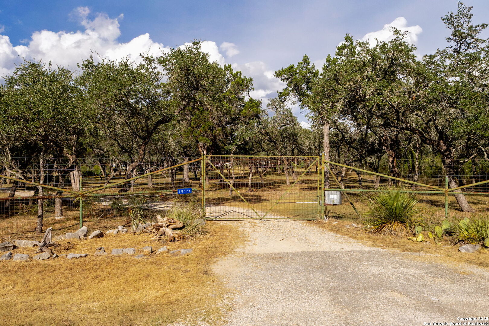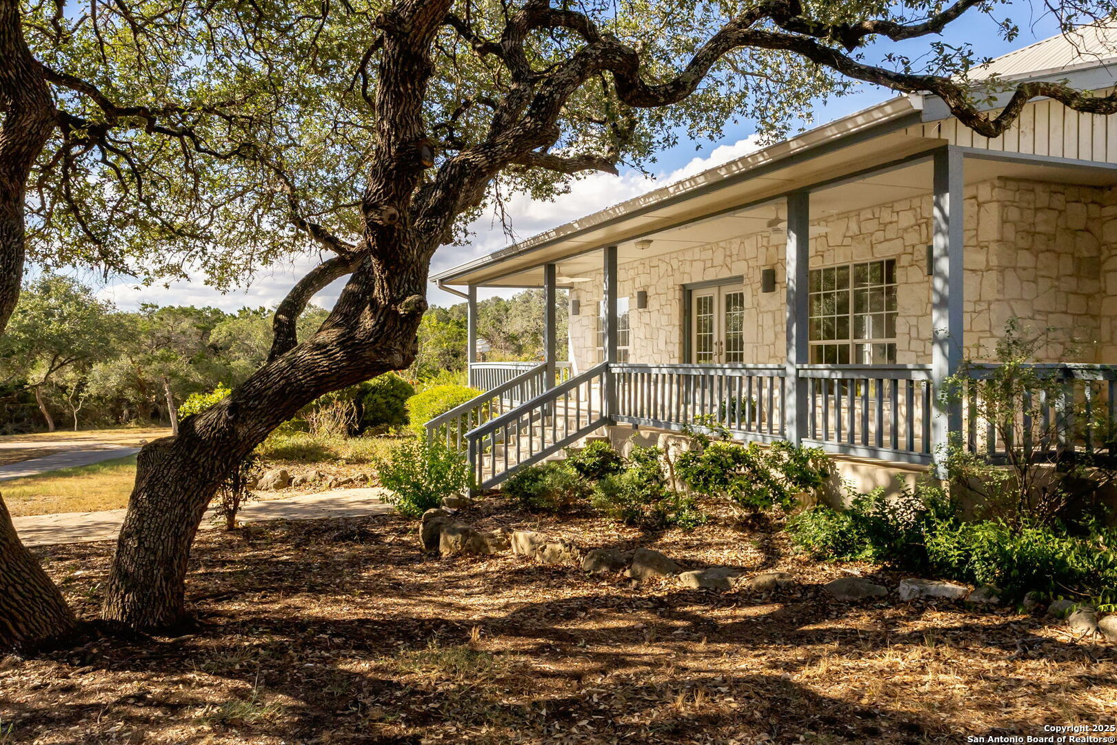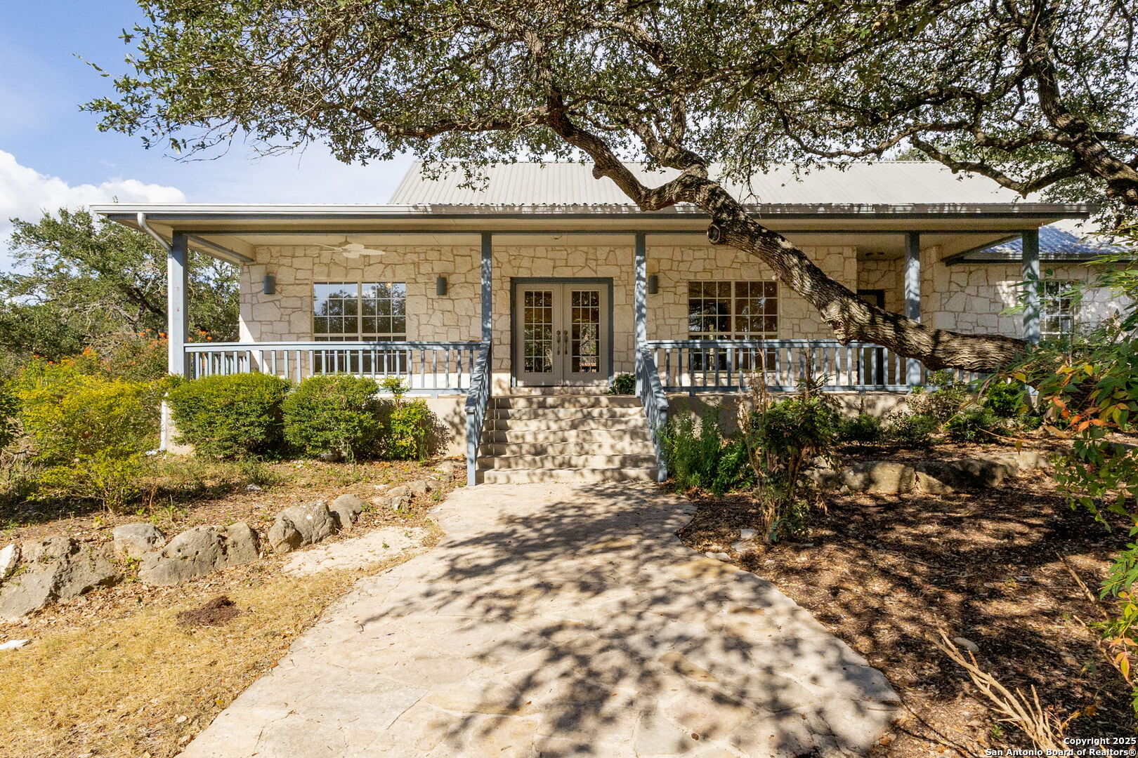 Five acres of Texas Hill Country freedom!! A private gated oasis just minutes from downtown New Braunfels and 20 minutes to San Antonio. This custom limestone home blends country serenity with urban convenience. Highlights include an expansive front and back porch for sipping ice tea and watching the tranquility of nature. The open-concept kitchen with a sunny breakfast nook opens to the family room with abundant natural light. The primary suite offers built-in cabinetry, a double vanity, a shower, and a large walk-in closet. Additional bedrooms (one with a picture window) and a flexible third room POTENTIAL (currently a nature-view screened alcove with ducting in place) provide versatile living space. A large laundry, mud room and 4 car garage complete the home. Outbuildings include a completed barn with two stalls for horses or livestock of your choice, a greenhouse, and large storage shed could easily be the man cave or she shed. Several raised bed garden spots ready for planting complete with water reclamation tanks. The circular drive offers easy access and ample parking for entertaining or extra toys. Don't miss the opportunity to own this country homestead/retreat with city proximity. Your best road home starts here-return daily to the tranquil oasis that is FIVE ACRES OF TEXAS.