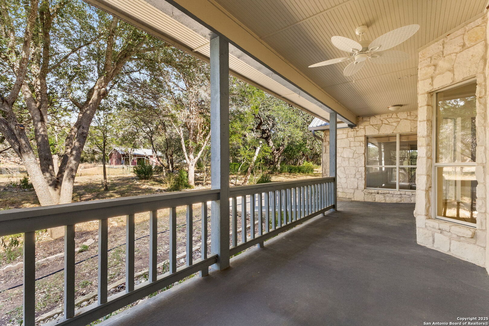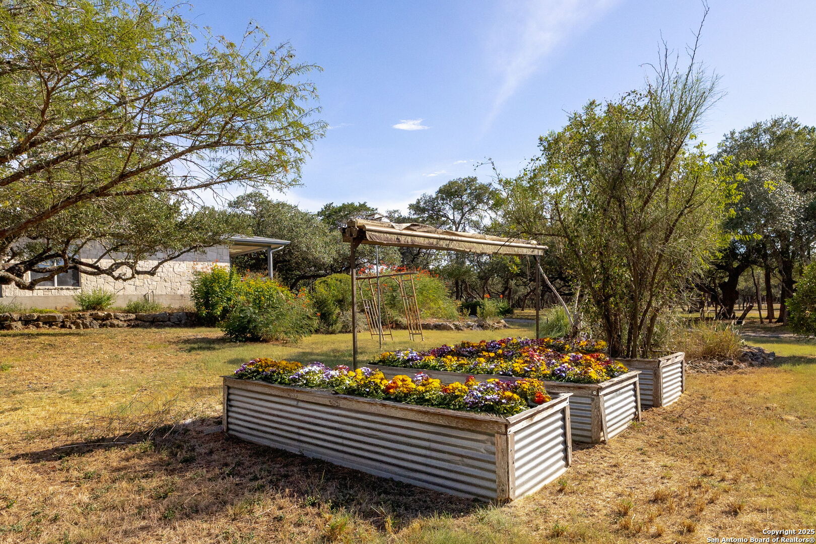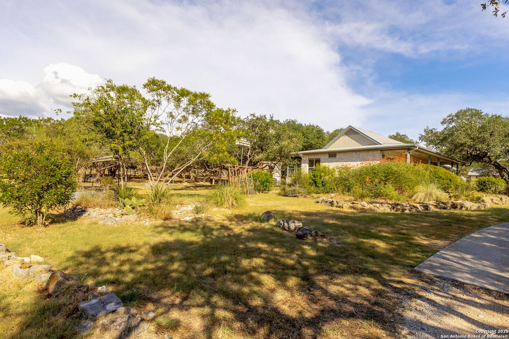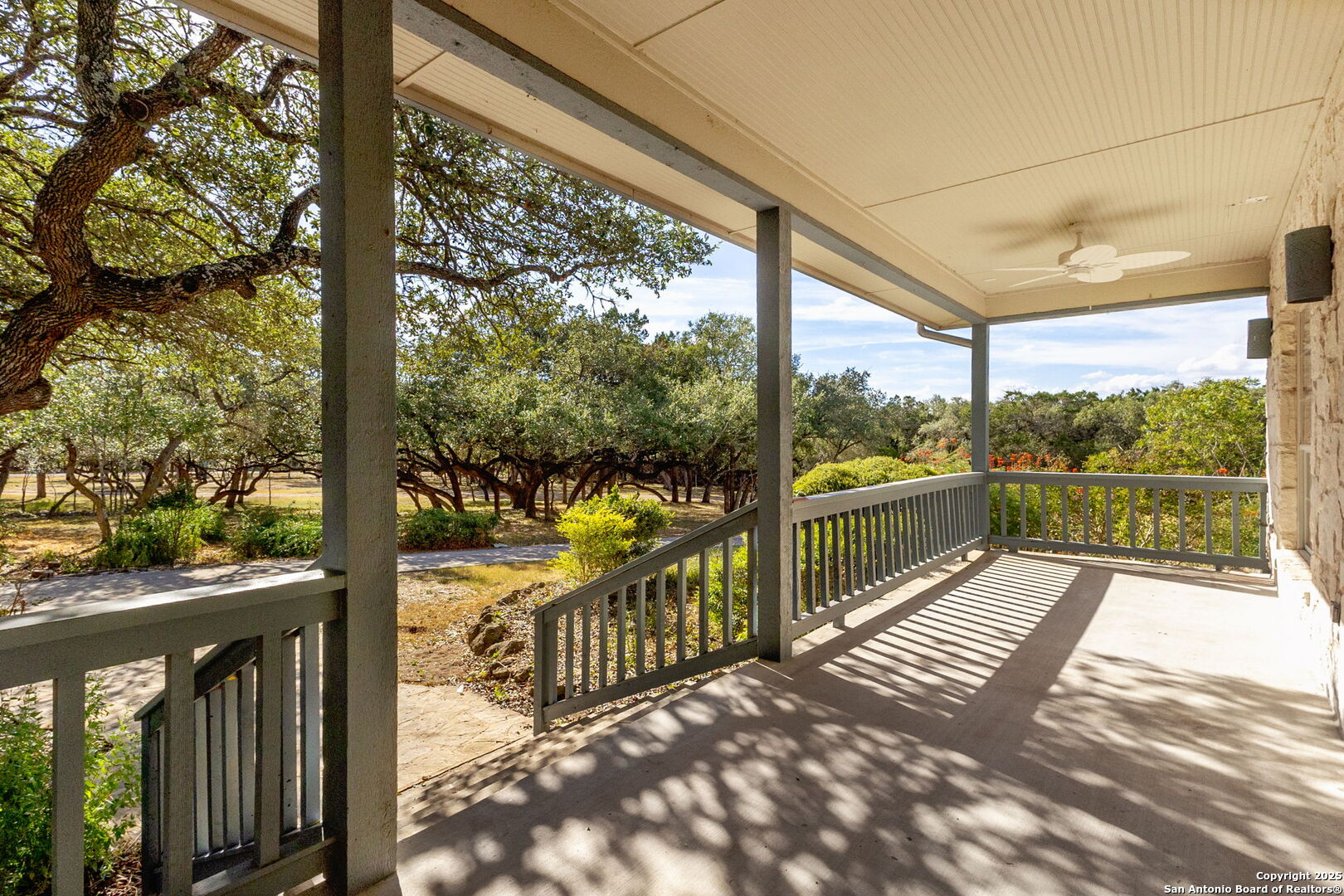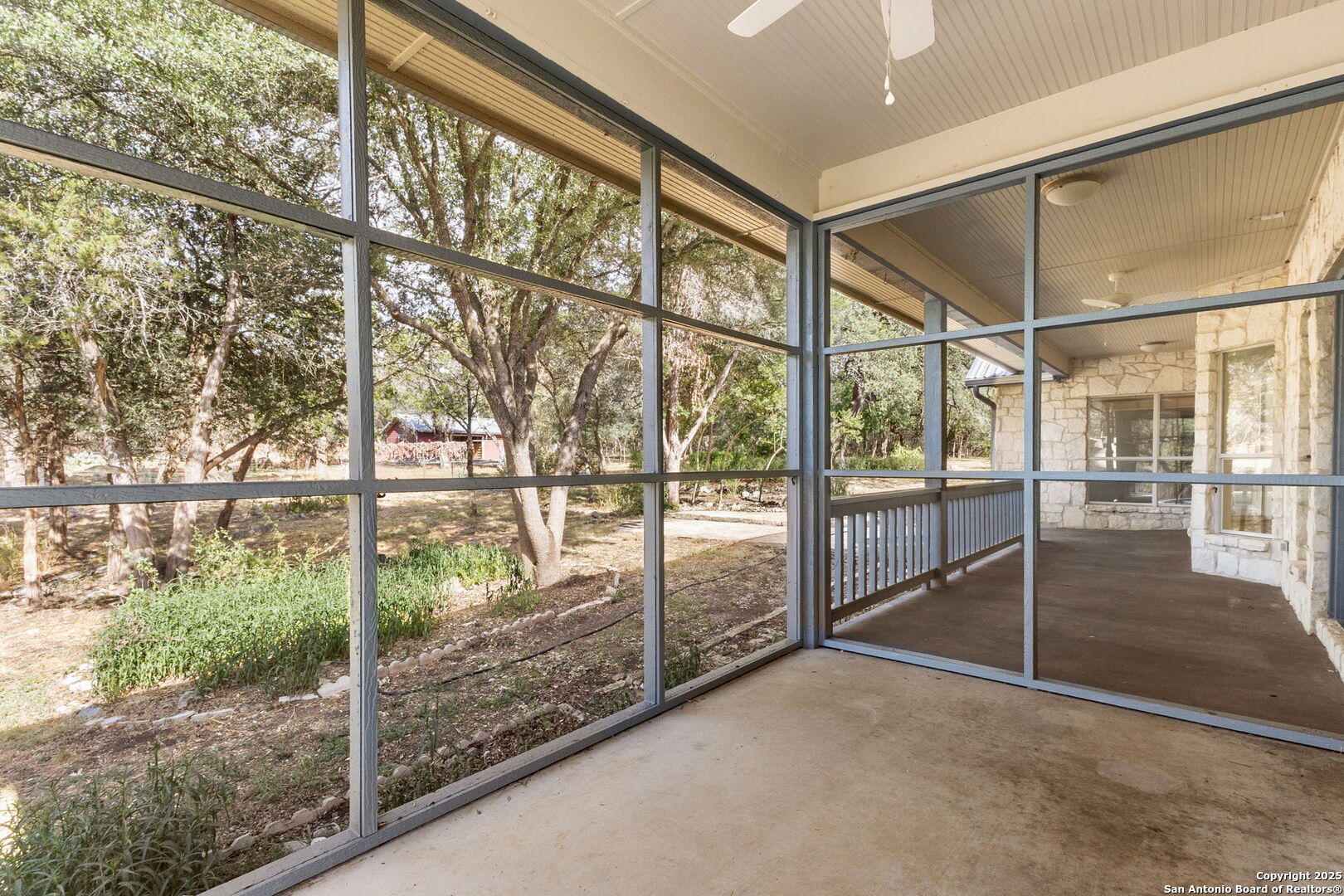 Five acres of Texas Hill Country freedom!! A private gated oasis just minutes from downtown New Braunfels and 20 minutes to San Antonio. This custom limestone home blends country serenity with urban convenience. Highlights include an expansive front and back porch for sipping ice tea and watching the tranquility of nature. The open-concept kitchen with a sunny breakfast nook opens to the family room with abundant natural light. The primary suite offers built-in cabinetry, a double vanity, a shower, and a large walk-in closet. Additional bedrooms (one with a picture window) and a flexible third room POTENTIAL (currently a nature-view screened alcove with ducting in place) provide versatile living space. A large laundry, mud room and 4 car garage complete the home. Outbuildings include a completed barn with two stalls for horses or livestock of your choice, a greenhouse, and large storage shed could easily be the man cave or she shed. Several raised bed garden spots ready for planting complete with water reclamation tanks. The circular drive offers easy access and ample parking for entertaining or extra toys. Don't miss the opportunity to own this country homestead/retreat with city proximity. Your best road home starts here-return daily to the tranquil oasis that is FIVE ACRES OF TEXAS.