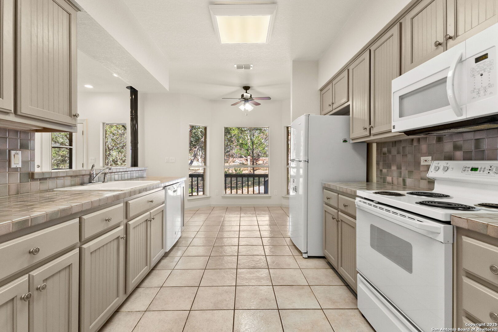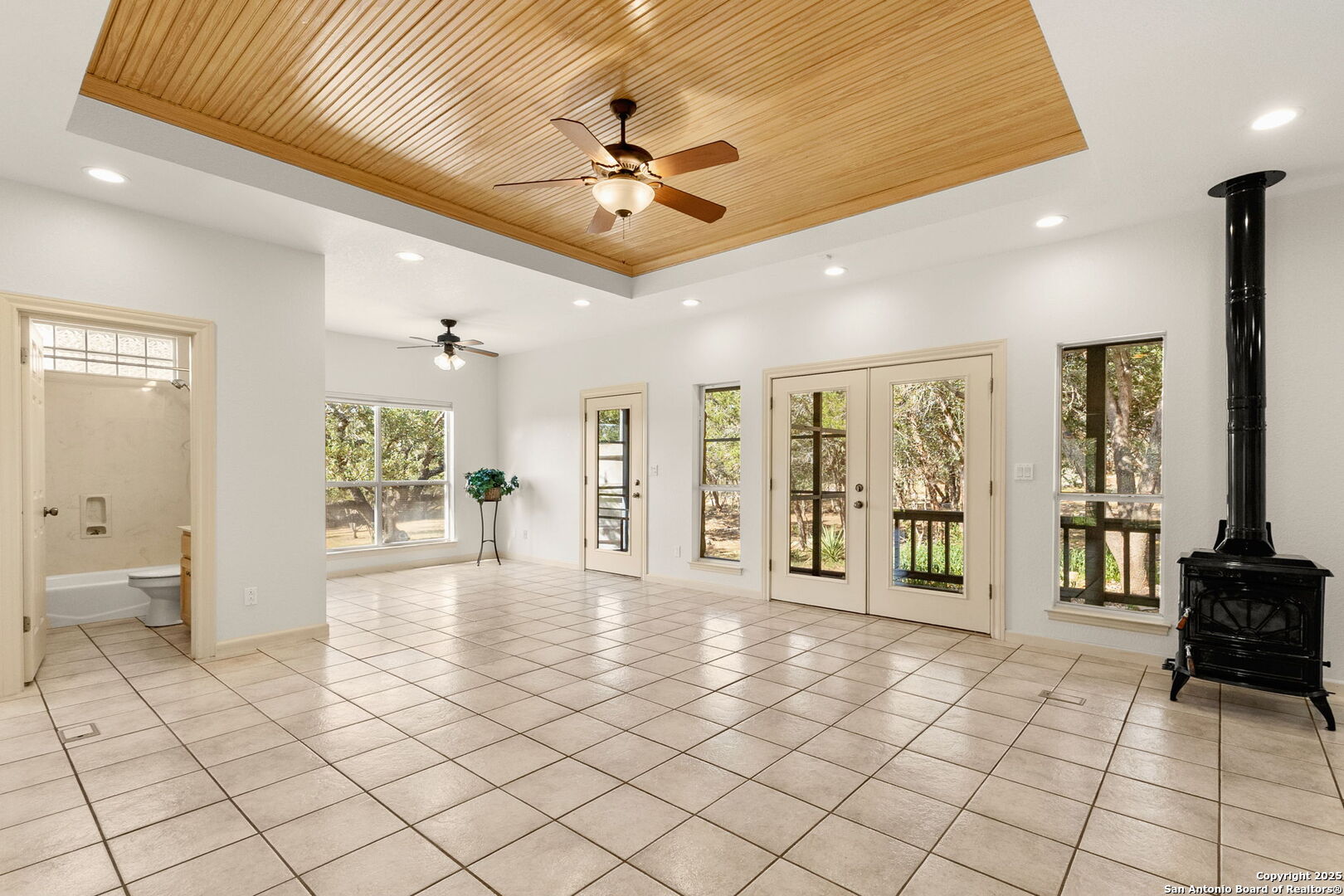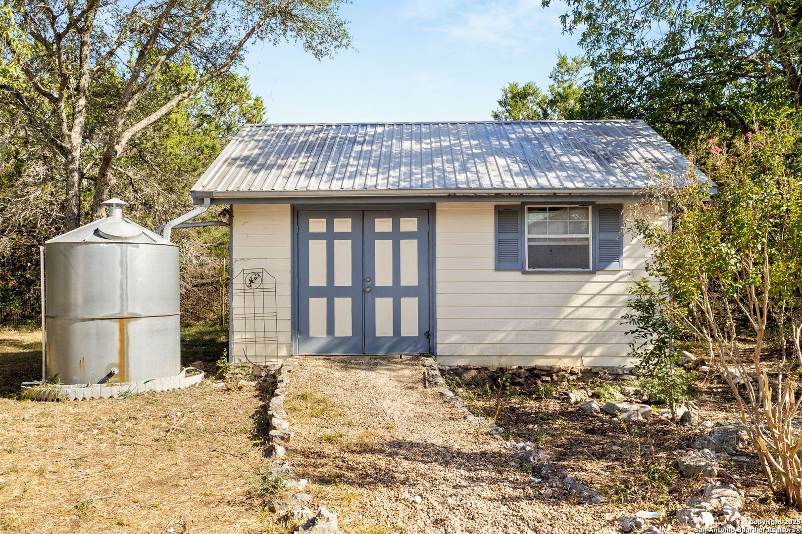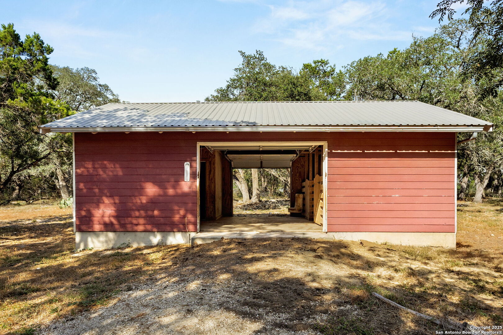 Five acres of Texas Hill Country freedom!! A private gated oasis just minutes from downtown New Braunfels and 20 minutes to San Antonio. This custom limestone home blends country serenity with urban convenience. Highlights include an expansive front and back porch for sipping ice tea and watching the tranquility of nature. The open-concept kitchen with a sunny breakfast nook opens to the family room with abundant natural light. The primary suite offers built-in cabinetry, a double vanity, a shower, and a large walk-in closet. Additional bedrooms (one with a picture window) and a flexible third room POTENTIAL (currently a nature-view screened alcove with ducting in place) provide versatile living space. A large laundry, mud room and 4 car garage complete the home. Outbuildings include a completed barn with two stalls for horses or livestock of your choice, a greenhouse, and large storage shed could easily be the man cave or she shed. Several raised bed garden spots ready for planting complete with water reclamation tanks. The circular drive offers easy access and ample parking for entertaining or extra toys. Don't miss the opportunity to own this country homestead/retreat with city proximity. Your best road home starts here-return daily to the tranquil oasis that is FIVE ACRES OF TEXAS.