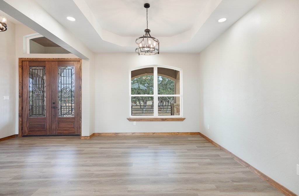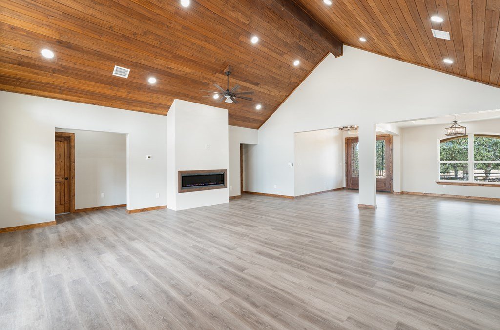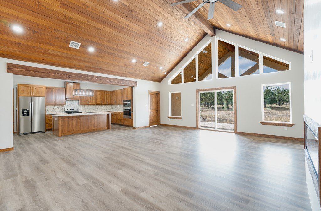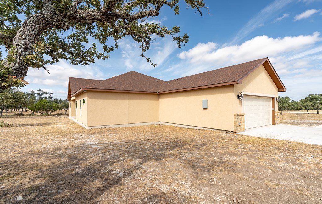 Custom New Build on 4.3 Acres Welcome to Reservation Ranch, a gated community in Harper TX just minutes from both Kerrville and Fredericksburg. This newly built 4-bedroom, 3-bath home offers the best of Hill Country living: peaceful surroundings, quality craftsmanship, and modern comfort. The masonry exterior on all four sides and flagstone entryway create timeless curb appeal. Inside, an open floor plan invites effortless entertaining with a spacious living room featuring vaulted wood ceilings, an electric fireplace with stucco facade, and a wall of windows framing the natural landscape. The island kitchen serves as a second dining space and showcases stainless steel appliances, custom wood cabinetry, and plenty of prep space. Durable luxury vinyl plank flooring runs throughout the home, offering easy maintenance and a seamless flow from room to room. The primary suite is a relaxing retreat with dual vanities, a walk-in shower, and a jetted soaking tub perfect for unwinding at day's end and the massive walk-in closet with custom shelving may require a shopping spree to utilize properly! Enjoy evenings on the covered flagstone back porch surrounded by mature Post Oaks and native Hill Country scenery. Additional highlights include an attached two-car garage . access to the community's central water system..reasonable restrictions. Experience the beauty of nature paired with the comfort of modern living. Whether you're looking for a peaceful retreat or a place to raise a family, this property is the one!