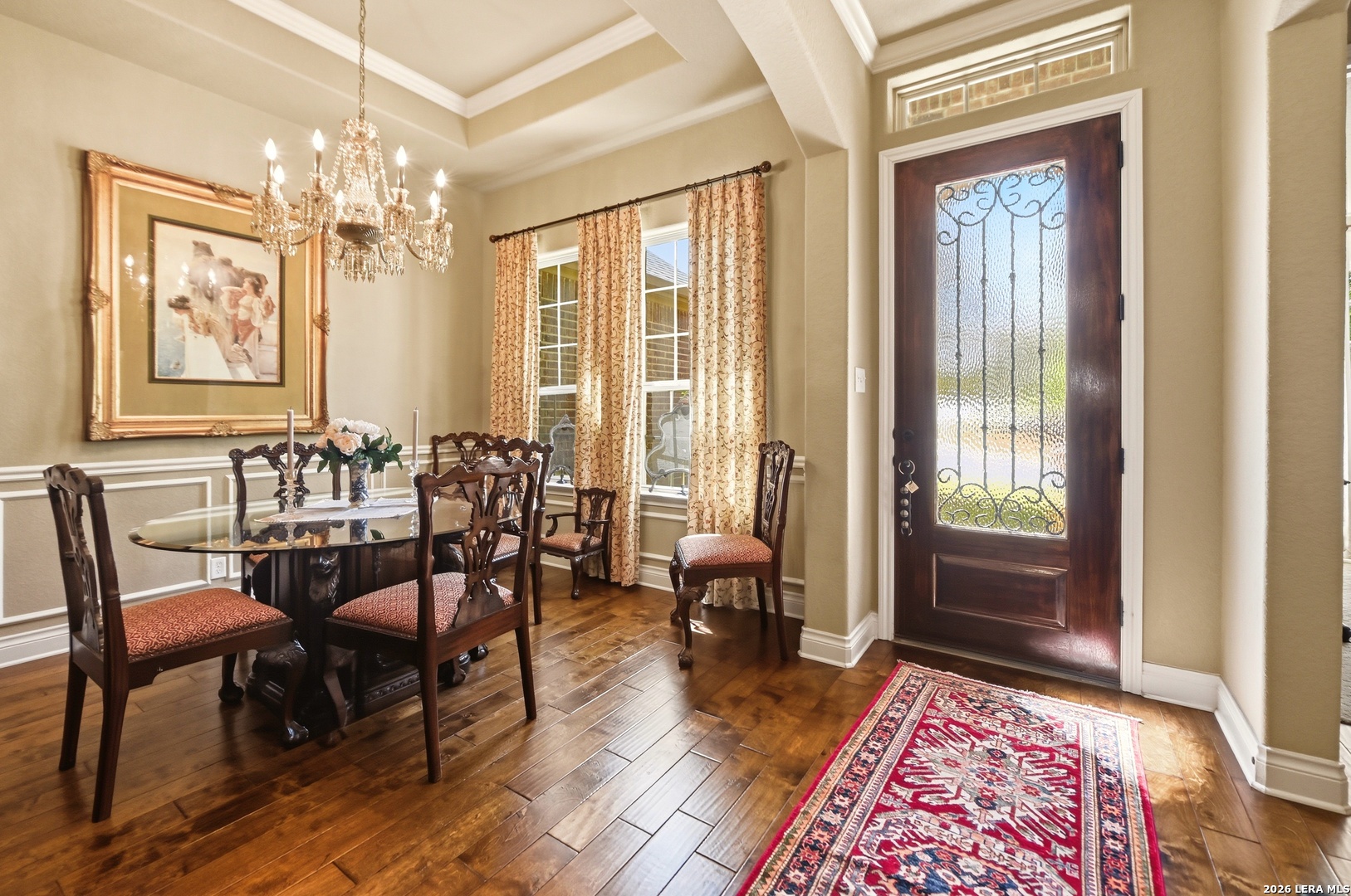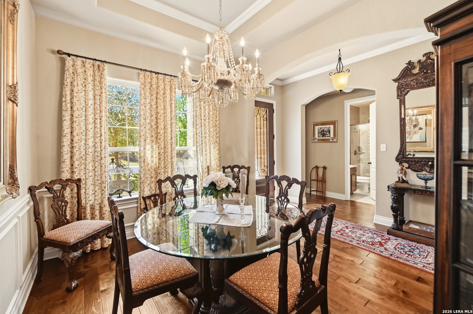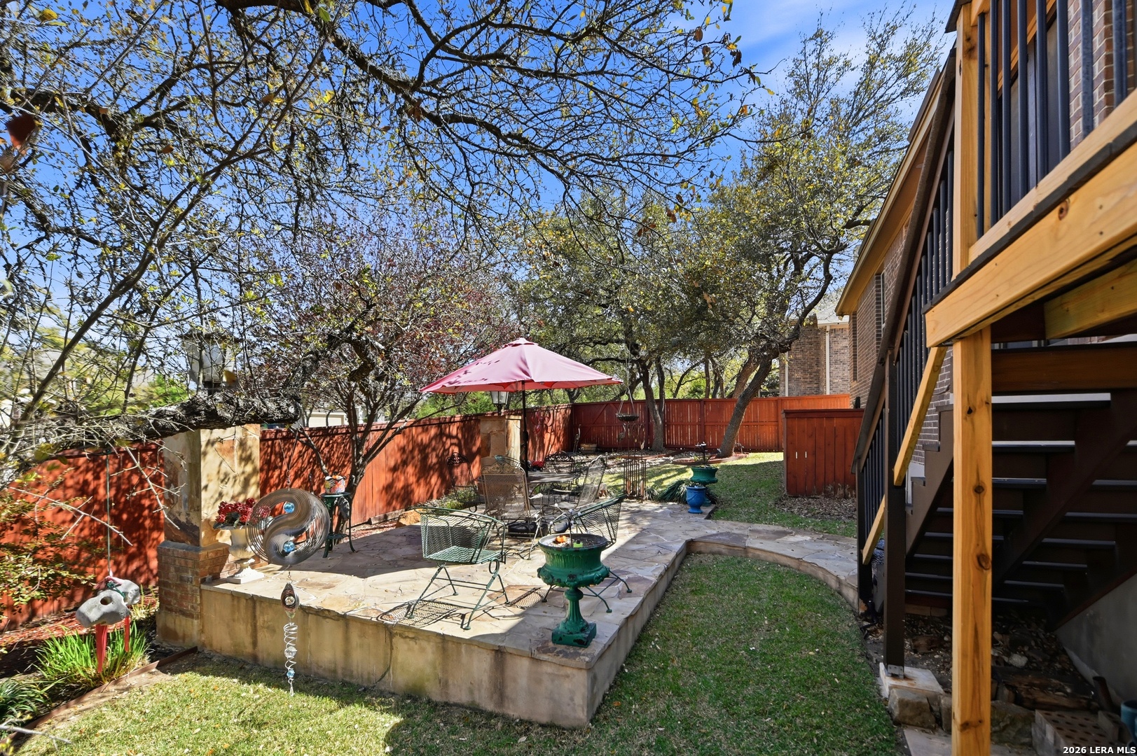 OWNERS BUILT THIS HOME NEW AND ADDED MAX UPGRADES. HARDWOOD FLOORS IN ALL LIVING AREAS, TOP OF THE LINE CARPET AND EXTRA PADDING IN THE MASTER BEDROOM, UPGRADED TILE IN ALL BATHROOMS, CROWN MOLDING THROUGHOUT, UPGRADED GRANITE AND APPLIANCES, FLAGSTONE PATIO IN BACK AND FULL YARD SPRINKLER SYSTEM. THE DINING ROOM IS AT THE FRONT OF THE HOME AND COULD BE AN OFFICE IF YOU PREFER. LARGE LIVING WITH FLOOR TO CEILING STONE FIREPLACE FEATURING GAS LOGS. VERY OPEN FLOOR WITH KITCHEN, LIVING AND 2ND EATING AREA OPEN TO MAKE A HUGE ENTERTAINMENT AREA AS WELL AS THE ENCLOSED PATIO ADDING EXTRA SPACE. THE KITCHEN IS THE ENVY OF MOST CHEF'S WITH TOP-OF-THE-LINE APPLIANCES INCLUDING DISHWASHER WITH DRAWERS FOR BETTER CLEANING, STAINLESS STEEL GAS COOKTOP, RECENTLY INSTALLED OVEN, HUGE ISLAND WITH STAINLESS STEEL SINK AND BREAKFAST BAR, PLUS LARGE PANTRY TO TOP IT ALL OFF. THE MASTER SUITE IS HUGE WITH BEDROOM, ATTACHED SITTING AREA, LUXURY BATH FEATURING LARGE WALK-IN SHOWER, GARDEN TUB, DOUBLE VAINITY WITH GRANITE COUNTERTOP AND BIG WALK-IN CLOSET WITH AN ADDITIONAL CLOSET OUTSIDE BEDROOM DOOR. THE OTHER TWO BEDROOMS ARE BIG WITH LOTS OF CLOSET SPACE. THE OUTIDE ENCLOSED PATIO EXTENDS THE LIVING AREA WITH LOTS OF NATURAL LIGHT MADE FOR MORING COFFEE OR RELAXING AT THE END OF THE DAY. THERE IS A THREE CAR TANDUM GARAGE, PERMANENT STAIRS TO ATTIC PLUS AN ELECTRIC LIFT SO THE ATTIC IS USABLE FOR STORAGE. THE BACK YARD HAD 25K WORTH OF LANDSCAPING DONE TO INCLUDE FLAGSTONE PATIO, LANDSCAPING AND WROUGHT IRON FENCING ON BOTH SIDES. THE ENTIRE YARD FEATURES AN AUTOMATIC SPRINKLER SYSTEM AND BEAUTIFUL LANDSCAPING. ALL THIS AND ONLY MINUTES TO BOERNE, SAN ANTONIO, SIX FLAGS AND MUCH MORE.