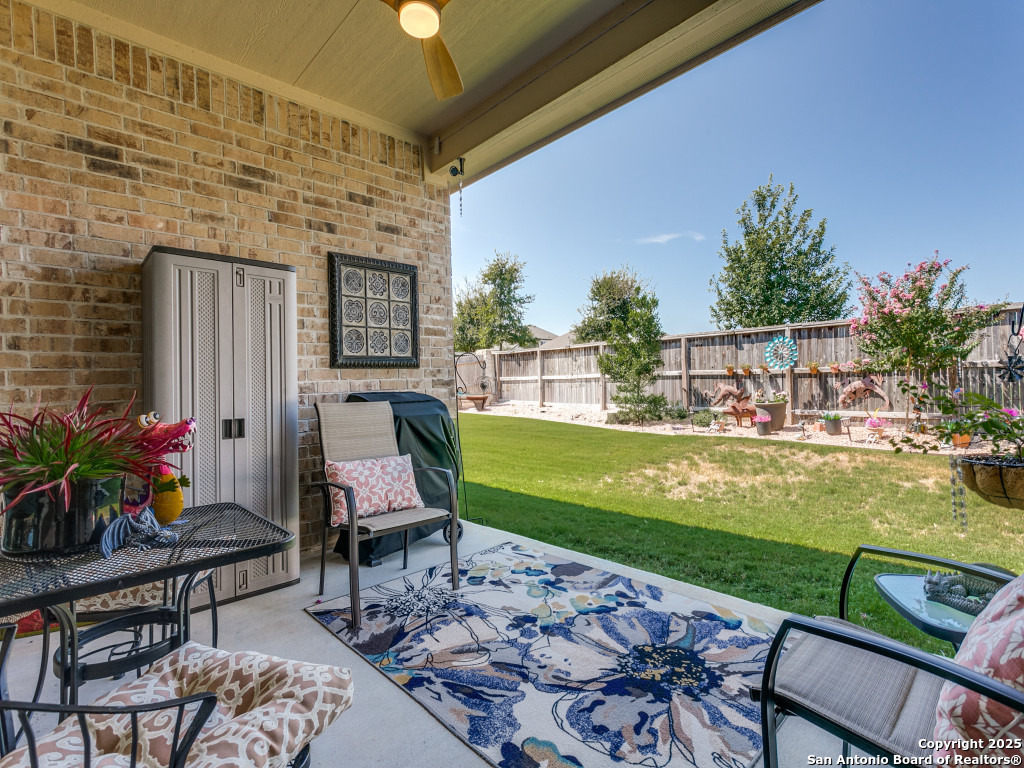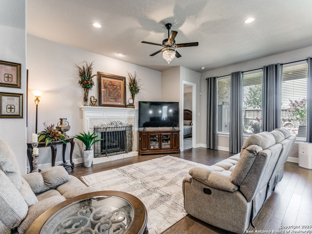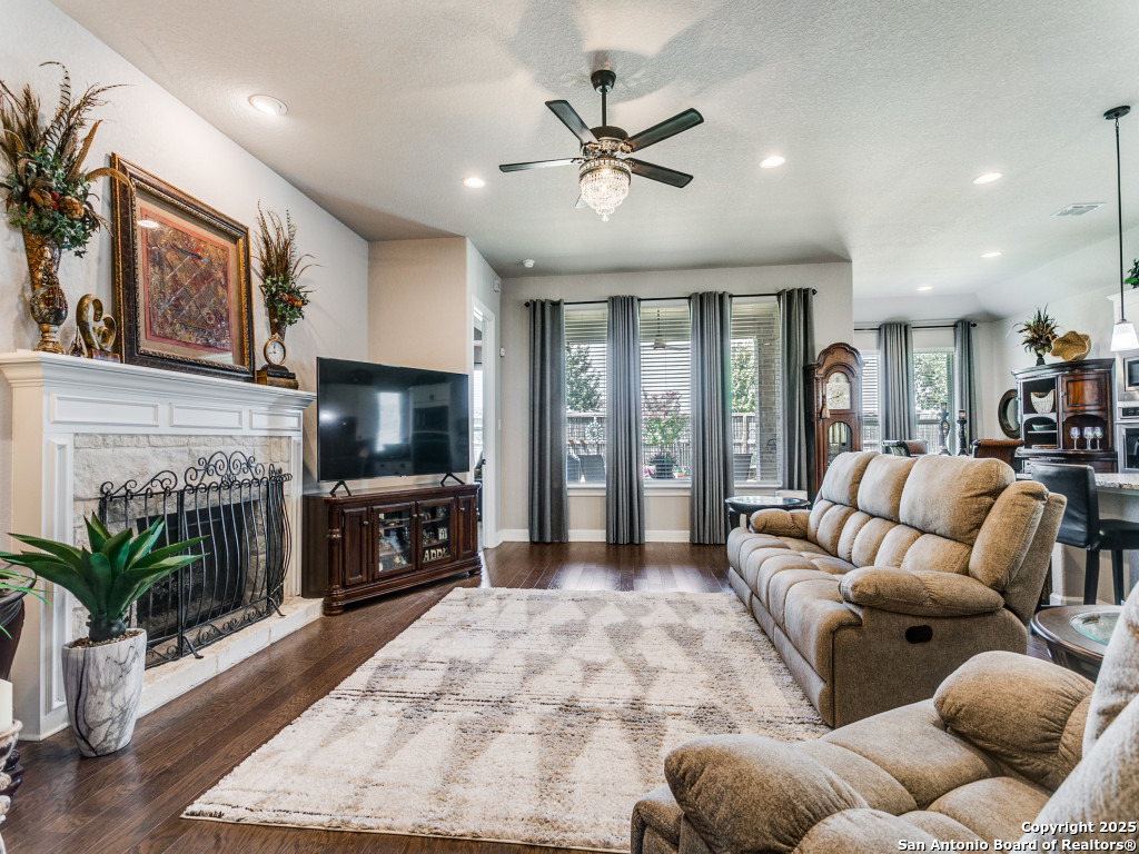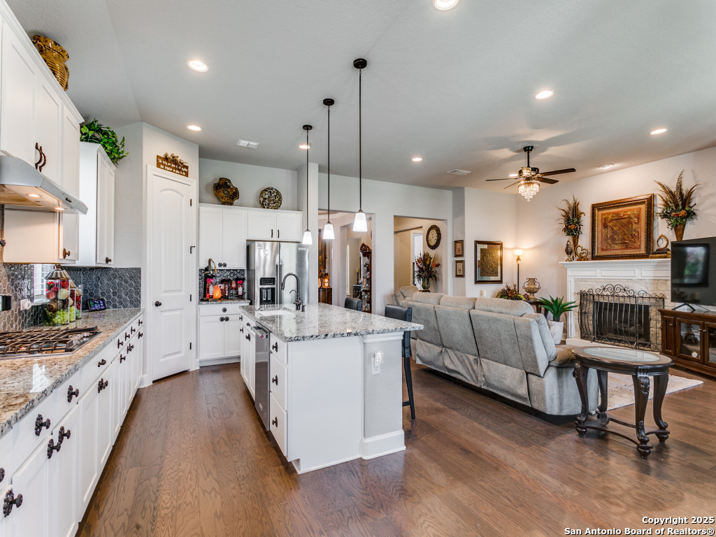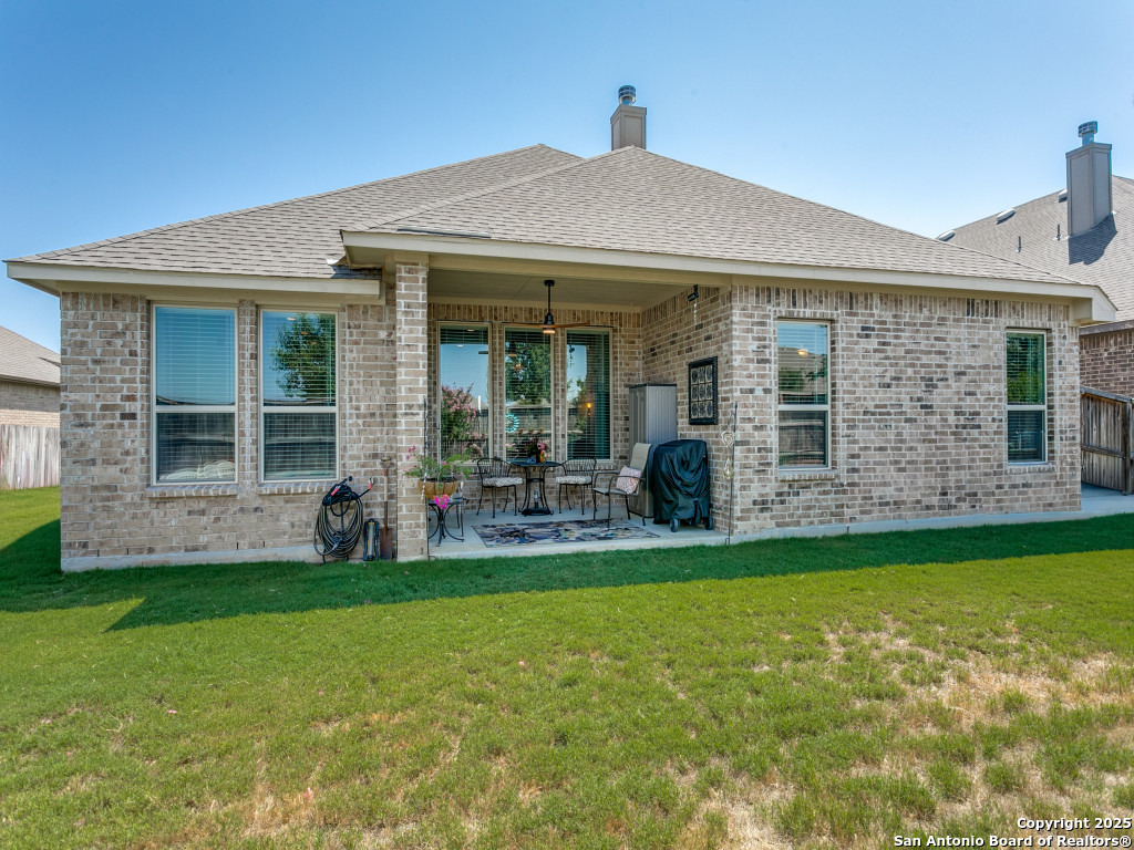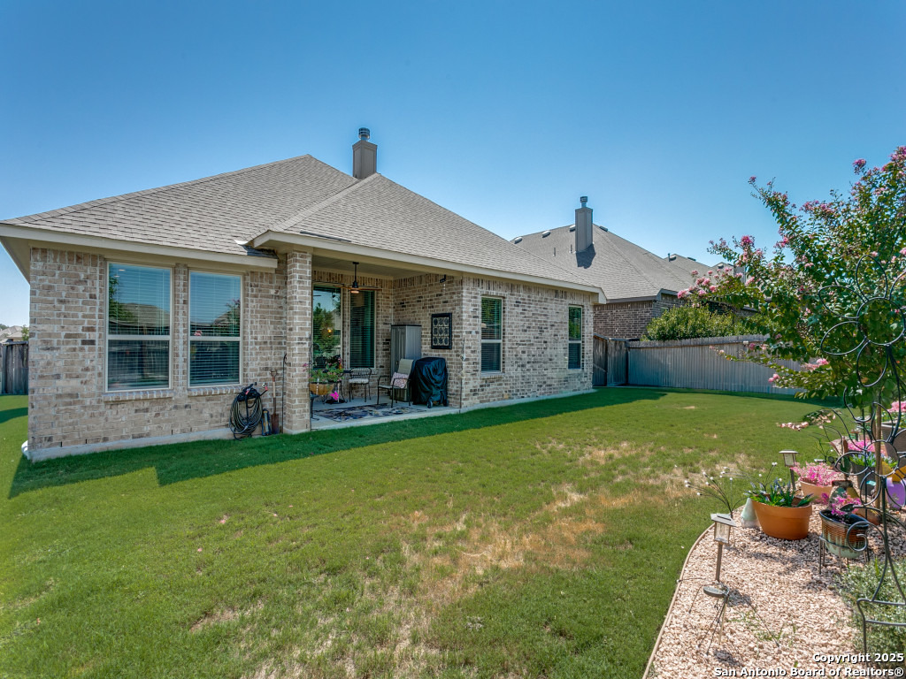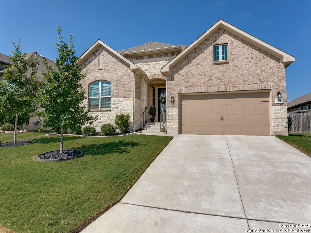 Welcome to this stunning single-story brick and stone home in the highly desirable Kinder Ranch community. Just minutes from Pieper High School and Middle School which are top-rated schools, this home offers comfort and convenience in one package. Inside, you'll find a spacious open layout with wood flooring, a cozy stone fireplace, and a large island kitchen featuring Kitchen Aid stainless appliances, gas cooking, a breakfast bar, and plenty of space for gatherings. The dedicated office can also serve as a 4th bedroom, giving you flexibility for your needs. The master suite is a retreat with a walk-in shower and a $16K hydrotherapy tub offering massage and aromatherapy. Step outside to a beautifully landscaped backyard with a covered patio - perfect for entertaining or quiet evenings under the stars. Move-in ready with upgrades throughout, this home is ready to impress. Please go to additional information for all the improvements and upgrades.