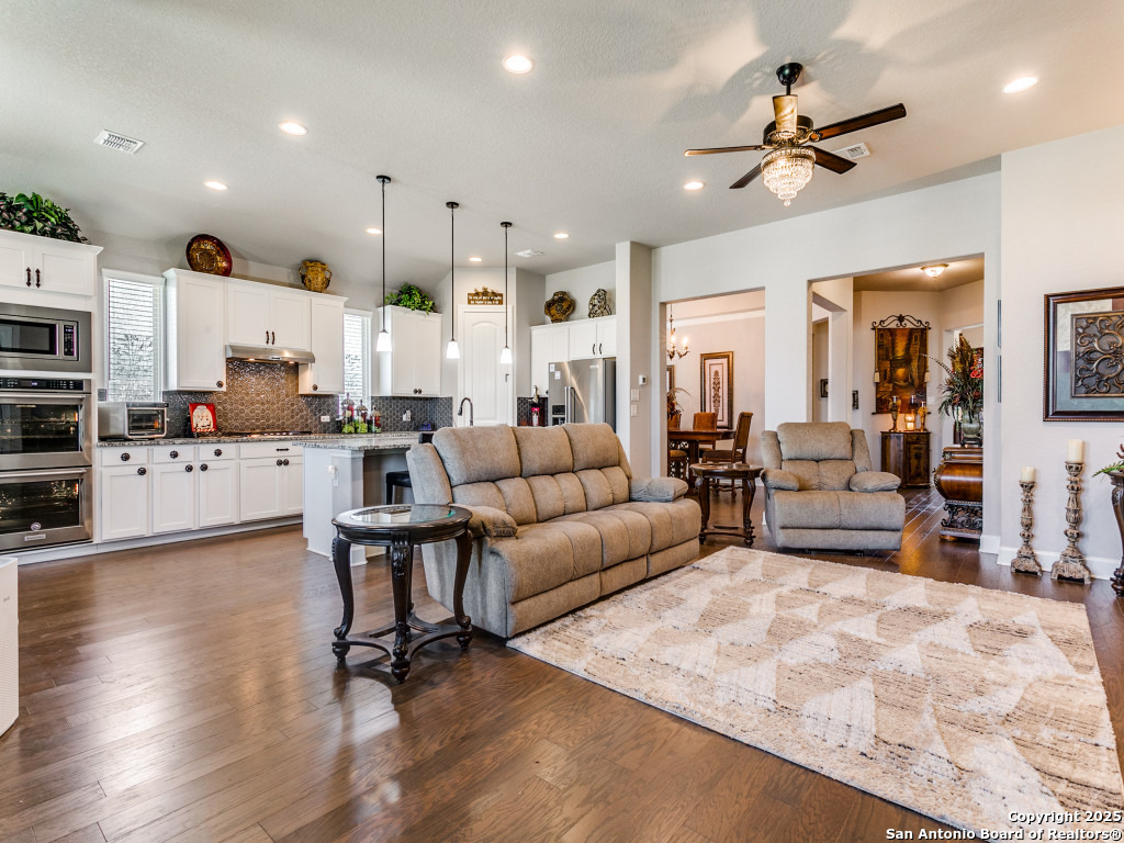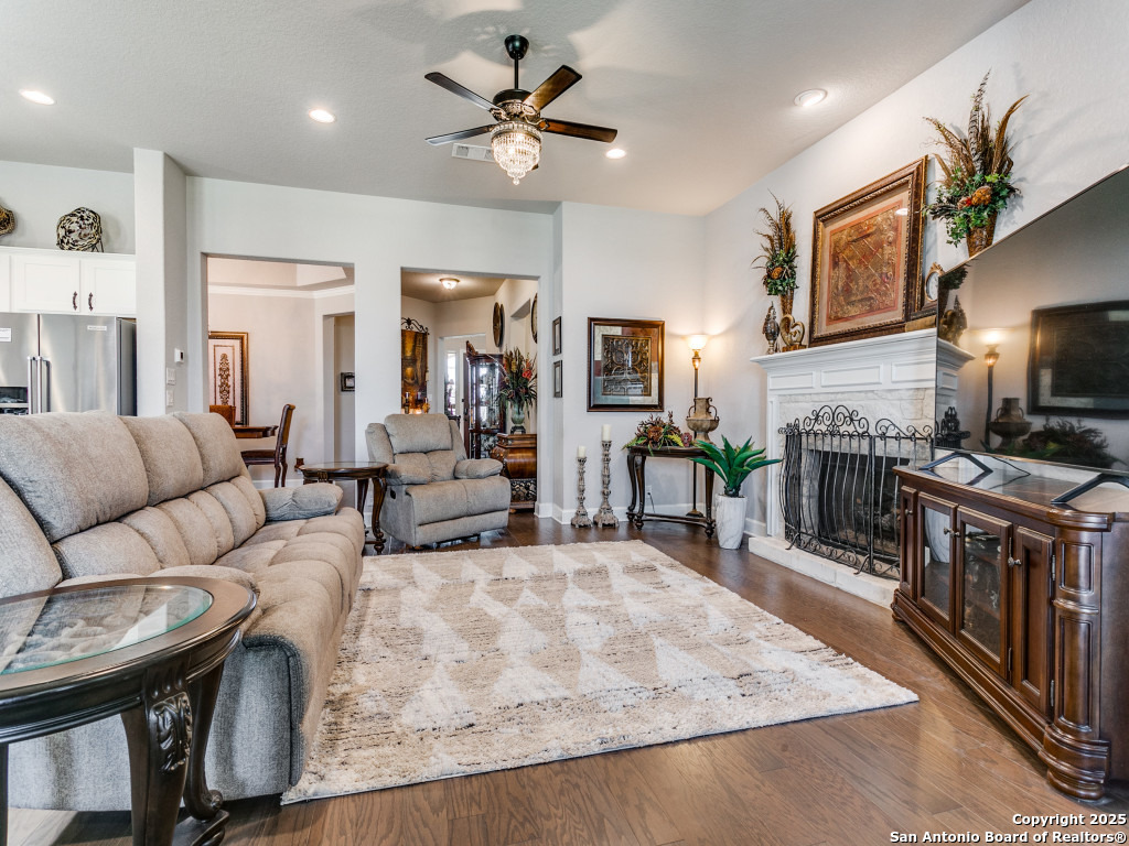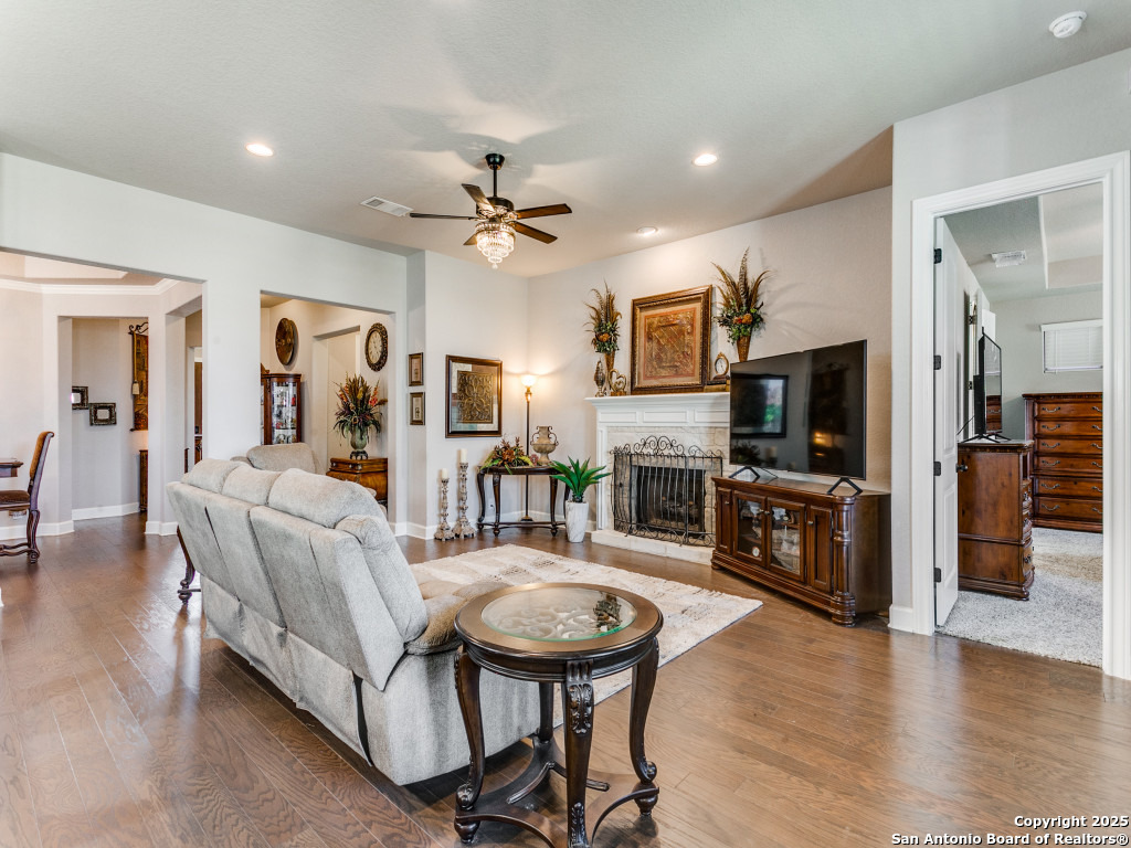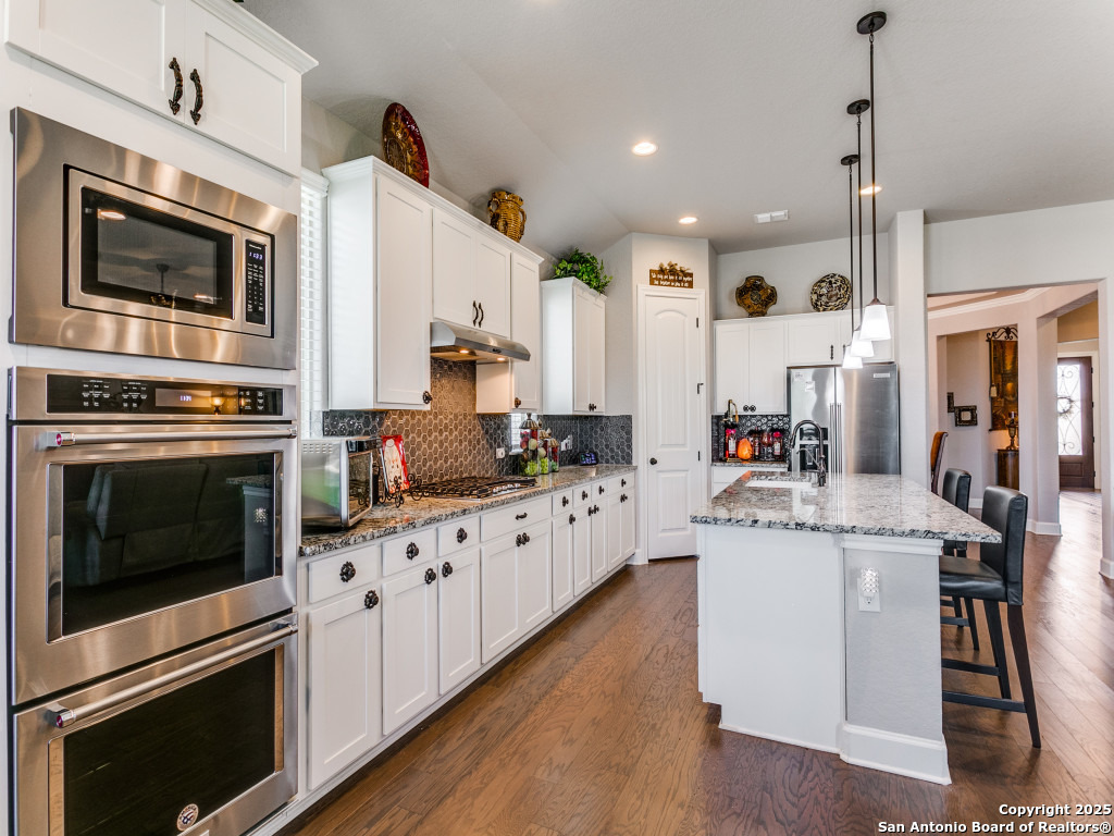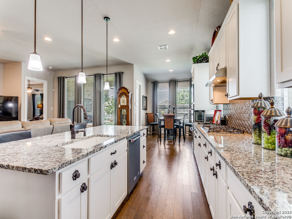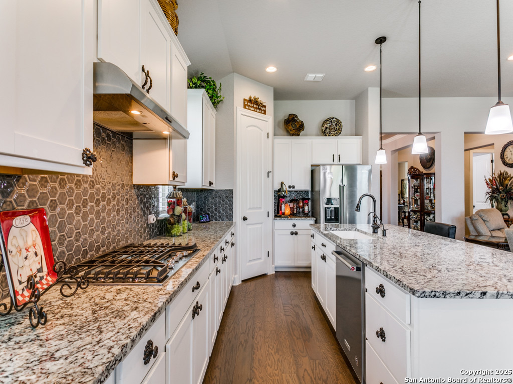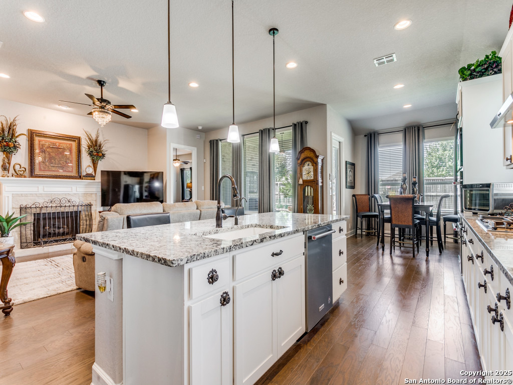 Welcome to this stunning single-story brick and stone home in the highly desirable Kinder Ranch community. Just minutes from Pieper High School and Middle School which are top-rated schools, this home offers comfort and convenience in one package. Inside, you'll find a spacious open layout with wood flooring, a cozy stone fireplace, and a large island kitchen featuring Kitchen Aid stainless appliances, gas cooking, a breakfast bar, and plenty of space for gatherings. The dedicated office can also serve as a 4th bedroom, giving you flexibility for your needs. The master suite is a retreat with a walk-in shower and a $16K hydrotherapy tub offering massage and aromatherapy. Step outside to a beautifully landscaped backyard with a covered patio - perfect for entertaining or quiet evenings under the stars. Move-in ready with upgrades throughout, this home is ready to impress. Please go to additional information for all the improvements and upgrades.