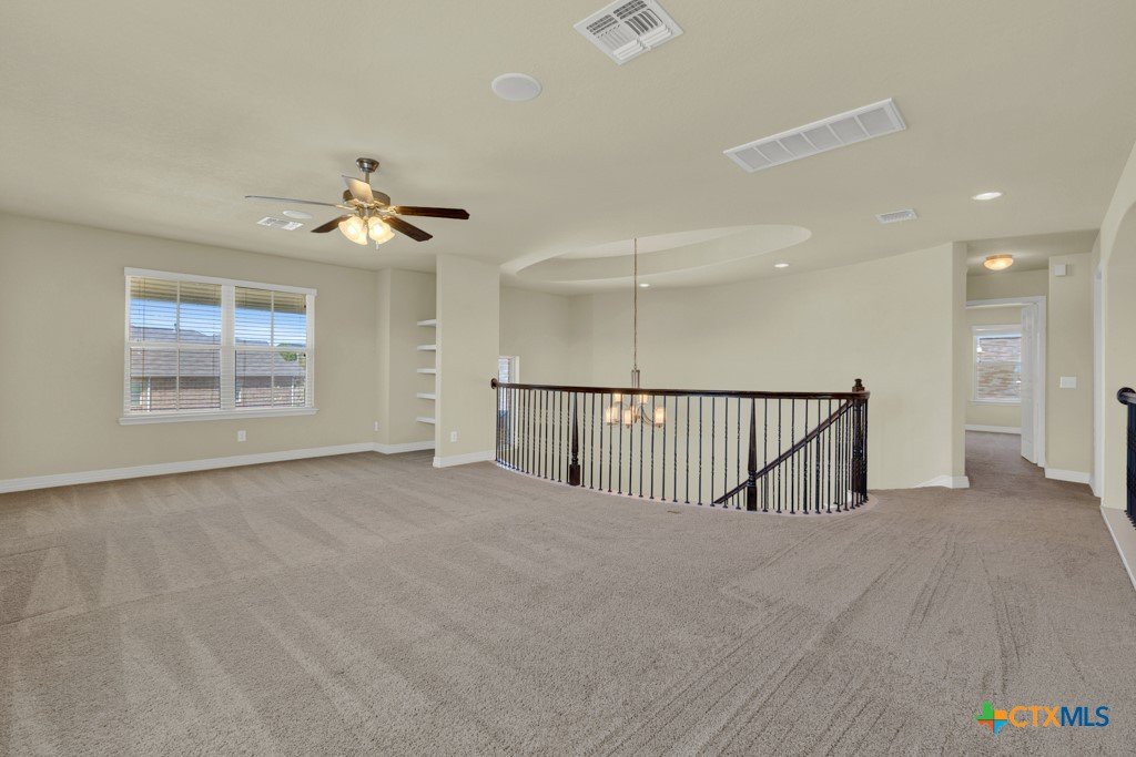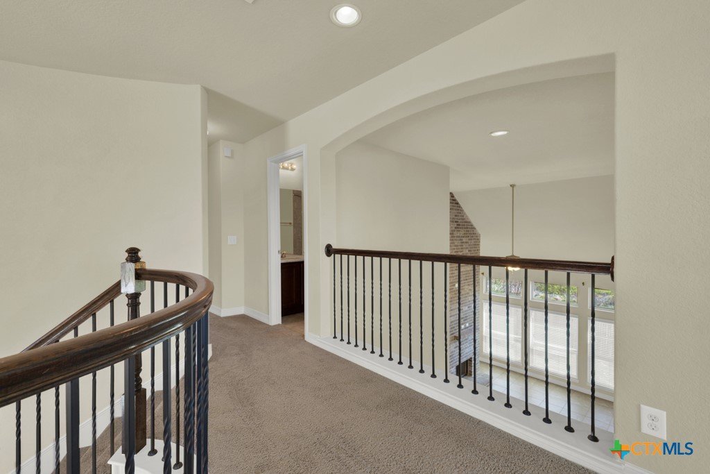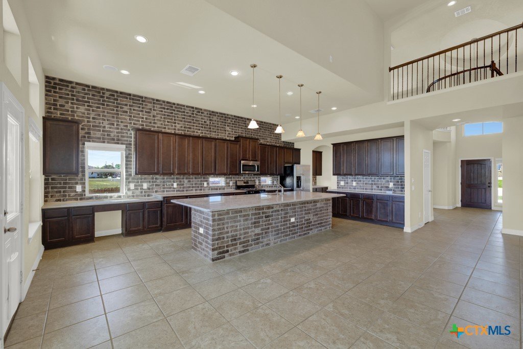 Stunning 4 Bedroom 3 full Bath Home in the desirable Mockingbird Heights Subdivision. This Hill Country Style home has it all! Breath taking entry with 2 story ceiling with hanging chandelier Spiral wrought iron leading to upstairs bonus suite area. 3 Bedrooms downstairs with 2 full baths. The kitchen is a dream with massive Island, generous cabinetry, Pie windows, gas cook top, coffee nook of kitchen, extensive pantry and so much more. Beautiful architectural details throughout with soaring windows in Living room with beautiful gas fireplace open to dining, eating and kitchen. Locate on an over sized lot with green belt behind and outdoor kitchen. Home has gutters and sprinkler system. So much to see and very unique and hard to find. Make an appt to see now.!!