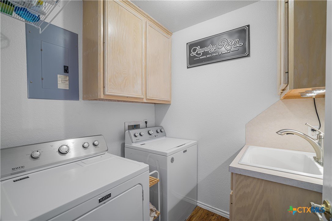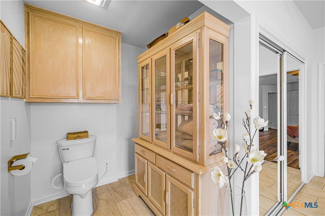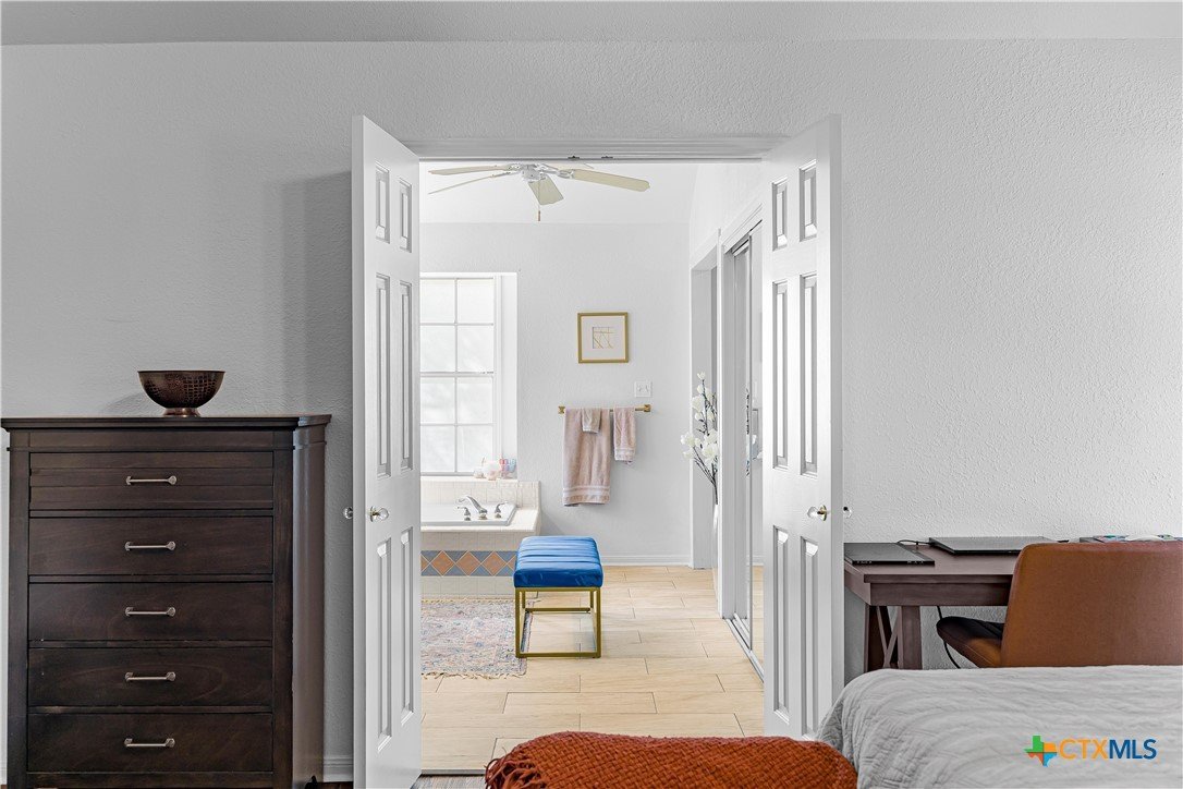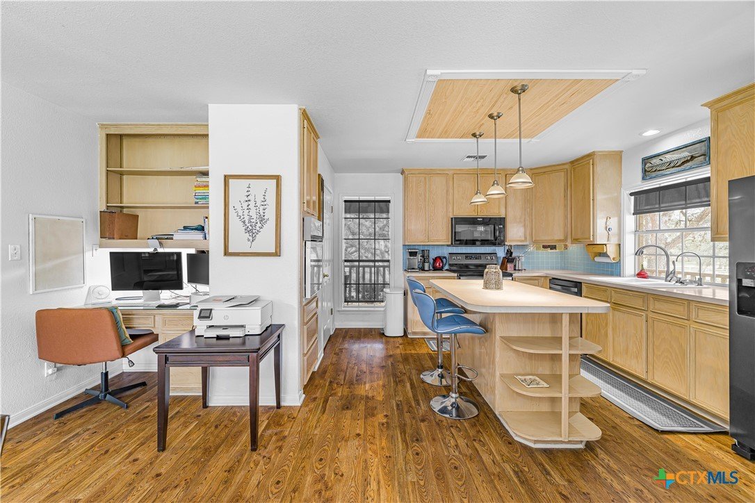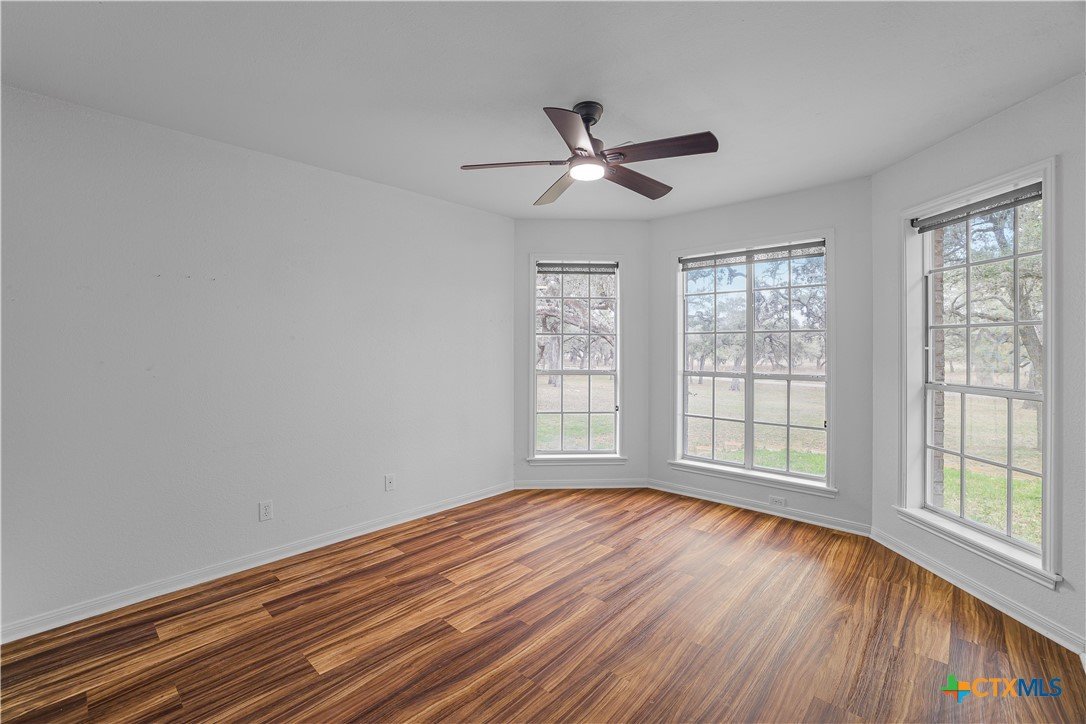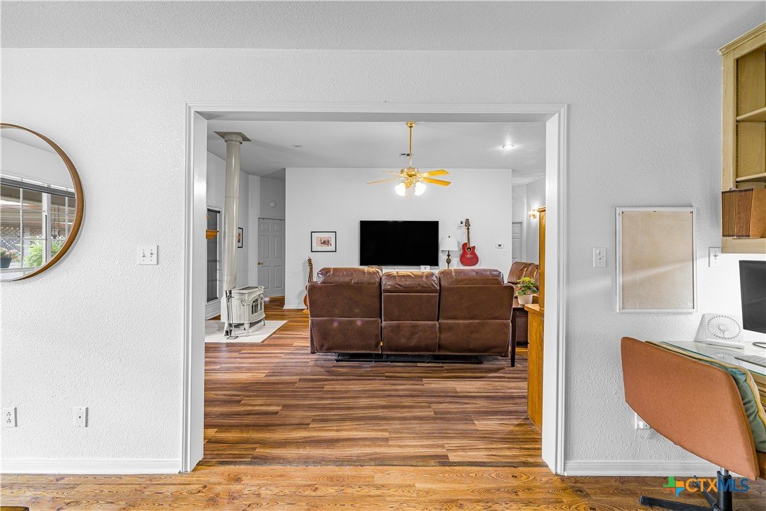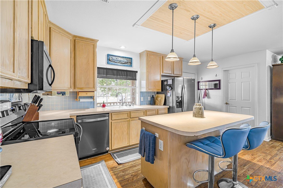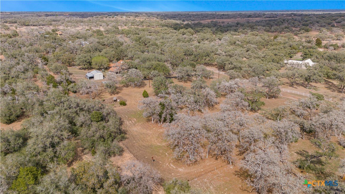 Peaceful country living on nearly 5 oak-shaded acres at the end of a quiet cul-de-sac in Cuero, TX. This thoughtfully updated 3-bed, 2-bath home (2,203 sq ft) features an open-concept kitchen, living room, and dining area with oversized windows, a spa-like master bath with frameless glass walk-in shower, garden tub, and new tile, a kitchen with island bar seating and walk-in pantry, and a split floor plan for privacy. Recent upgrades include a 2024 copper metal roof, remodeled master bath, new vinyl flooring, matching black appliances (2022), and a gas tankless water heater (2023). Private well with water softener; drain field septic; kitchen water purifier. Outside: a wraparound porch with swing, backyard gazebo for watching South Texas sunsets, a 20×30 barn/workshop with built-in workbenches, electricity, and attached lean-to, two-car carport with built-in cabinets, RV hookups with water and electric, greenhouse, and a pond. 45 minutes to Victoria; roughly two hours to San Antonio, Houston, Austin, and the coast.