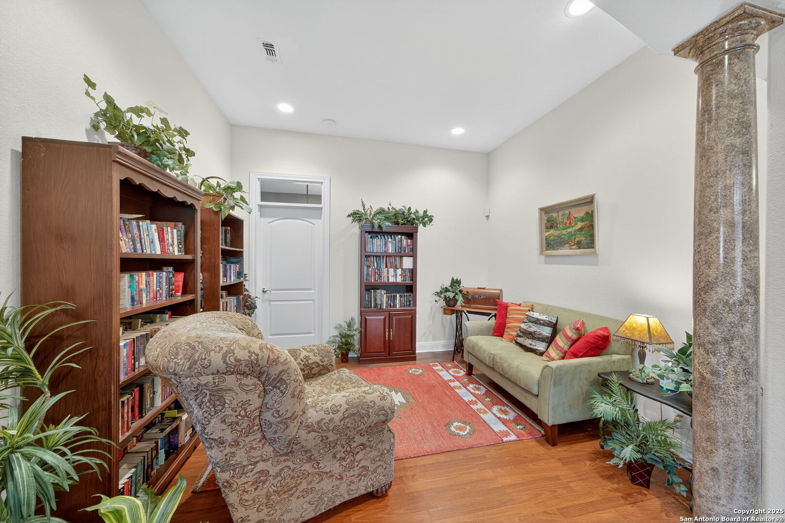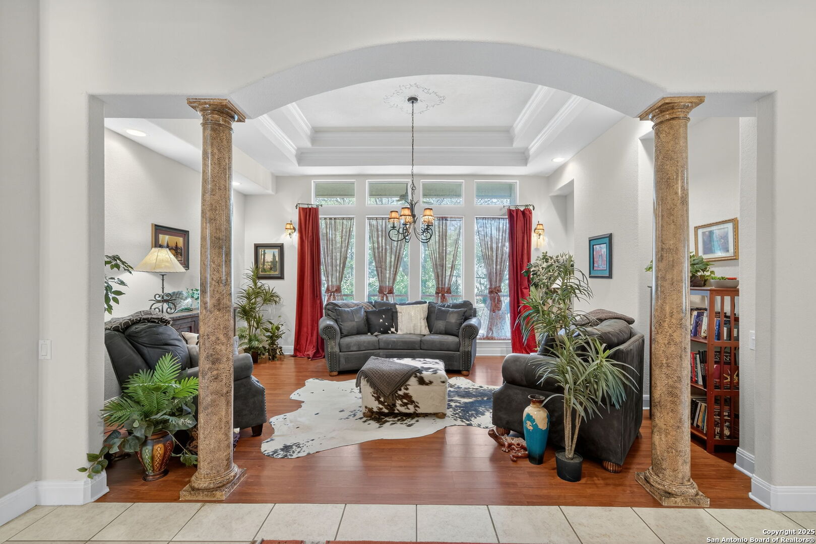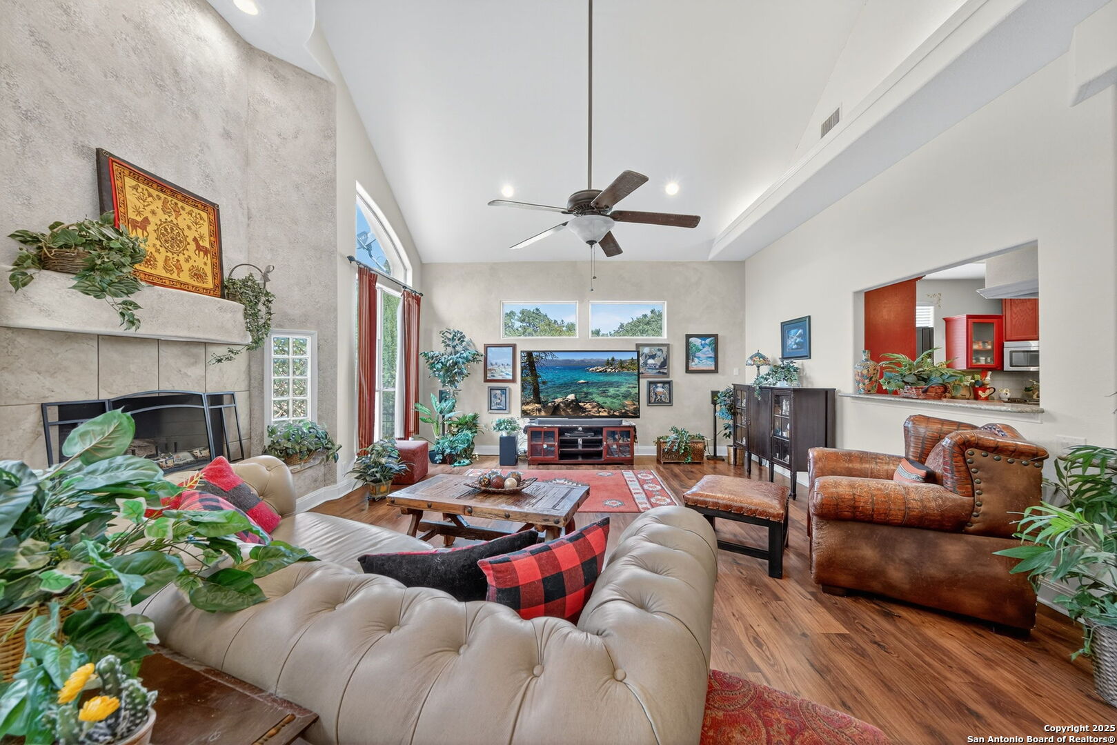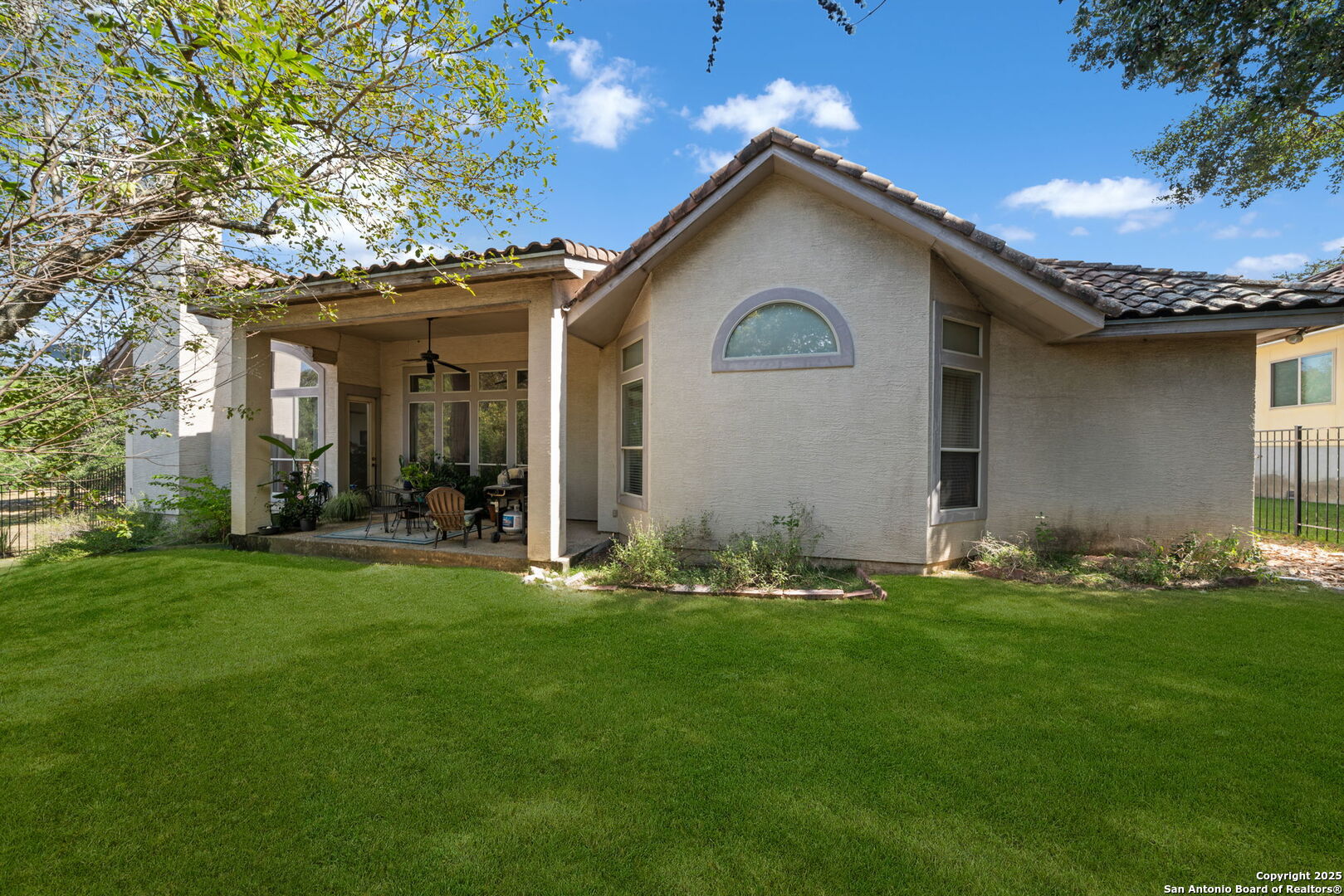 2.49% VA Assumable Loan! Located in the Fair Oaks Ranch community in the Texas Hill Country, this custom 3-bedroom, 3-bath home offers quality craftsmanship and thoughtful design throughout. The welcoming entry features a barreled ceiling that leads into a comfortable sitting area and a spacious living room with high ceilings, a striking fireplace, and abundant natural light. The gourmet kitchen includes custom cabinetry, generous counter space, and a wet bar-ideal for everyday cooking or entertaining. The elegant primary suite offers separate his-and-hers baths and direct access to the private backyard retreat. Additional highlights include a two-car garage with extra golf cart storage and a short ride to the Fair Oaks Ranch Country Club. This home blends timeless style, comfort, and convenience in one of Boerne's most desirable golf course communities.