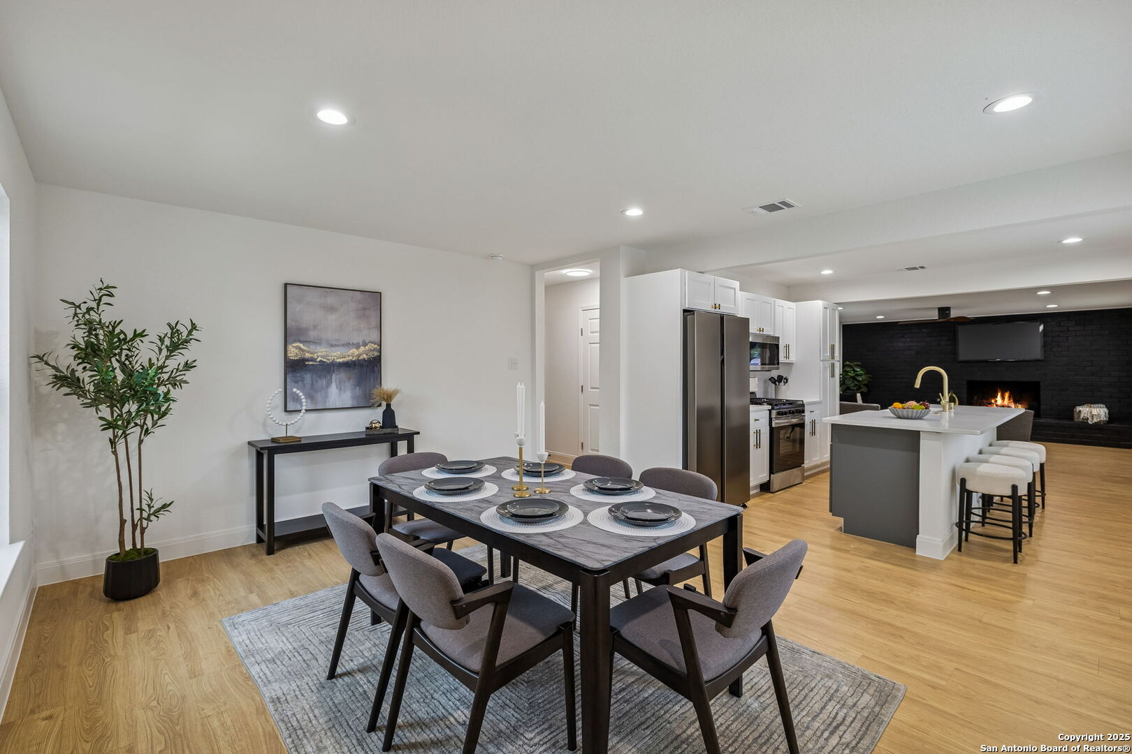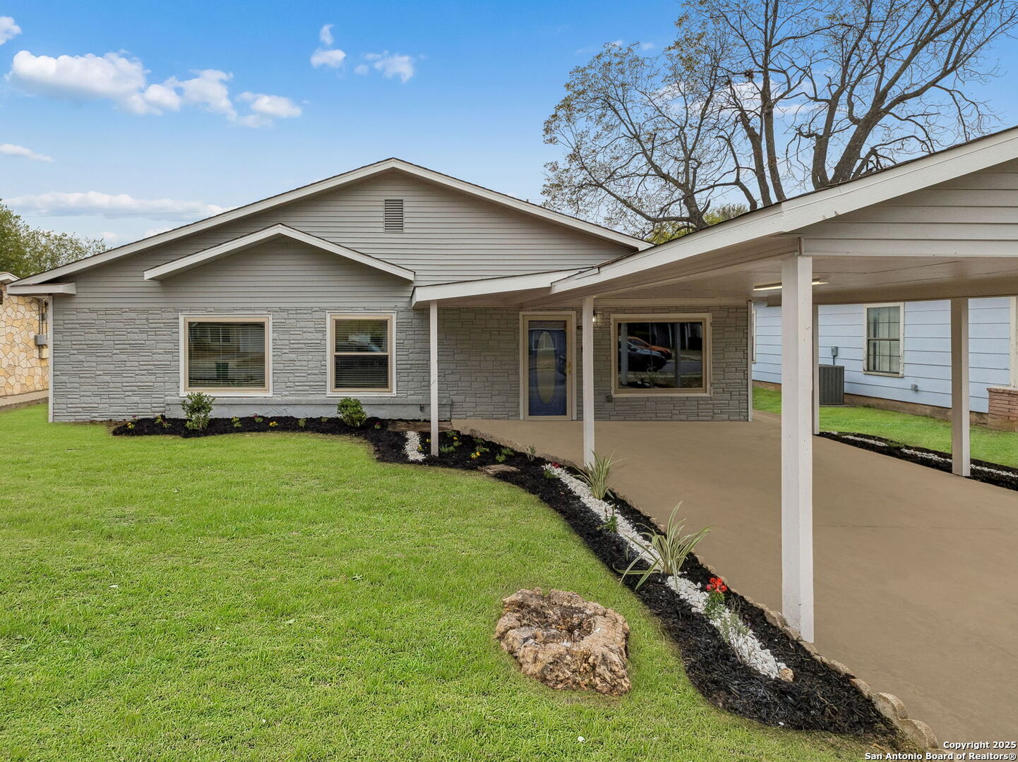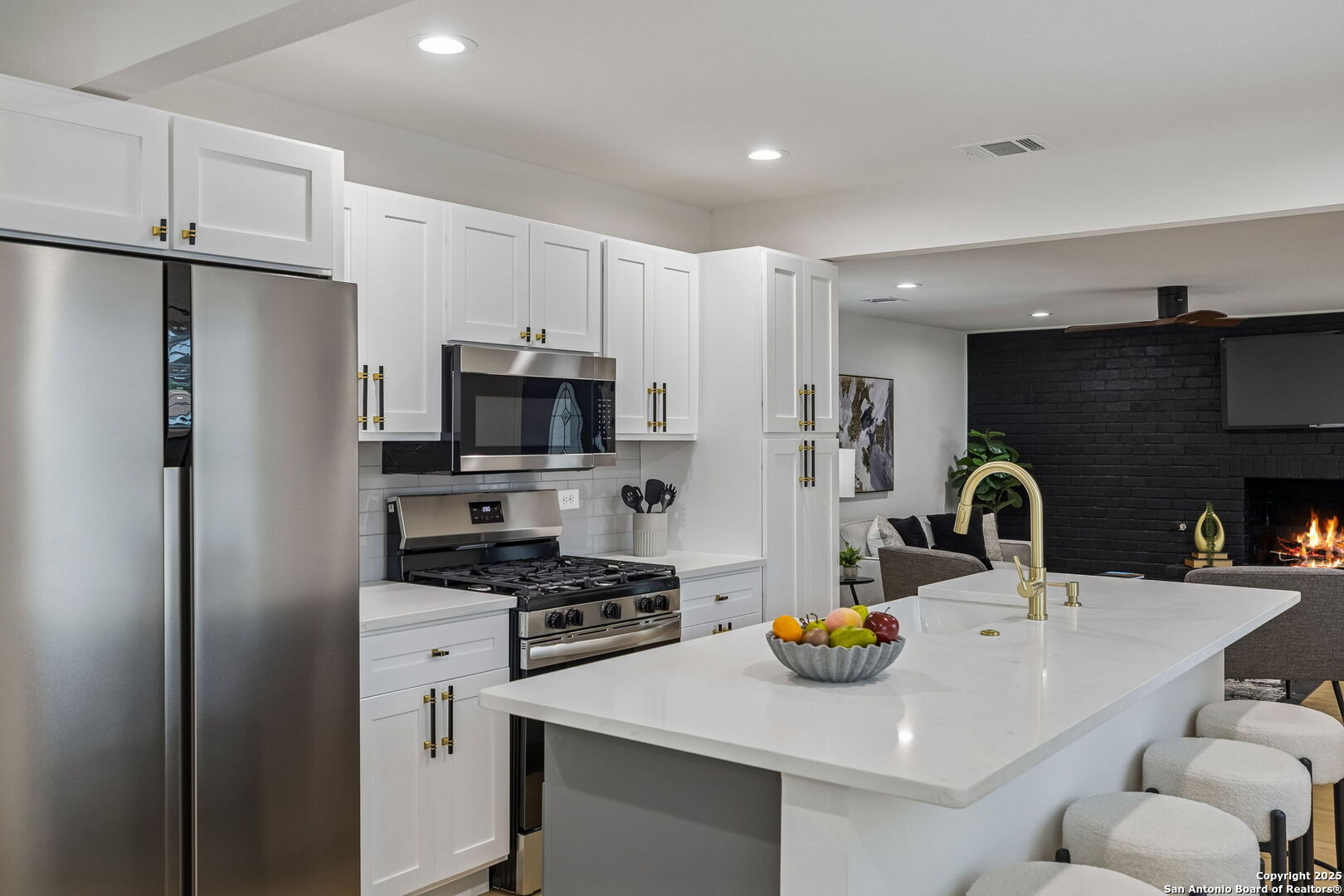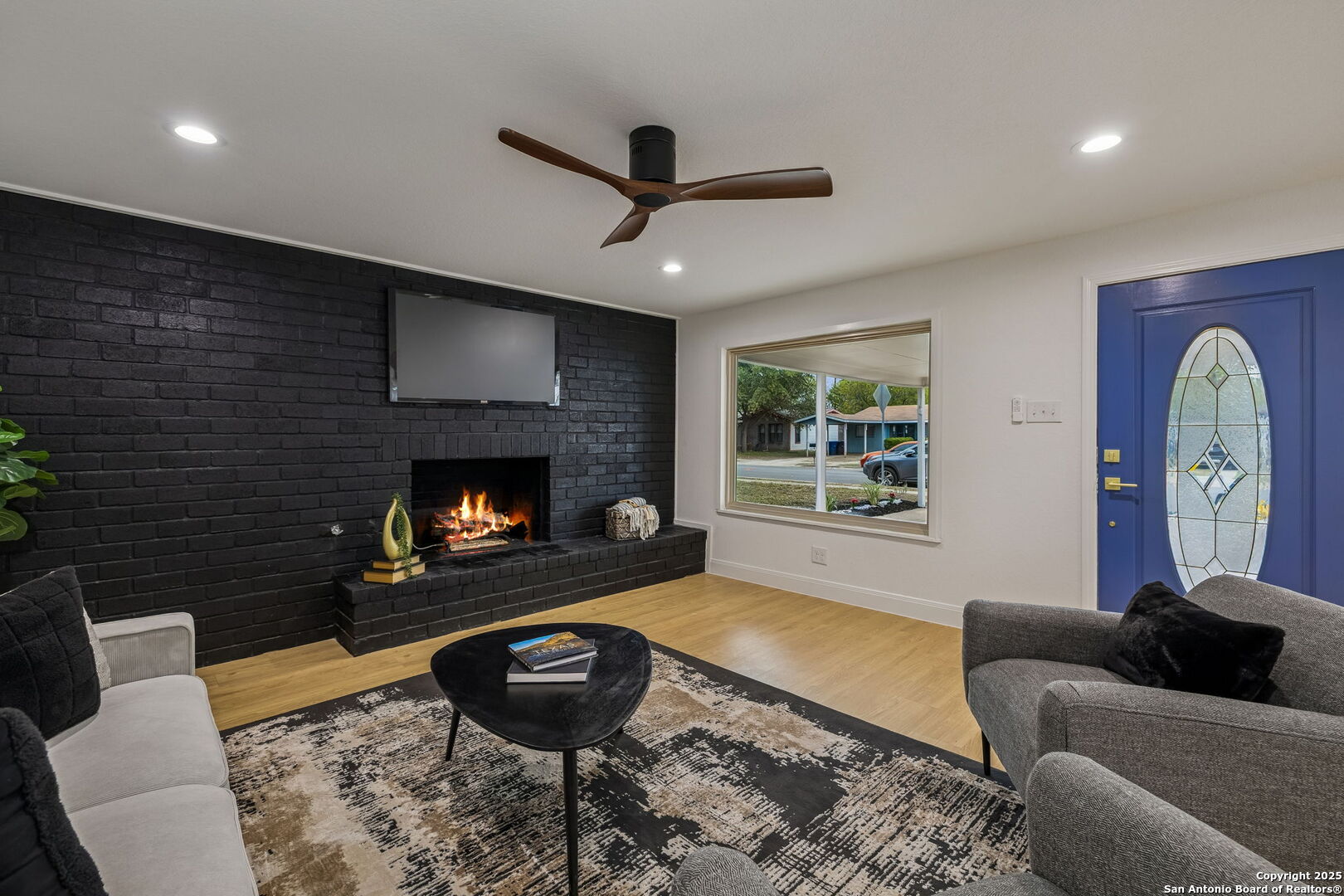Stylish and move-in ready, this beautifully reimagined home showcases a thoughtful range of modern updates throughout, creating an elevated, turnkey living experience from the moment you step inside. Everything in this home is new, including the HVAC, insulation, plumbing, foundation, and windows, along with new flooring, fresh interior and exterior paint, updated fixtures, new cabinetry and a modern open-concept layout that feels bright and inviting. Wide-plank luxury vinyl flooring, abundant natural light, and a bold black brick fireplace accent wall set the tone for the refined interior, while the open layout transitions seamlessly from relaxed everyday living to effortless entertaining and offers multiple living areas along with a versatile flex or bonus room ideal for a home office, media space, or additional sitting area. The private primary suite features a contemporary en-suite bath with a walk-in shower and a spacious walk-in closet, while the two additional bedrooms are thoughtfully arranged for comfort and flexibility. The kitchen is outfitted with new cabinetry, quartz countertops, and is fully equipped with Frigidaire appliances, connecting beautifully to the dining and main living spaces. A generous covered patio overlooks the spacious backyard with two dedicated storage rooms for added functionality. Located in a no-HOA community with convenient access to shopping, dining, parks, and major highways, this refined residence delivers modern design, craftsmanship, and everyday practicality in the heart of 78237. 3 Bedrooms | 2 Full + 1 Half Bath | Flex/Bonus Room | Approx. 2,006 Sq Ft | Covered Patio | 2 Storage Rooms | No HOA | Fully Remodeled