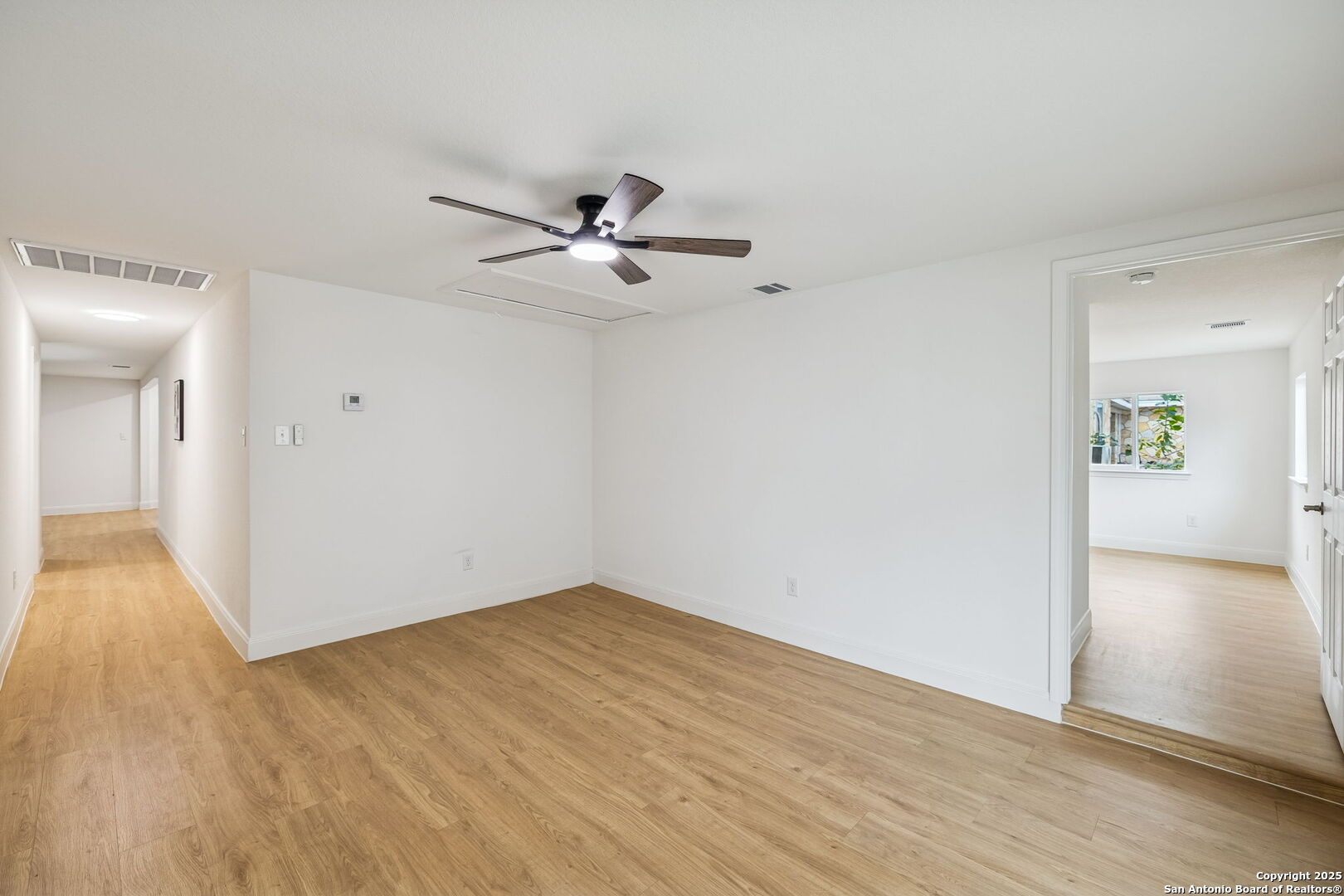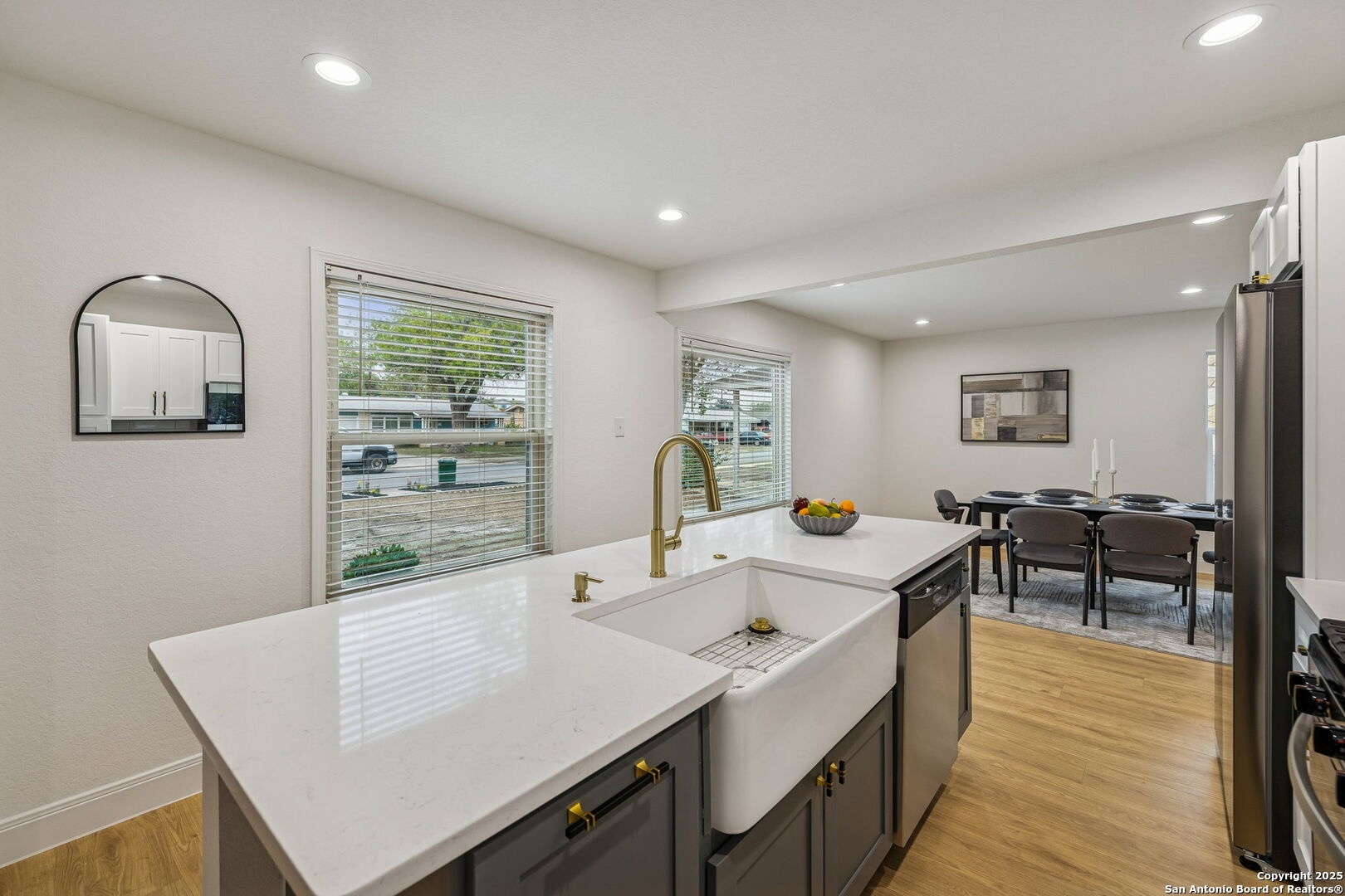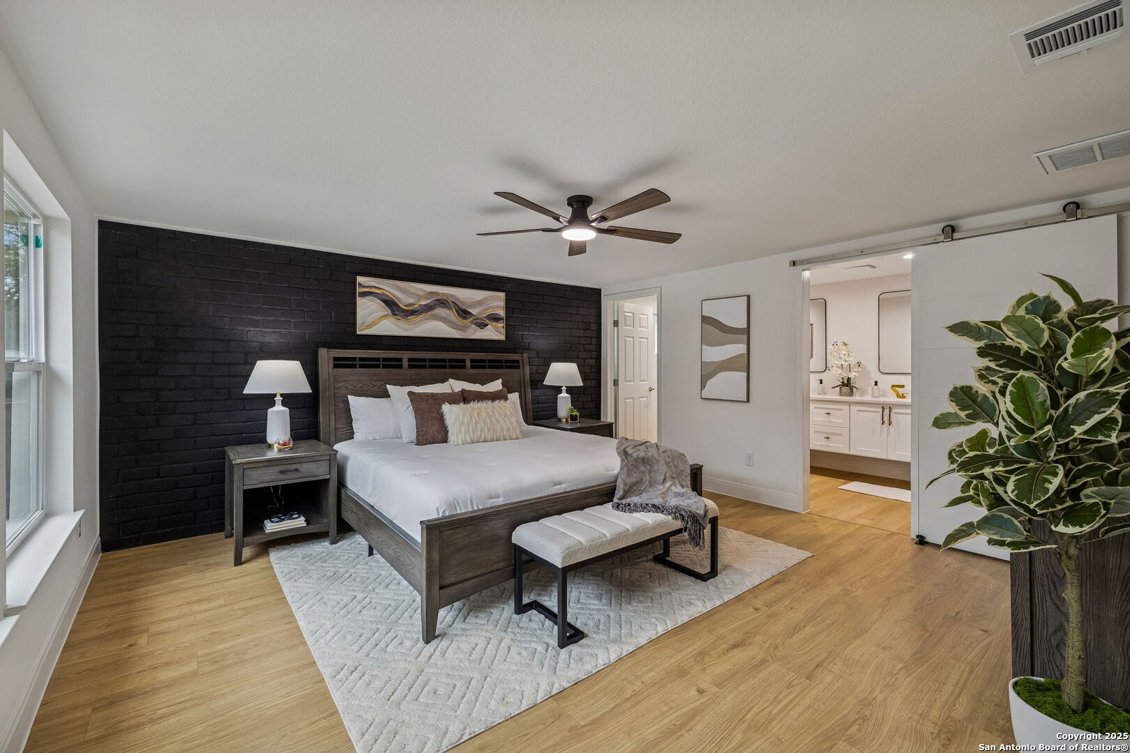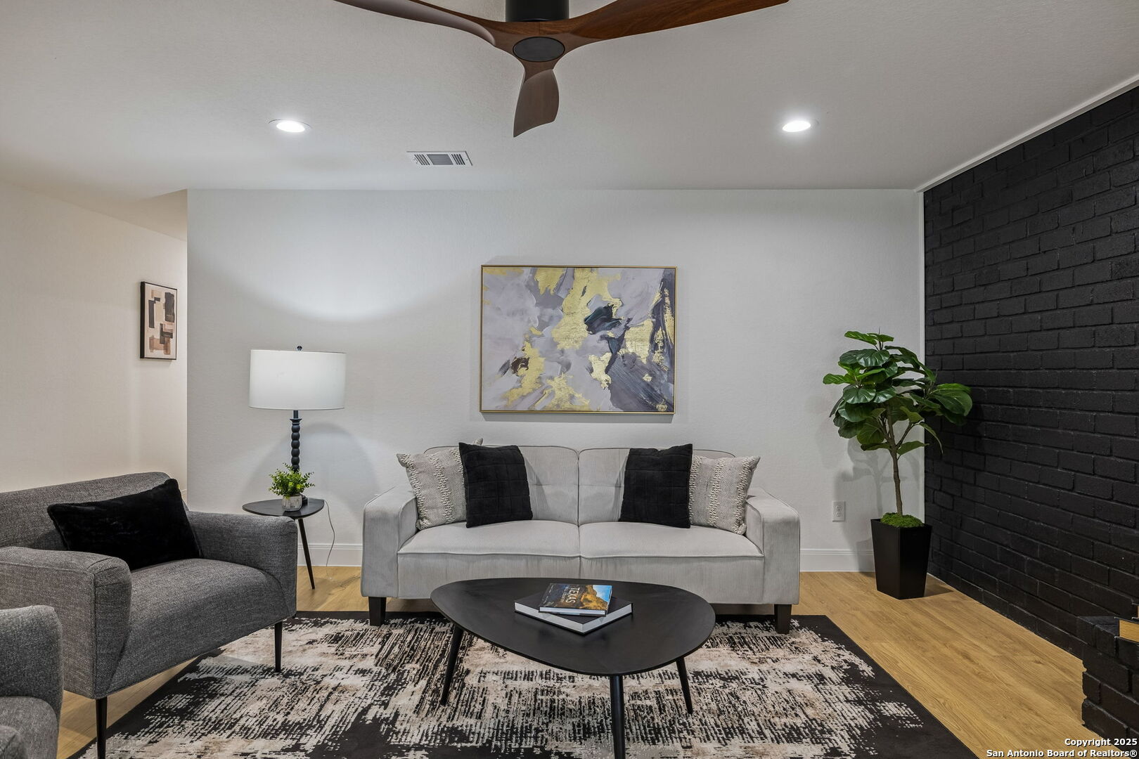 Stylish and move-in ready, this beautifully reimagined home showcases a thoughtful range of modern updates throughout, creating an elevated, turnkey living experience from the moment you step inside. Everything in this home is new, including the HVAC, insulation, plumbing, foundation, and windows, along with new flooring, fresh interior and exterior paint, updated fixtures, new cabinetry and a modern open-concept layout that feels bright and inviting. Wide-plank luxury vinyl flooring, abundant natural light, and a bold black brick fireplace accent wall set the tone for the refined interior, while the open layout transitions seamlessly from relaxed everyday living to effortless entertaining and offers multiple living areas along with a versatile flex or bonus room ideal for a home office, media space, or additional sitting area. The private primary suite features a contemporary en-suite bath with a walk-in shower and a spacious walk-in closet, while the two additional bedrooms are thoughtfully arranged for comfort and flexibility. The kitchen is outfitted with new cabinetry, quartz countertops, and is fully equipped with Frigidaire appliances, connecting beautifully to the dining and main living spaces. A generous covered patio overlooks the spacious backyard with two dedicated storage rooms for added functionality. Located in a no-HOA community with convenient access to shopping, dining, parks, and major highways, this refined residence delivers modern design, craftsmanship, and everyday practicality in the heart of 78237. 3 Bedrooms | 2 Full + 1 Half Bath | Flex/Bonus Room | Approx. 2,006 Sq Ft | Covered Patio | 2 Storage Rooms | No HOA | Fully Remodeled