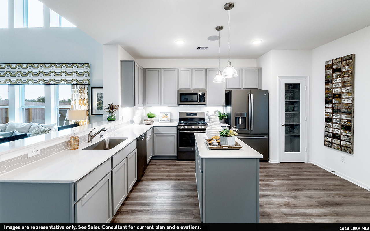 Our grandest home in the Cobalt Series, the Trinity floor plan boasts an impressive two-story floor plan that is sure to suit most any lifestyle. Upon entry, you are first greeted by the private study room that also has the option of transforming into a fifth bedroom if you would rather have the space for more guests to visit. Next, you will find the access to your convenient downstairs powder room, a walk-in utility room, as well as the entry to your two-car garage. Needing more storage for extra tools or supplies? Opt to swap your standard two-car garage for a sizable two-and-a-half-car garage! Down the hall, you will reach the heart of your home - the massive, two-story family room with soaring ceilings and consisting of plenty of natural light. Opening up to the family room is the convenient adjoined kitchen and breakfast area with access to your optional extended covered patio. Your elegant kitchen comes fully equipped with industry-leading appliances, sleek granite countertops with a ceramic tile backsplash, designer light fixtures, and the option to put in an island and extra cabinets if you desire more counterspace. With features like these, you will want to cook every meal! Completing the first floor is your secluded Master suite with your master bathroom containing the cultured marble countertops with option of dual vanities, a shower/bathtub enclosure, and a huge walk- in closet. Upgrade your bathroom space to include a master luxury bath with stand alone shower or a master super shower instead! Both options come with standard dual vanities for your convenience. Finally, up the stairs you will discover a fantastic gameroom perfect for hosting the ultimate game night, as well as the second, third, and fourth remaining bedrooms. The full secondary bathroom also lies upstairs between the second and third bedrooms. The Trinity has the perfect amount of space for the entire family. You won't compromise your comfort and functionality in the Trinity floor plan!