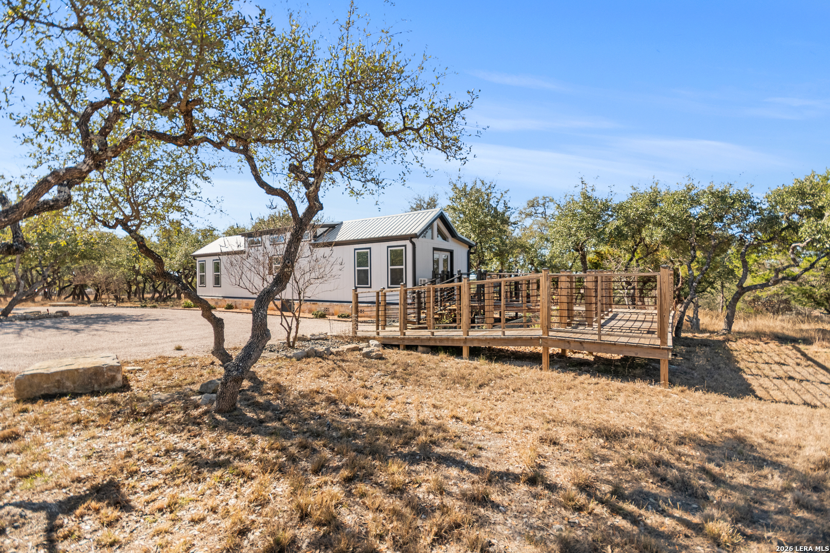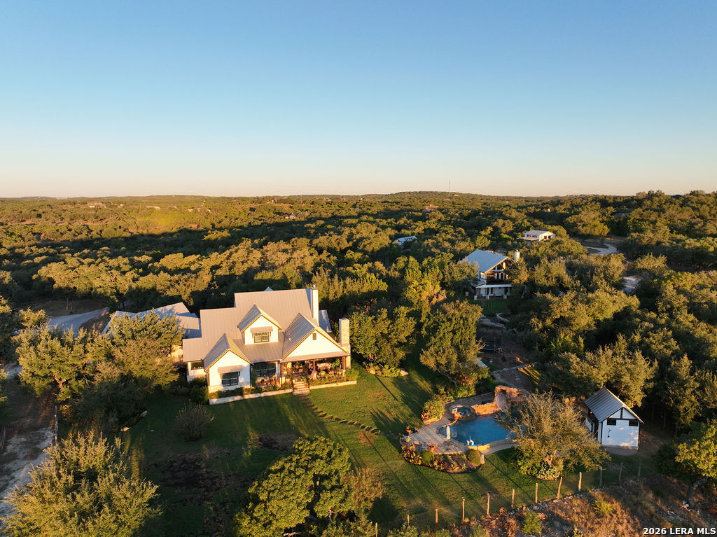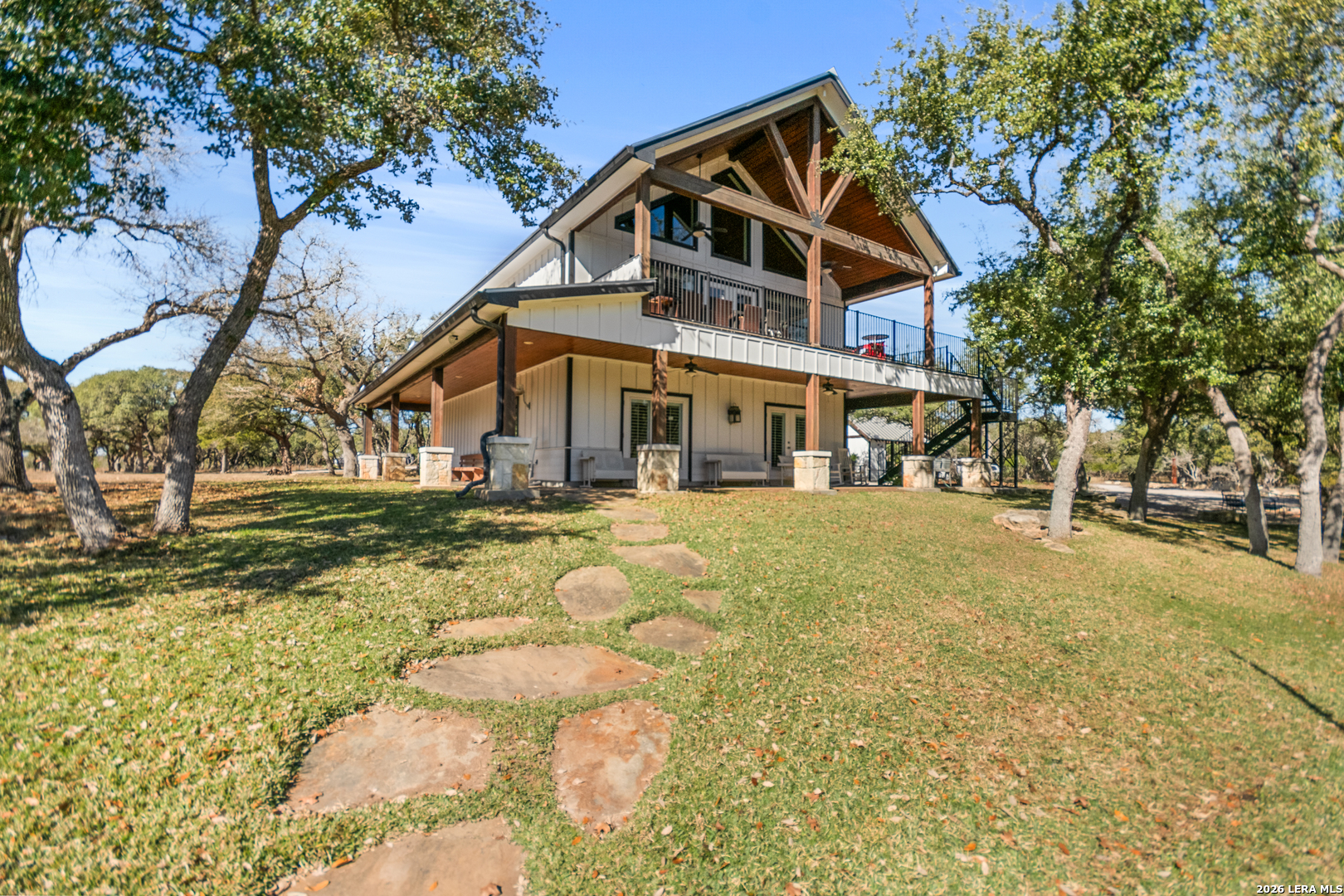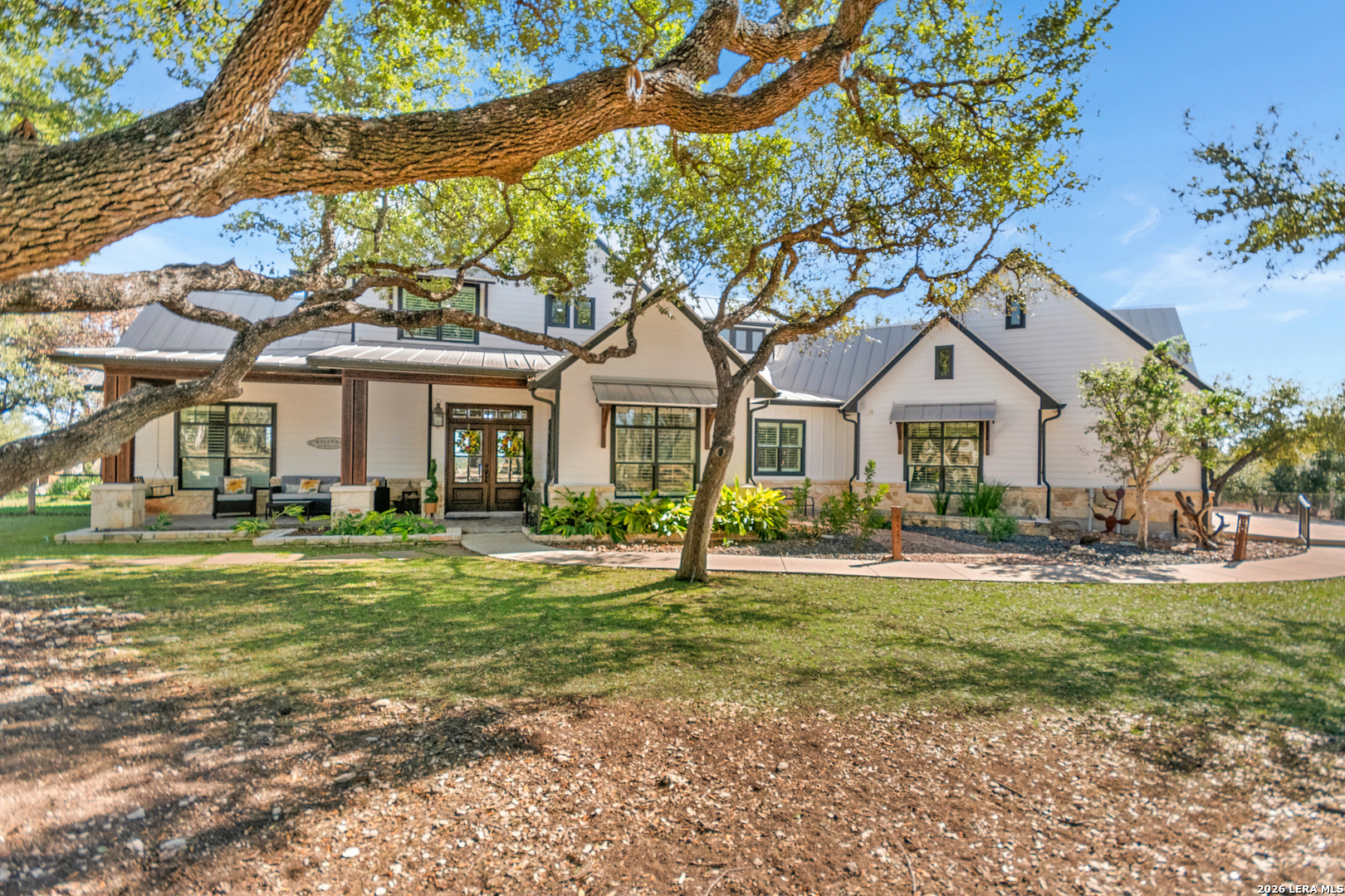 Imagine over 45 acres of wildlife-exempt land, with four independent residences, a private .7-acre stocked pond, a sports court, and expansive Hill Country land, designed to support multi-generational living, extended family, guests, airbnbs, or large gatherings. With a Boerne address and located in Bergheim, this property is situated just 35 minutes from San Antonio International Airport, 30 minutes from La Cantera and The Rim, 13 minutes from Bulverde, and three miles from Guadalupe River State Park. Fredericksburg wine country is approximately one hour away. Privacy is exceptional, yet access remains practical. The main residence spans 4,327 square feet and includes four bedrooms, featuring dual private suites, and four and a half baths. A resort-style pool, grotto, cabana, and outdoor kitchen are positioned as a natural extension of the home, and the wrap-around lanai is accessible from both suites and offers miles of views. An upstairs flex space with a full bath offers options for a game room, bunk room, or additional bedroom. The 2,416-square-foot guest house features upstairs living quarters with two bedrooms, two bathrooms, and a second-story covered porch, all offering expansive views of the hill country. The lower level includes an office, gym, and conference area, and a wrap-around porch on three sides, ideal for remote work, hosting, or retreat-style use. The 1,991-square-foot lakeside cottage features two bedrooms, two bathrooms, an office, and offers privacy, independence from the main home, and beautiful sunrise and sunset water views from the dining room. It also includes private parking and is wheelchair accessible. The 699-square-foot tiny home is sunset-facing, and fully equipped with one bedroom and two fullbaths; and is wheelchair accessible. Additional improvements include a barn with an incorporated workshop and viewing porch, a heated & vented greenhouse and irrigated garden, chicken coop, fenced acreage for livestock, lighted sports court for pickleball and basketball, orchard, recirculating natural-feauture creek that feeds to the pond, wood-chipped trails, and thoughtfully placed outdoor gathering areas. This is a legacy-quality property built to evolve across life stages, supporting multi-generational living, extended family, and long-term stewardship. Exceptional infrastructure, including all underground utilities with room for service expansion, a high-producing well, storage tanks, home generators, fiber connectivity, paved internal roads, extensive landscape lighting, and irrigation already in place. Infrastructure of this caliber, combined with water, wildlife tax exemption status, and location, is scarce and difficult to establish without high cost and years of development.