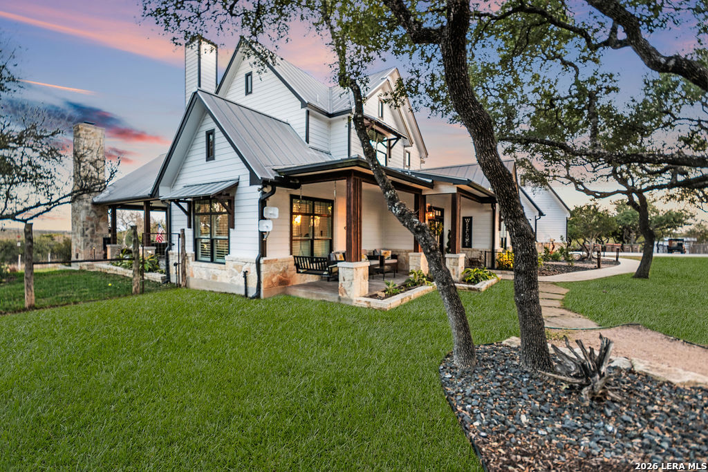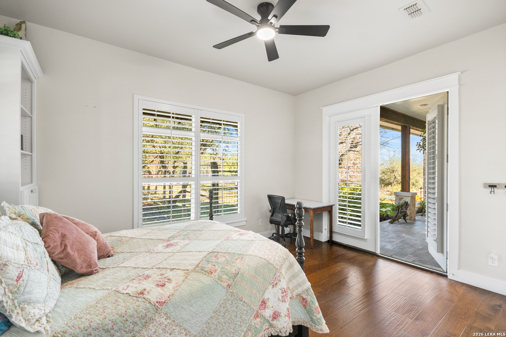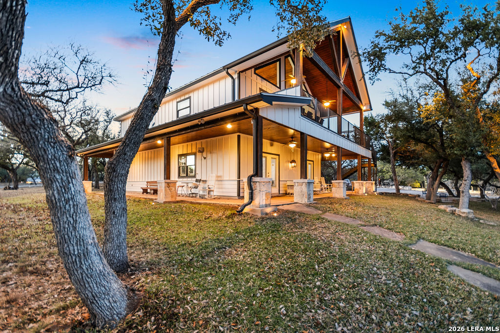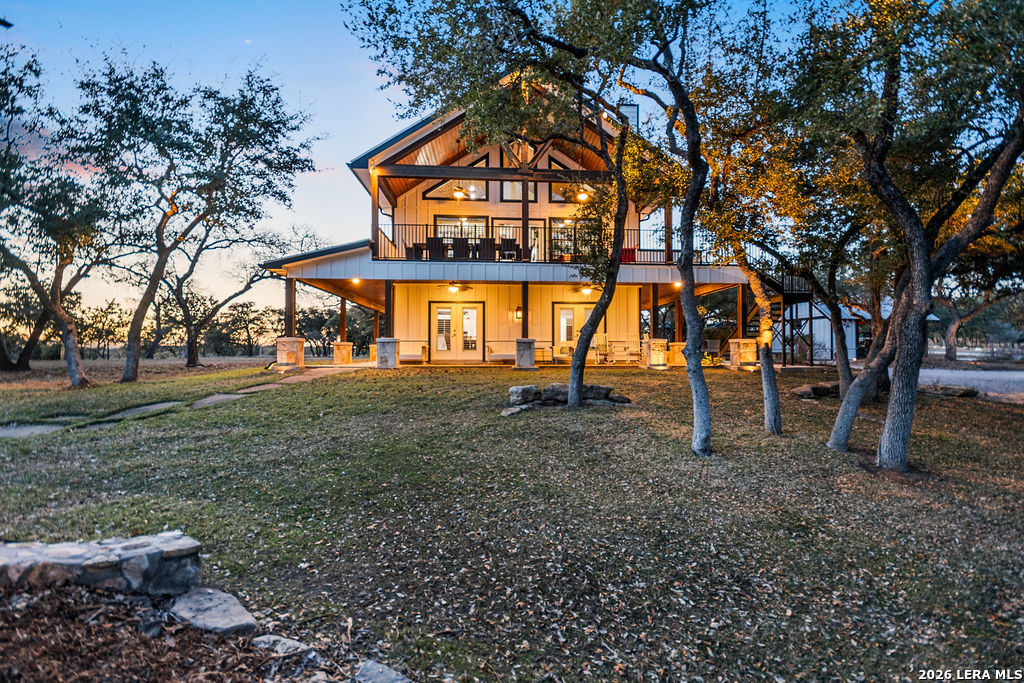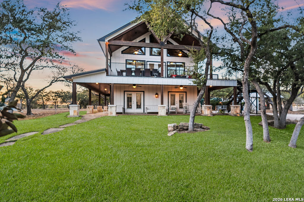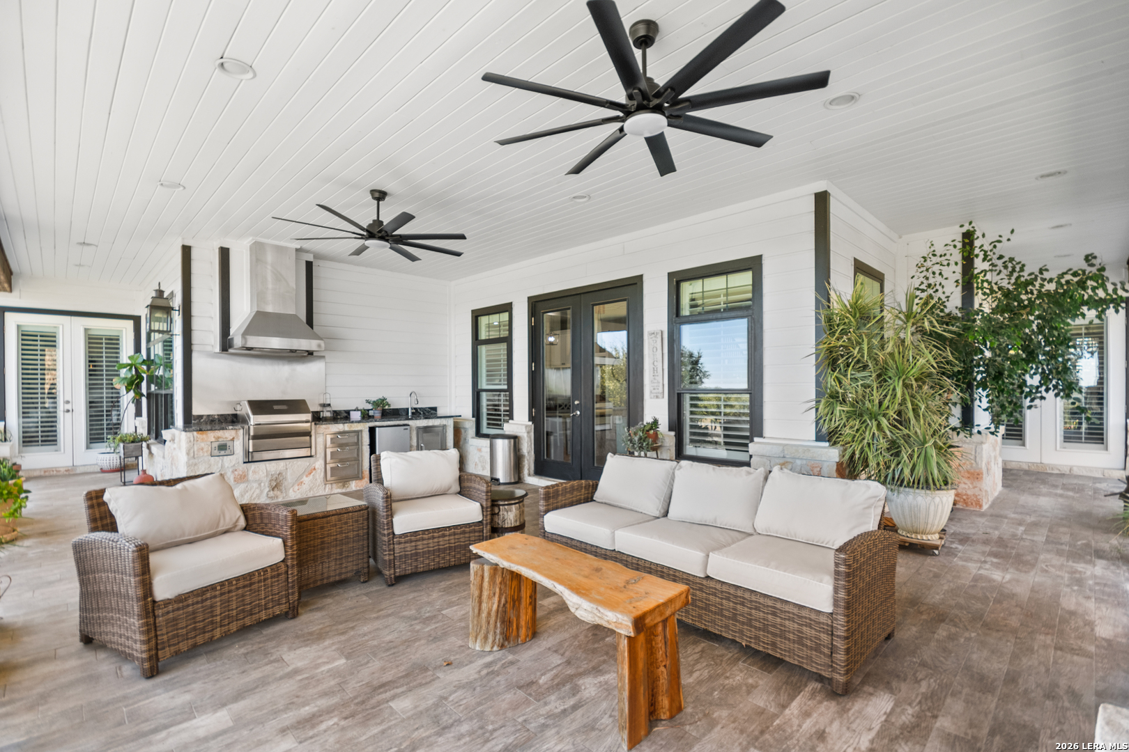 Imagine over 45 acres of wildlife-exempt land, with four independent residences, a private .7-acre stocked pond, a sports court, and expansive Hill Country land, designed to support multi-generational living, extended family, guests, airbnbs, or large gatherings. With a Boerne address and located in Bergheim, this property is situated just 35 minutes from San Antonio International Airport, 30 minutes from La Cantera and The Rim, 13 minutes from Bulverde, and three miles from Guadalupe River State Park. Fredericksburg wine country is approximately one hour away. Privacy is exceptional, yet access remains practical. The main residence spans 4,327 square feet and includes four bedrooms, featuring dual private suites, and four and a half baths. A resort-style pool, grotto, cabana, and outdoor kitchen are positioned as a natural extension of the home, and the wrap-around lanai is accessible from both suites and offers miles of views. An upstairs flex space with a full bath offers options for a game room, bunk room, or additional bedroom. The 2,416-square-foot guest house features upstairs living quarters with two bedrooms, two bathrooms, and a second-story covered porch, all offering expansive views of the hill country. The lower level includes an office, gym, and conference area, and a wrap-around porch on three sides, ideal for remote work, hosting, or retreat-style use. The 1,991-square-foot lakeside cottage features two bedrooms, two bathrooms, an office, and offers privacy, independence from the main home, and beautiful sunrise and sunset water views from the dining room. It also includes private parking and is wheelchair accessible. The 699-square-foot tiny home is sunset-facing, and fully equipped with one bedroom and two fullbaths; and is wheelchair accessible. Additional improvements include a barn with an incorporated workshop and viewing porch, a heated & vented greenhouse and irrigated garden, chicken coop, fenced acreage for livestock, lighted sports court for pickleball and basketball, orchard, recirculating natural-feauture creek that feeds to the pond, wood-chipped trails, and thoughtfully placed outdoor gathering areas. This is a legacy-quality property built to evolve across life stages, supporting multi-generational living, extended family, and long-term stewardship. Exceptional infrastructure, including all underground utilities with room for service expansion, a high-producing well, storage tanks, home generators, fiber connectivity, paved internal roads, extensive landscape lighting, and irrigation already in place. Infrastructure of this caliber, combined with water, wildlife tax exemption status, and location, is scarce and difficult to establish without high cost and years of development.