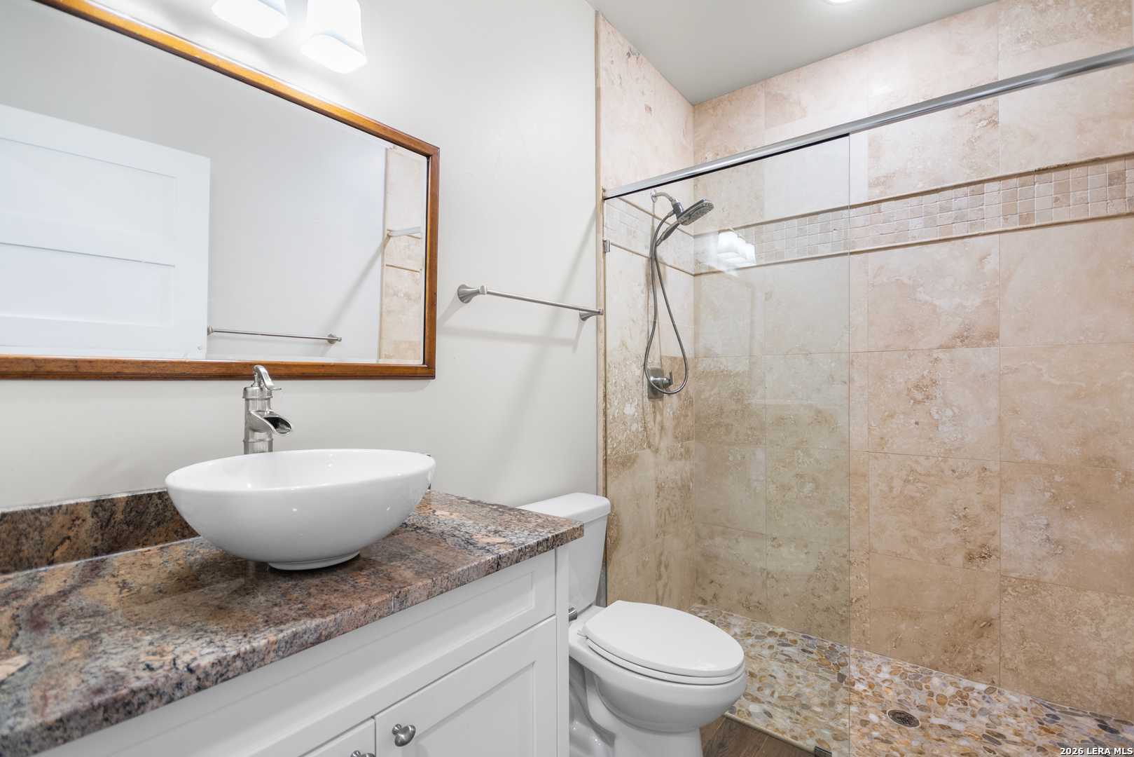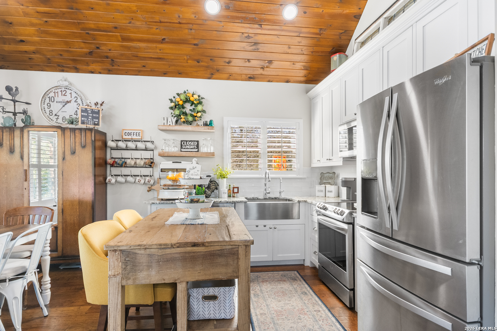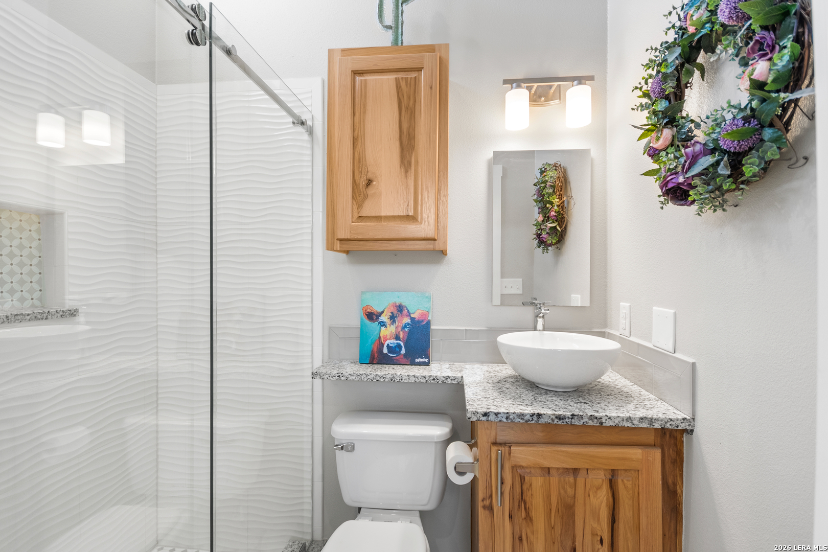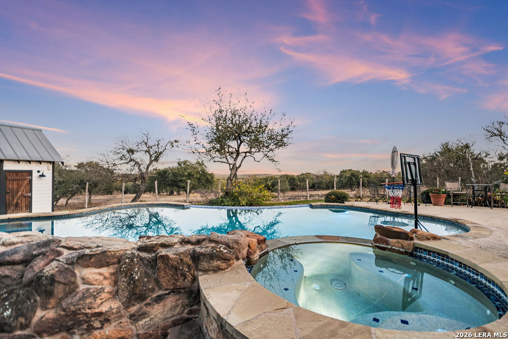Imagine over 45 acres of wildlife-exempt land, with four independent residences, a private .7-acre stocked pond, a sports court, and expansive Hill Country land, designed to support multi-generational living, extended family, guests, airbnbs, or large gatherings. With a Boerne address and located in Bergheim, this property is situated just 35 minutes from San Antonio International Airport, 30 minutes from La Cantera and The Rim, 13 minutes from Bulverde, and three miles from Guadalupe River State Park. Fredericksburg wine country is approximately one hour away. Privacy is exceptional, yet access remains practical. The main residence spans 4,327 square feet and includes four bedrooms, featuring dual private suites, and four and a half baths. A resort-style pool, grotto, cabana, and outdoor kitchen are positioned as a natural extension of the home, and the wrap-around lanai is accessible from both suites and offers miles of views. An upstairs flex space with a full bath offers options for a game room, bunk room, or additional bedroom. The 2,416-square-foot guest house features upstairs living quarters with two bedrooms, two bathrooms, and a second-story covered porch, all offering expansive views of the hill country. The lower level includes an office, gym, and conference area, and a wrap-around porch on three sides, ideal for remote work, hosting, or retreat-style use. The 1,991-square-foot lakeside cottage features two bedrooms, two bathrooms, an office, and offers privacy, independence from the main home, and beautiful sunrise and sunset water views from the dining room. It also includes private parking and is wheelchair accessible. The 699-square-foot tiny home is sunset-facing, and fully equipped with one bedroom and two fullbaths; and is wheelchair accessible. Additional improvements include a barn with an incorporated workshop and viewing porch, a heated & vented greenhouse and irrigated garden, chicken coop, fenced acreage for livestock, lighted sports court for pickleball and basketball, orchard, recirculating natural-feauture creek that feeds to the pond, wood-chipped trails, and thoughtfully placed outdoor gathering areas. This is a legacy-quality property built to evolve across life stages, supporting multi-generational living, extended family, and long-term stewardship. Exceptional infrastructure, including all underground utilities with room for service expansion, a high-producing well, storage tanks, home generators, fiber connectivity, paved internal roads, extensive landscape lighting, and irrigation already in place. Infrastructure of this caliber, combined with water, wildlife tax exemption status, and location, is scarce and difficult to establish without high cost and years of development.