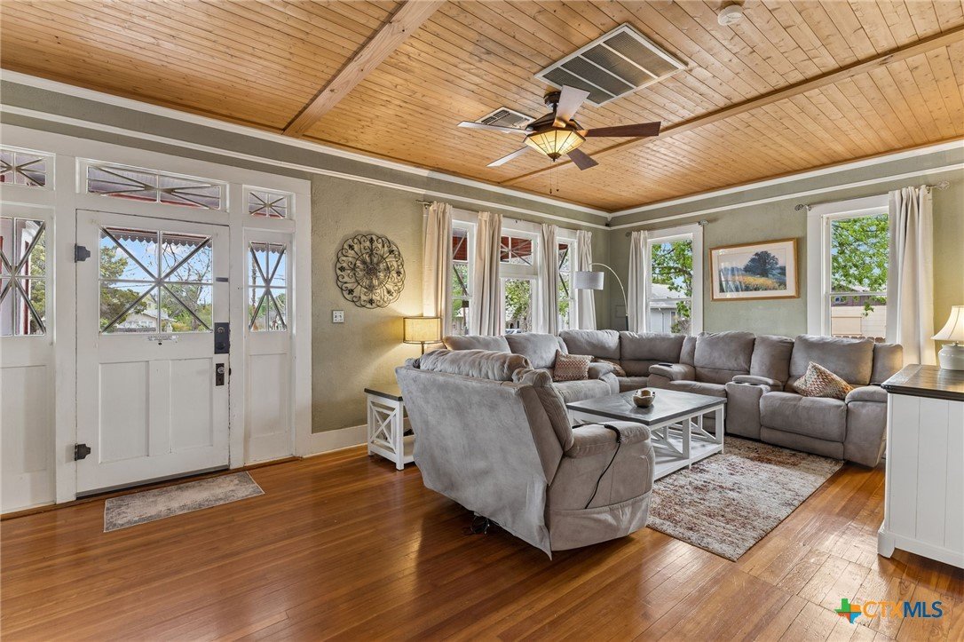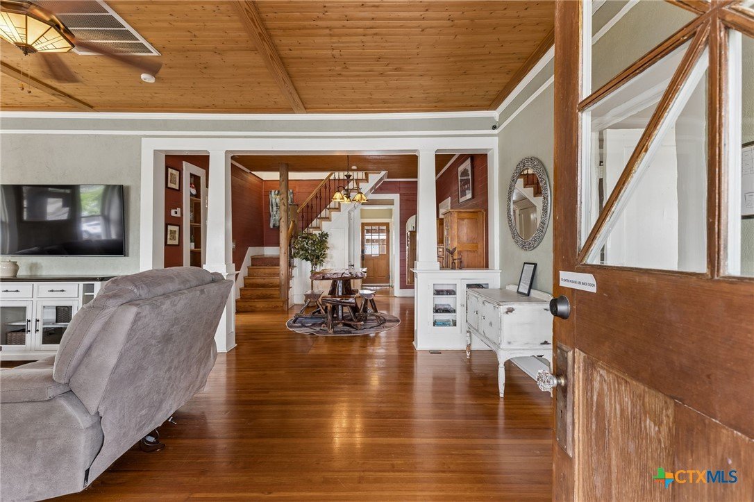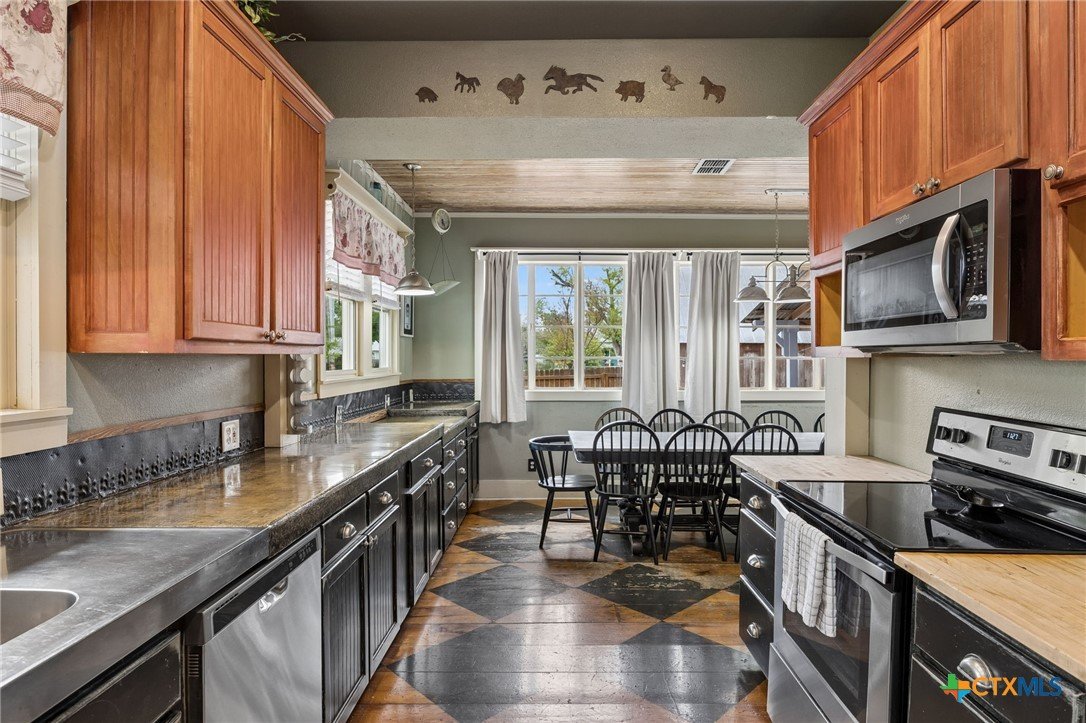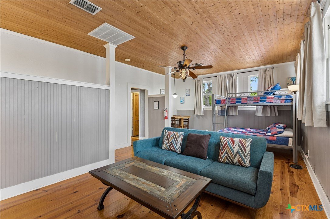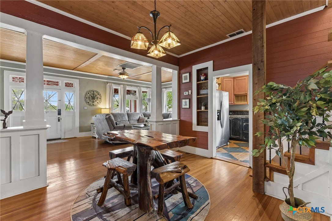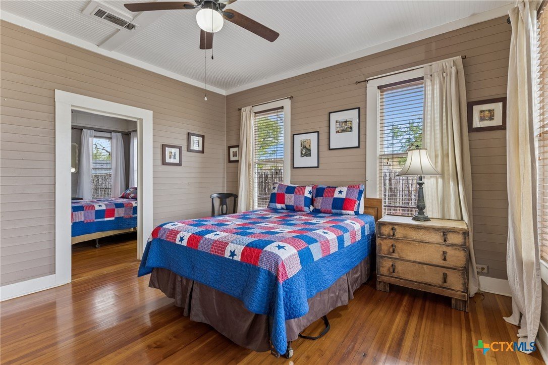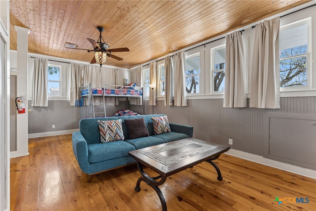 Amazing home located just minutes from downtown New Braunfels! Enjoy the convenience of being within walking distance to Schlitterbahn, the Comal River, shopping, golfing, and more. Whether you're searching for your forever home or a short-term rental investment, this fully furnished property is turnkey and ready to go. The home features 5 spacious bedrooms and 2.5 bathrooms, along with a large kitchen perfect for entertaining large gatherings. Multiple living and dining spaces include two dining areas, a comfortable main living room downstairs, and a second living area upstairs that doubles as a Living / bunkroom. Beautiful wood details throughout add warmth and character, complementing the home’s charming historic design and thoughtful floor plan. From the moment you walk in, this inviting property will bring a smile to your face and make you feel right at home.
