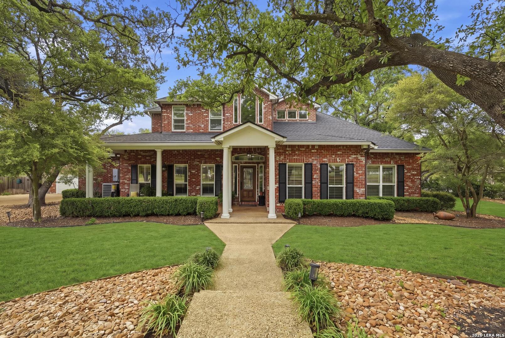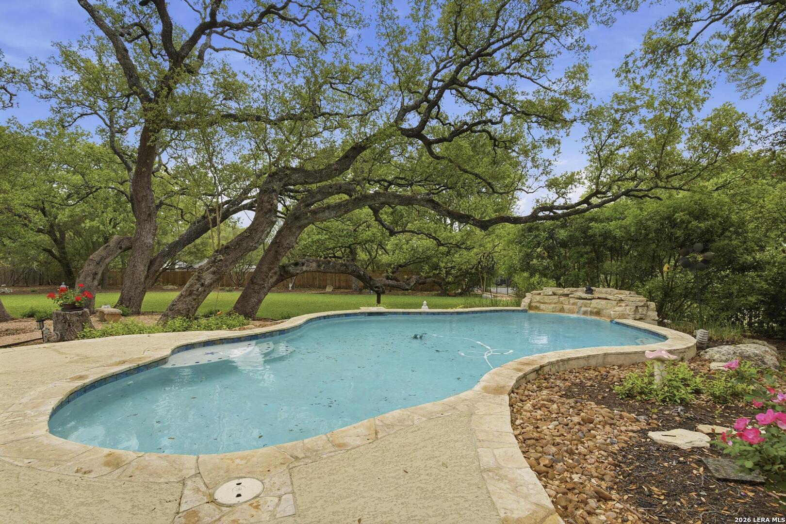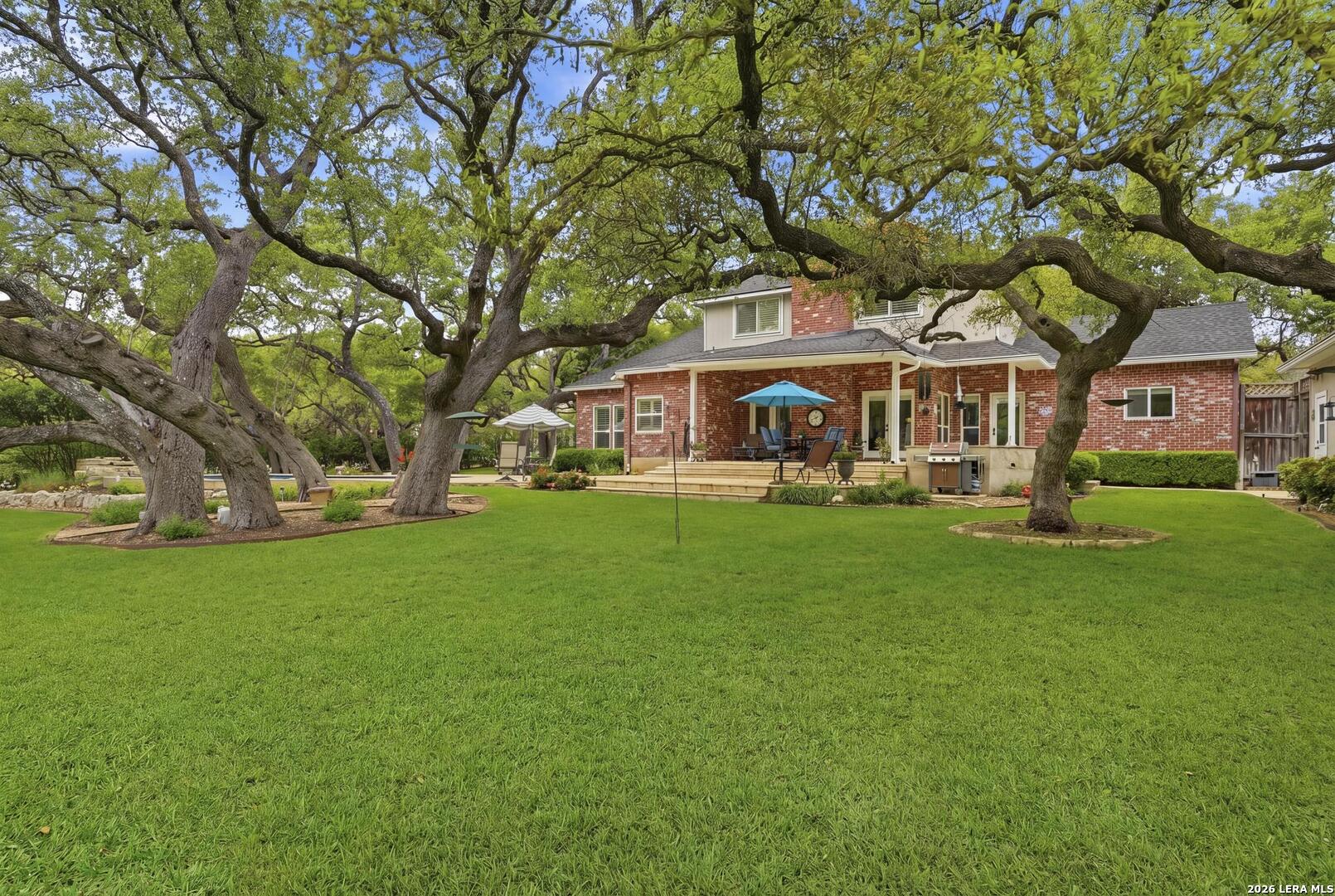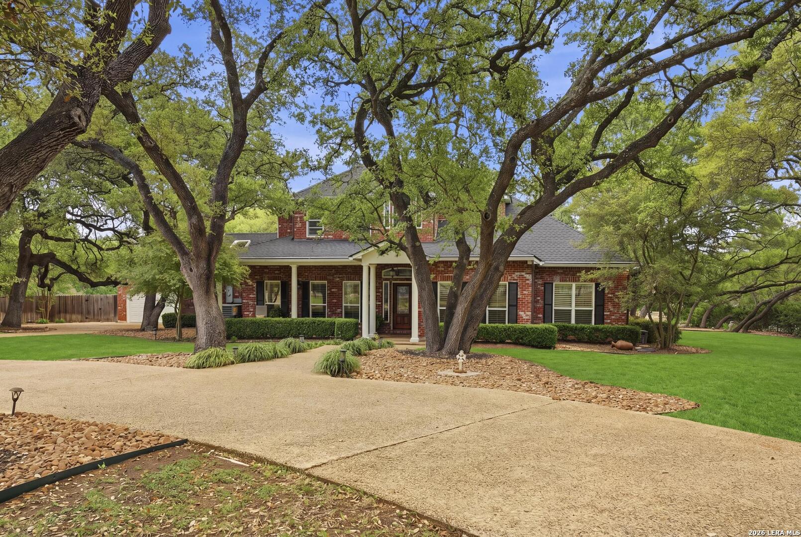 Nestled beneath majestic live oaks in the prestigious, guard-gated community of Raintree Woods, this exceptional custom Hill Country estate offers nearly an acre of privacy, elegance, and resort-style living in the heart of Fair Oaks Ranch. Designed for both luxury and livability, the open-concept floor plan features soaring ceilings, expansive windows, and abundant natural light, creating a warm yet sophisticated ambiance throughout. The grand living room showcases rich hardwood floors, custom built-ins, and a wood-burning fireplace, perfect for refined entertaining or relaxed evenings at home. At the center of it all, the chef-inspired kitchen is equipped with Quartzite countertops, custom wood cabinetry, double ovens, an induction cooktop, and an oversized island with prep sink-ideal for hosting gatherings and everyday living alike. The luxurious primary suite is a private retreat, featuring a spa-like bath with soaking tub, oversized walk-in shower, and generous walk-in closet. A main-level guest suite with ensuite bath offers flexibility for multigenerational living, executive office space, or private accommodations. Work from home in the dedicated study with hardwood flooring, The upstairs game/media room with built-in shelves and desk area provides the perfect setting for movie nights, homework or entertaining. Two additional bedrooms with walk-in closets and a true Jack-and-Jill bath with Italian Tile & Quartzite counters complete the upper level. Step outside to your fully fenced and gated .996-acre private backyard oasis, where a sparkling pool, covered patio, lush gardens, and mature trees create a serene, resort-style retreat with ample space for outdoor living, entertaining, gardening, or future enhancements. Enjoy the luxury lifestyle of Fair Oaks Ranch, with optional membership to the Fair Oaks Ranch Golf & Country Club featuring 36 holes of championship golf, tennis, pickleball, fitness center, resort-style pools, and a vibrant social scene. Luxury, privacy, and Hill Country charm-this is the one buyers have been waiting for!