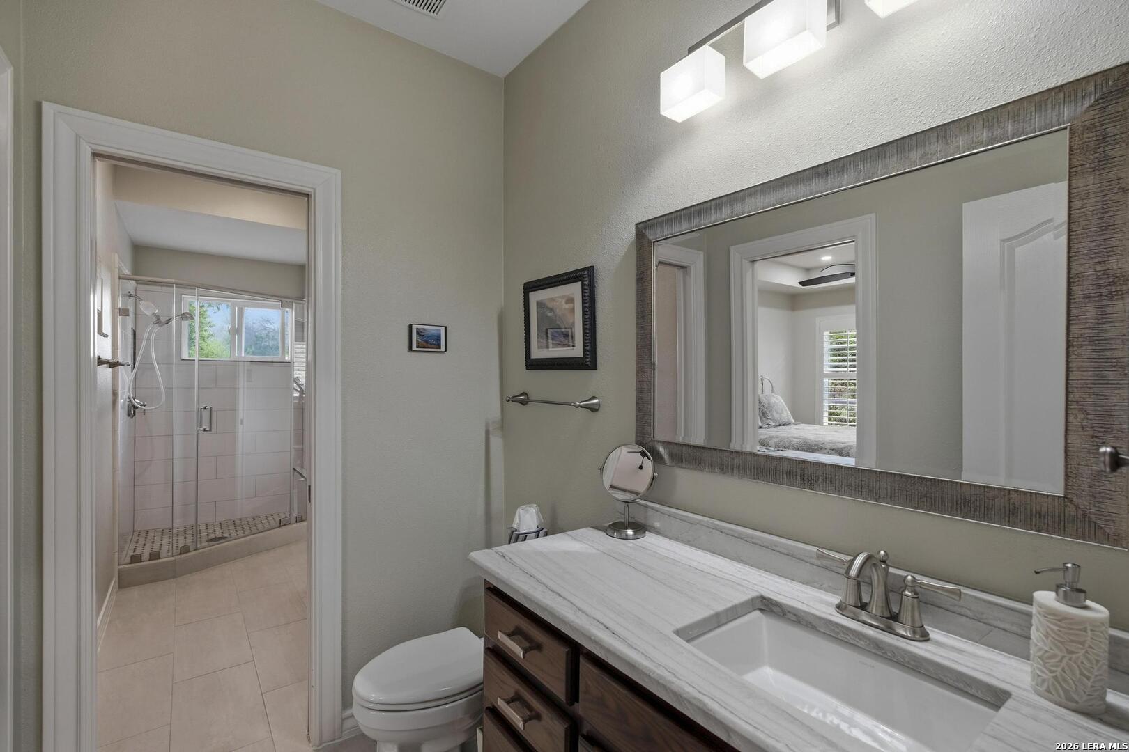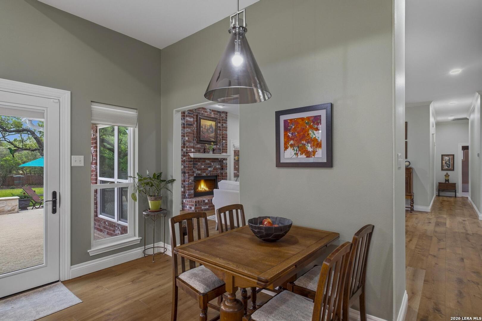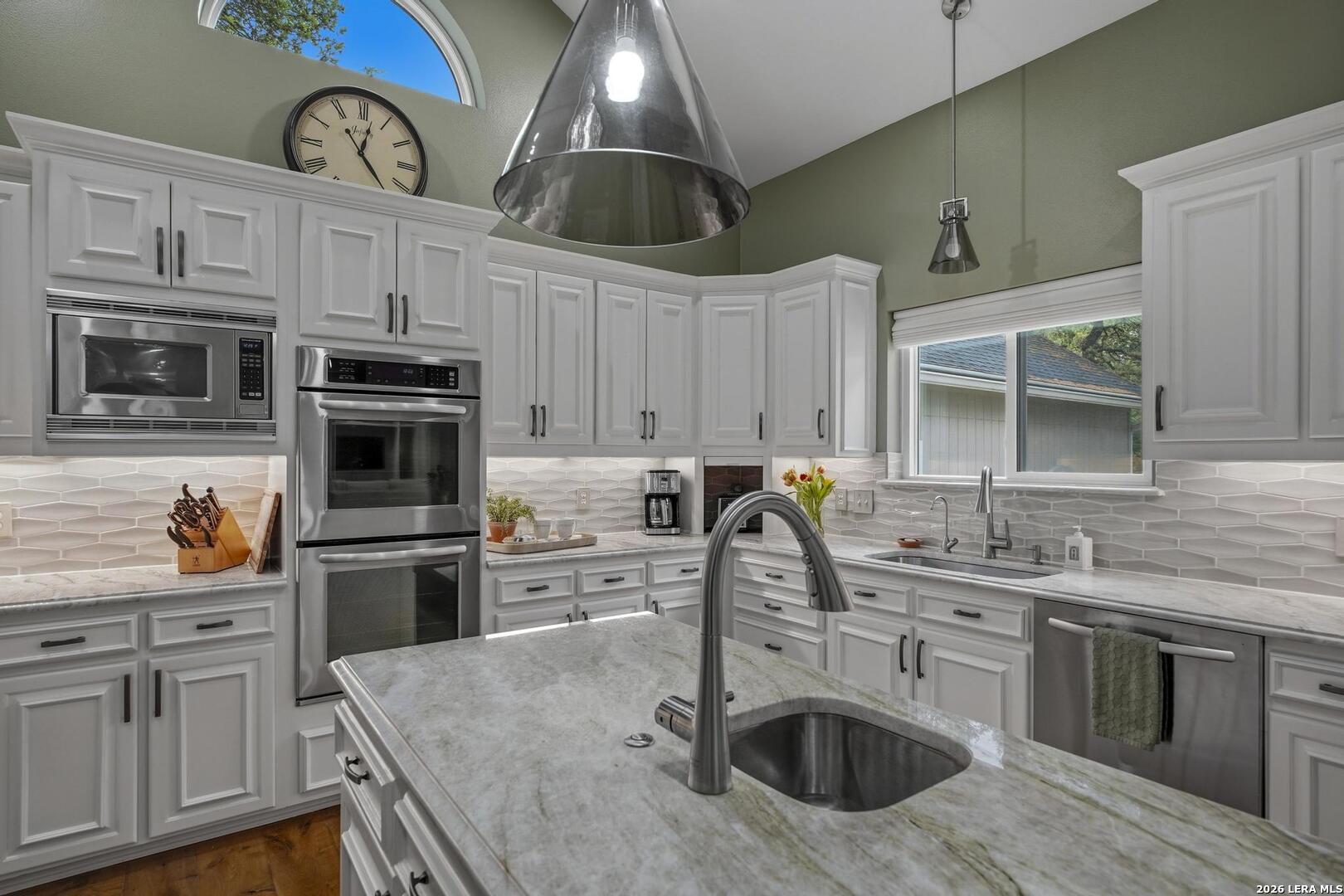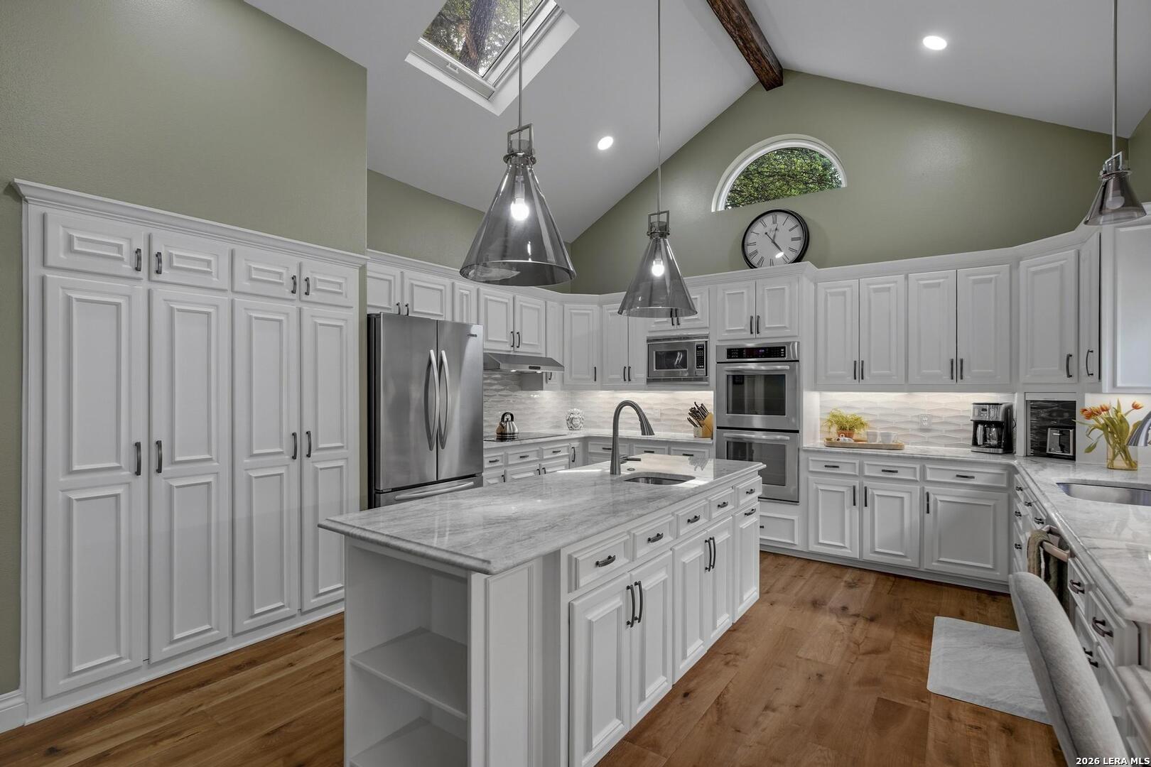 Nestled beneath majestic live oaks in the prestigious, guard-gated community of Raintree Woods, this exceptional custom Hill Country estate offers nearly an acre of privacy, elegance, and resort-style living in the heart of Fair Oaks Ranch. Designed for both luxury and livability, the open-concept floor plan features soaring ceilings, expansive windows, and abundant natural light, creating a warm yet sophisticated ambiance throughout. The grand living room showcases rich hardwood floors, custom built-ins, and a wood-burning fireplace, perfect for refined entertaining or relaxed evenings at home. At the center of it all, the chef-inspired kitchen is equipped with Quartzite countertops, custom wood cabinetry, double ovens, an induction cooktop, and an oversized island with prep sink-ideal for hosting gatherings and everyday living alike. The luxurious primary suite is a private retreat, featuring a spa-like bath with soaking tub, oversized walk-in shower, and generous walk-in closet. A main-level guest suite with ensuite bath offers flexibility for multigenerational living, executive office space, or private accommodations. Work from home in the dedicated study with hardwood flooring, The upstairs game/media room with built-in shelves and desk area provides the perfect setting for movie nights, homework or entertaining. Two additional bedrooms with walk-in closets and a true Jack-and-Jill bath with Italian Tile & Quartzite counters complete the upper level. Step outside to your fully fenced and gated .996-acre private backyard oasis, where a sparkling pool, covered patio, lush gardens, and mature trees create a serene, resort-style retreat with ample space for outdoor living, entertaining, gardening, or future enhancements. Enjoy the luxury lifestyle of Fair Oaks Ranch, with optional membership to the Fair Oaks Ranch Golf & Country Club featuring 36 holes of championship golf, tennis, pickleball, fitness center, resort-style pools, and a vibrant social scene. Luxury, privacy, and Hill Country charm-this is the one buyers have been waiting for!