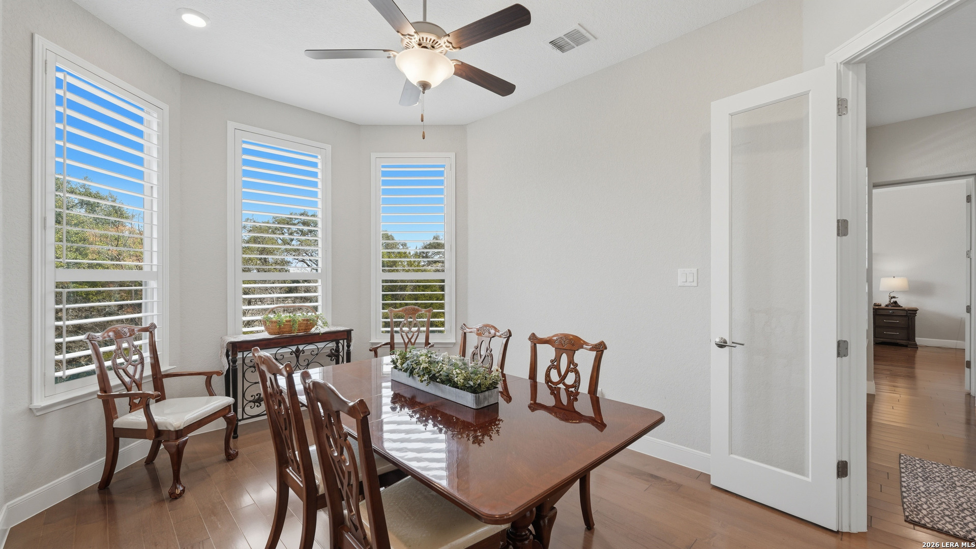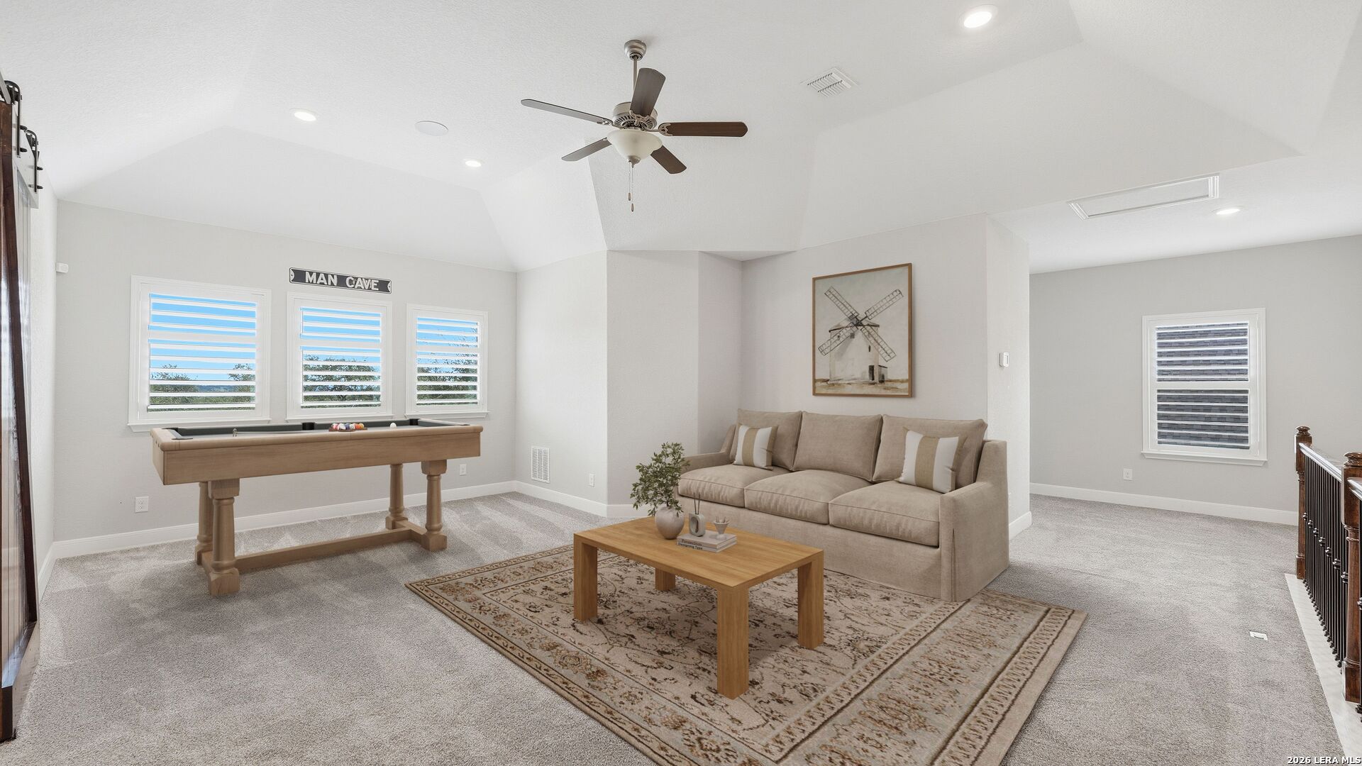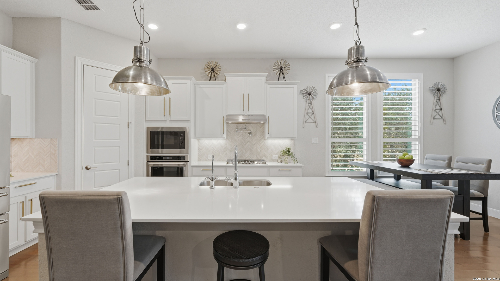 Stunning Ventana Model Home on Cul-de-Sac + Pool + Greenbelt Views! Welcome home to Ventana in Bulverde - one of the area's most sought-after communities - where this stunning former model home is packed with thoughtful upgrades and timeless design. No expense was spared, and every detail was carefully selected to create a home that feels both elevated and inviting. This beautiful two-story home offers 3,106 sq ft with 4 bedrooms and 3 full bathrooms downstairs, plus an upstairs layout designed for entertaining with a spacious game room, media room, and half bath. The open-concept floor plan creates a seamless flow into the spacious living room, anchored by a gorgeous fireplace. The gourmet kitchen is a dream - featuring quartz countertops, abundant cabinetry, stainless steel appliances, a gas cooktop with pot filler, and the perfect layout for both everyday living and hosting guests. Just off the kitchen, you'll find a versatile office space currently styled as a formal dining room - offering flexibility to fit your lifestyle. The primary suite is a spa-inspired retreat featuring an oversized walk-in shower with dual shower heads plus a rainfall shower, dual vanities and generous walk-in closet. Upstairs, enjoy plenty of room to spread out with the media room and game area - ideal for movie nights, watching the big game, or entertaining. Step outside and start living the Hill Country lifestyle: a covered patio overlooking your own private swimming pool, plus there are no neighbors to one side, greenbelt space behind, and on a cul-de-sac location. With so much to offer, this timeless home is truly move-in ready and waiting for its new owner. Conveniently located near top-rated Comal ISD schools, shopping, dining, and more. Schedule your showing today!