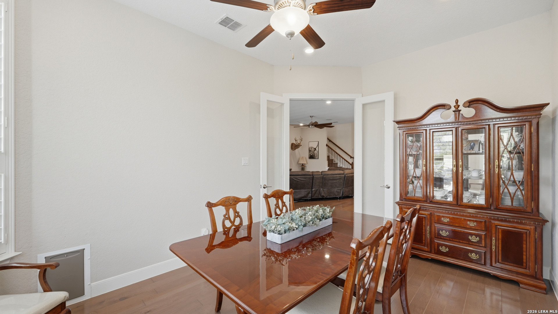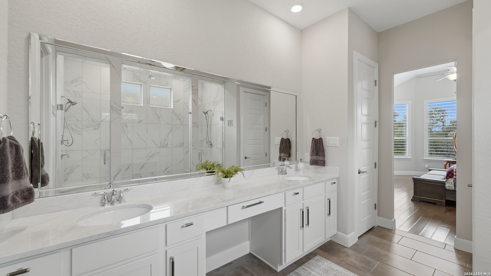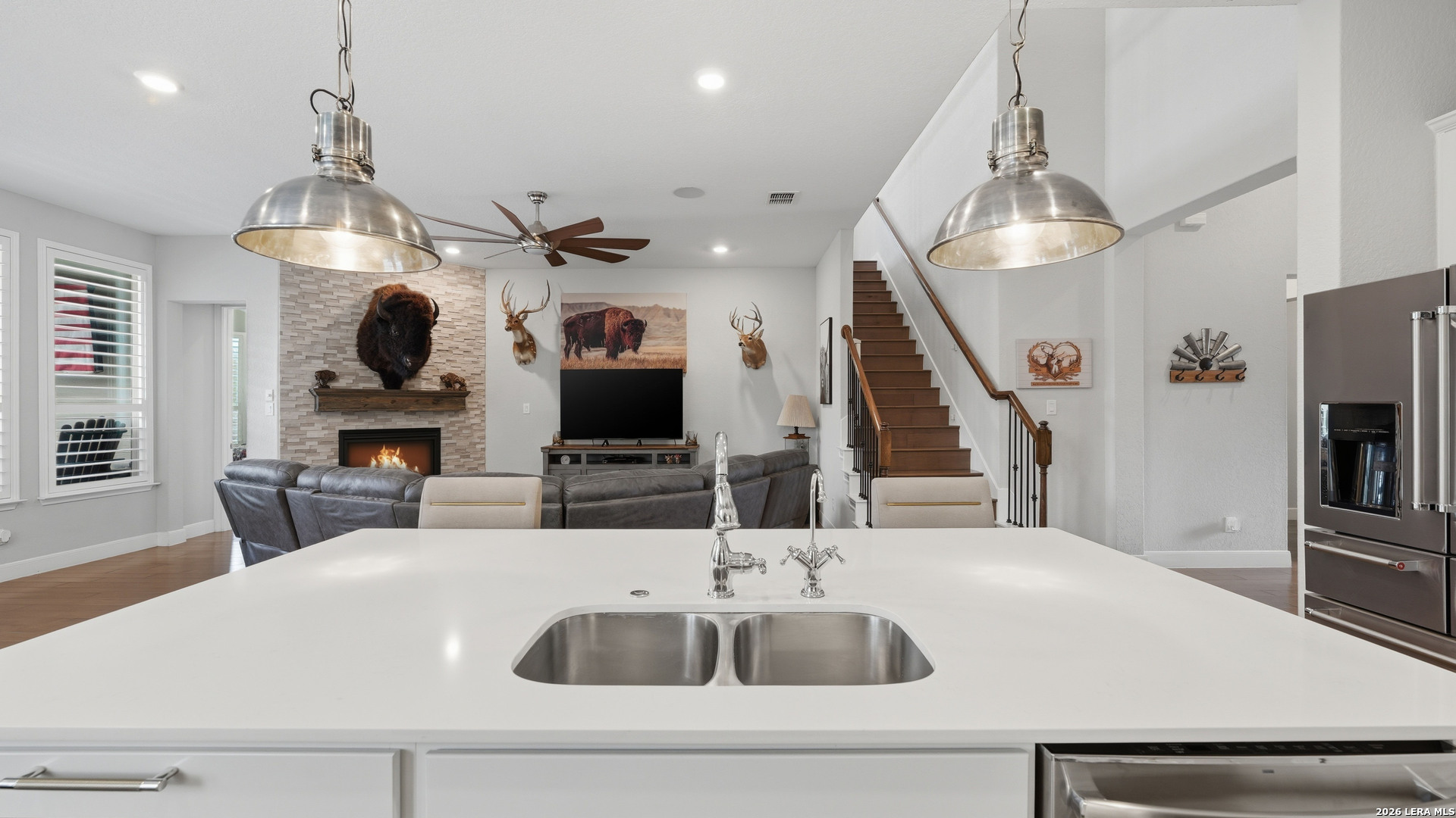 Stunning Ventana Model Home on Cul-de-Sac + Pool + Greenbelt Views! Welcome home to Ventana in Bulverde - one of the area's most sought-after communities - where this stunning former model home is packed with thoughtful upgrades and timeless design. No expense was spared, and every detail was carefully selected to create a home that feels both elevated and inviting. This beautiful two-story home offers 3,106 sq ft with 4 bedrooms and 3 full bathrooms downstairs, plus an upstairs layout designed for entertaining with a spacious game room, media room, and half bath. The open-concept floor plan creates a seamless flow into the spacious living room, anchored by a gorgeous fireplace. The gourmet kitchen is a dream - featuring quartz countertops, abundant cabinetry, stainless steel appliances, a gas cooktop with pot filler, and the perfect layout for both everyday living and hosting guests. Just off the kitchen, you'll find a versatile office space currently styled as a formal dining room - offering flexibility to fit your lifestyle. The primary suite is a spa-inspired retreat featuring an oversized walk-in shower with dual shower heads plus a rainfall shower, dual vanities and generous walk-in closet. Upstairs, enjoy plenty of room to spread out with the media room and game area - ideal for movie nights, watching the big game, or entertaining. Step outside and start living the Hill Country lifestyle: a covered patio overlooking your own private swimming pool, plus there are no neighbors to one side, greenbelt space behind, and on a cul-de-sac location. With so much to offer, this timeless home is truly move-in ready and waiting for its new owner. Conveniently located near top-rated Comal ISD schools, shopping, dining, and more. Schedule your showing today!